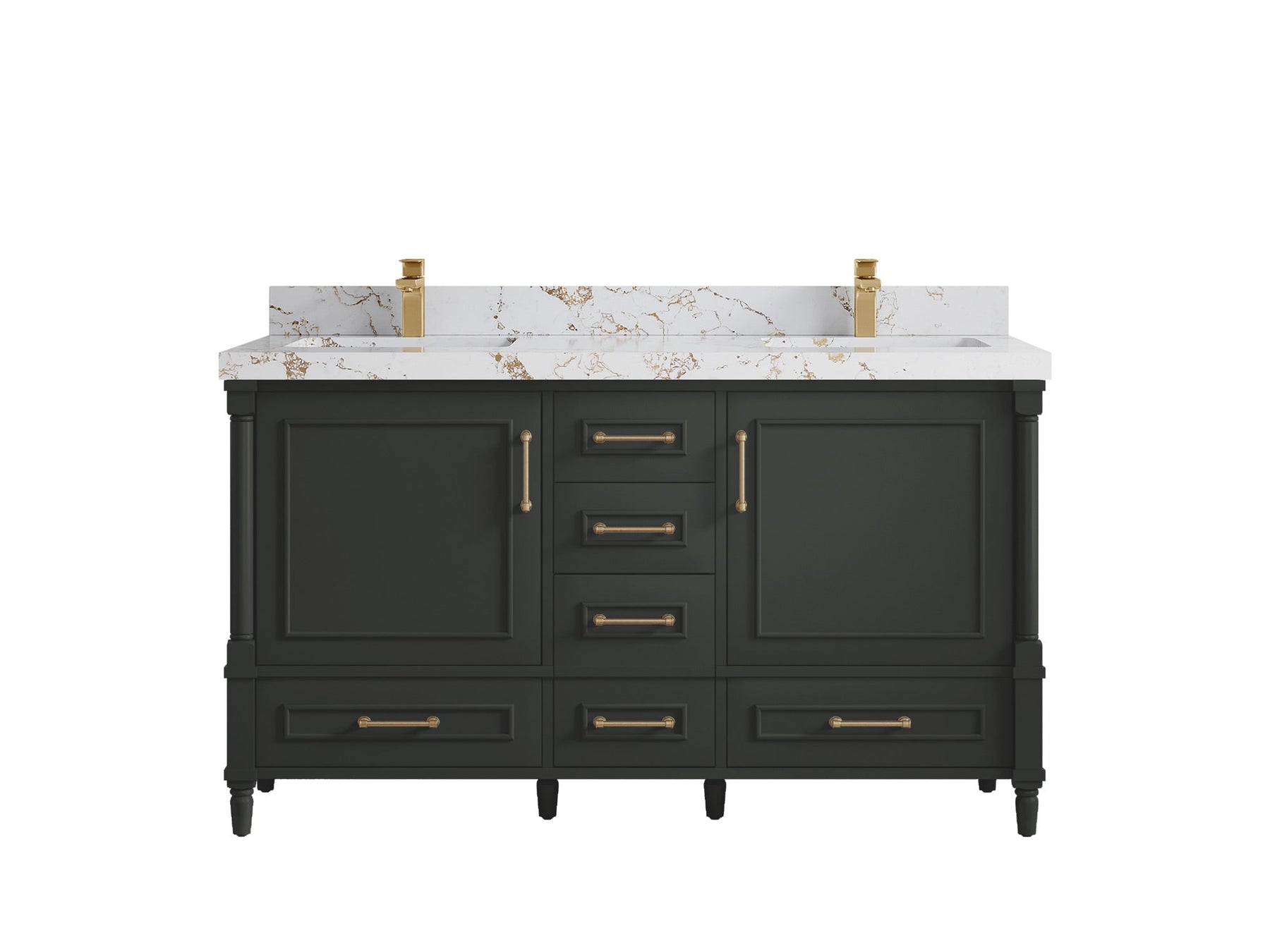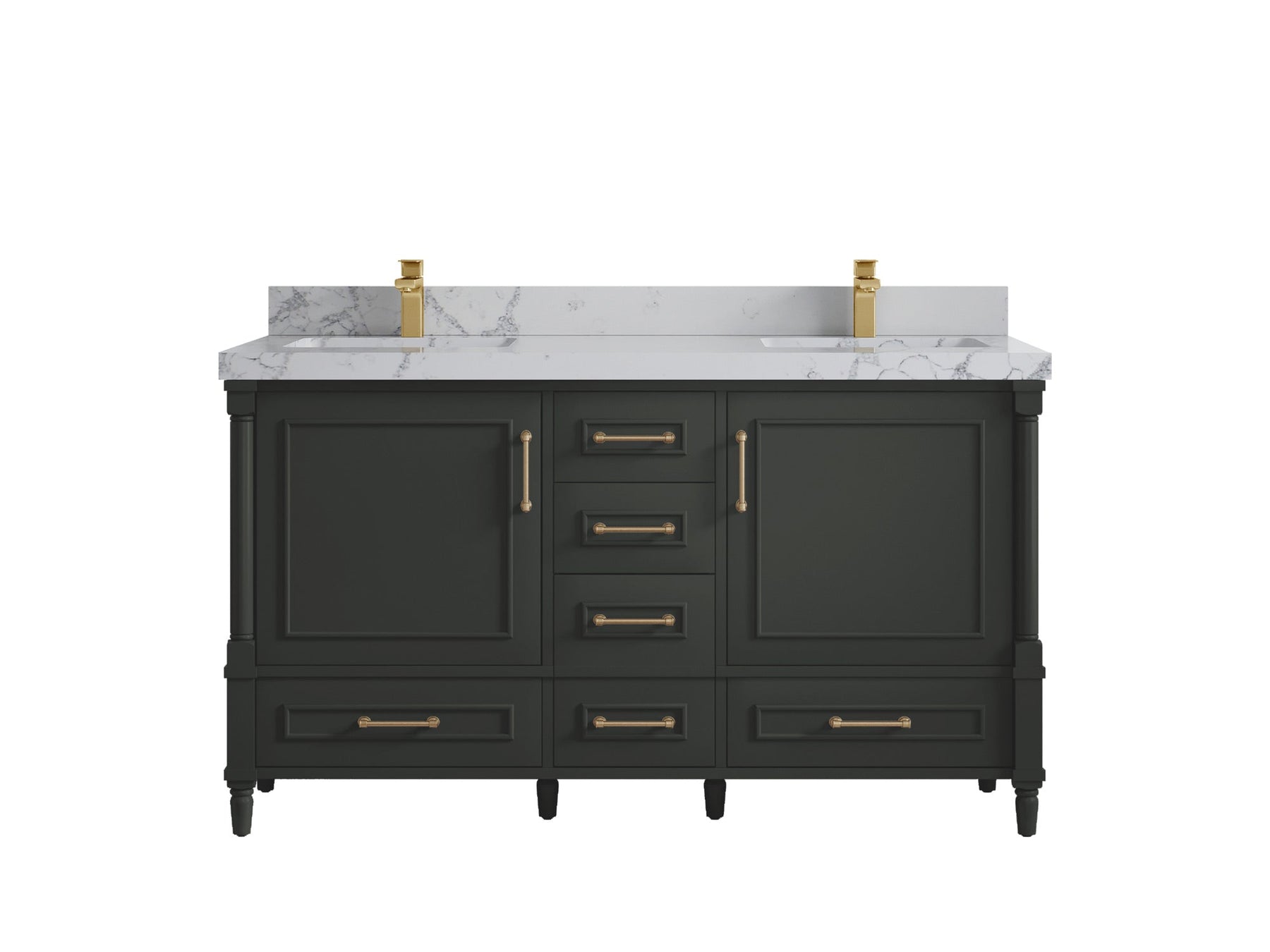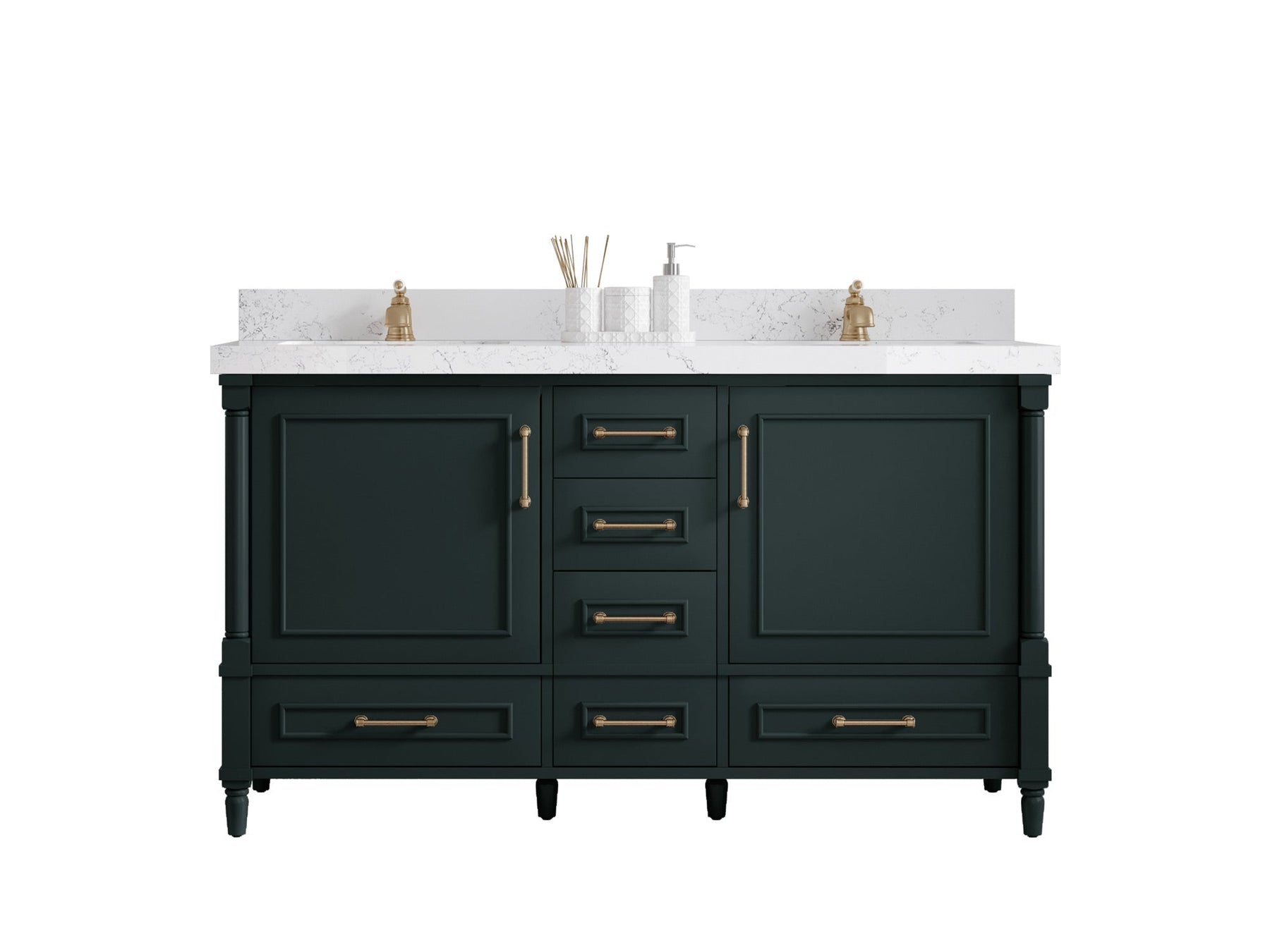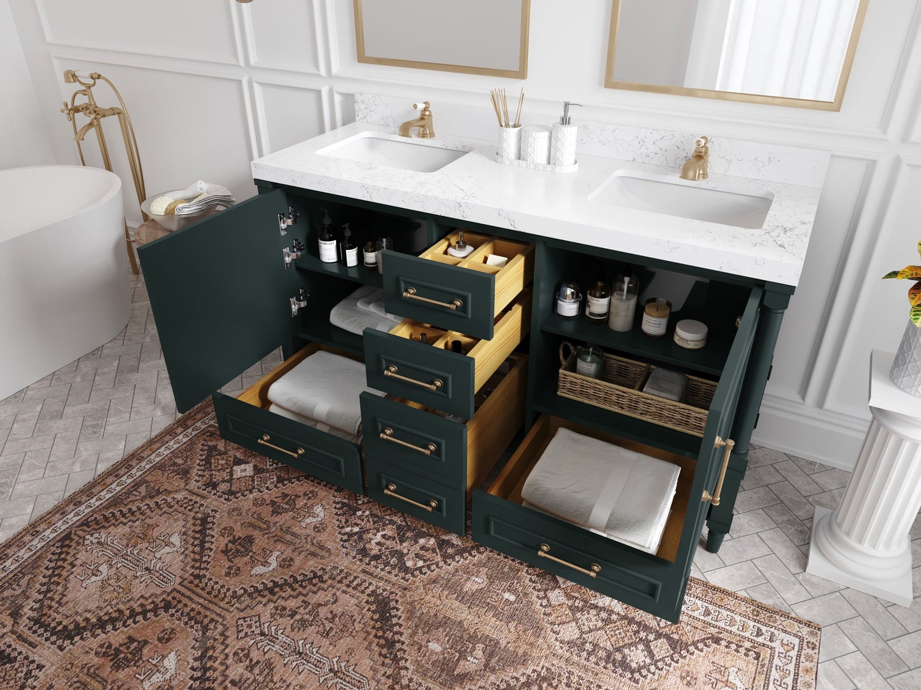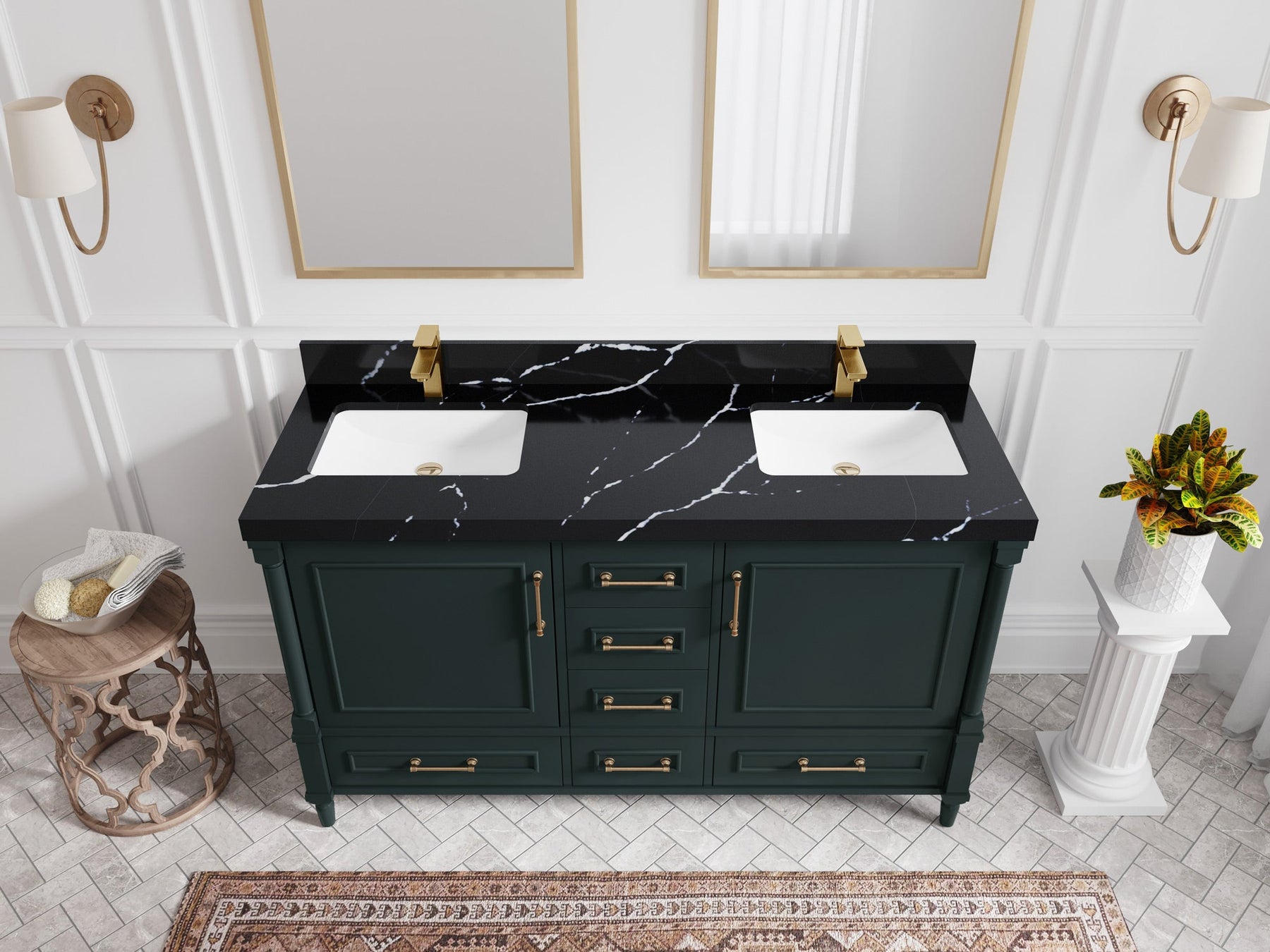 Aberdeen 60 in. W x 22 in. D Double Sink Bathroom Vanity | Dark Forest Green