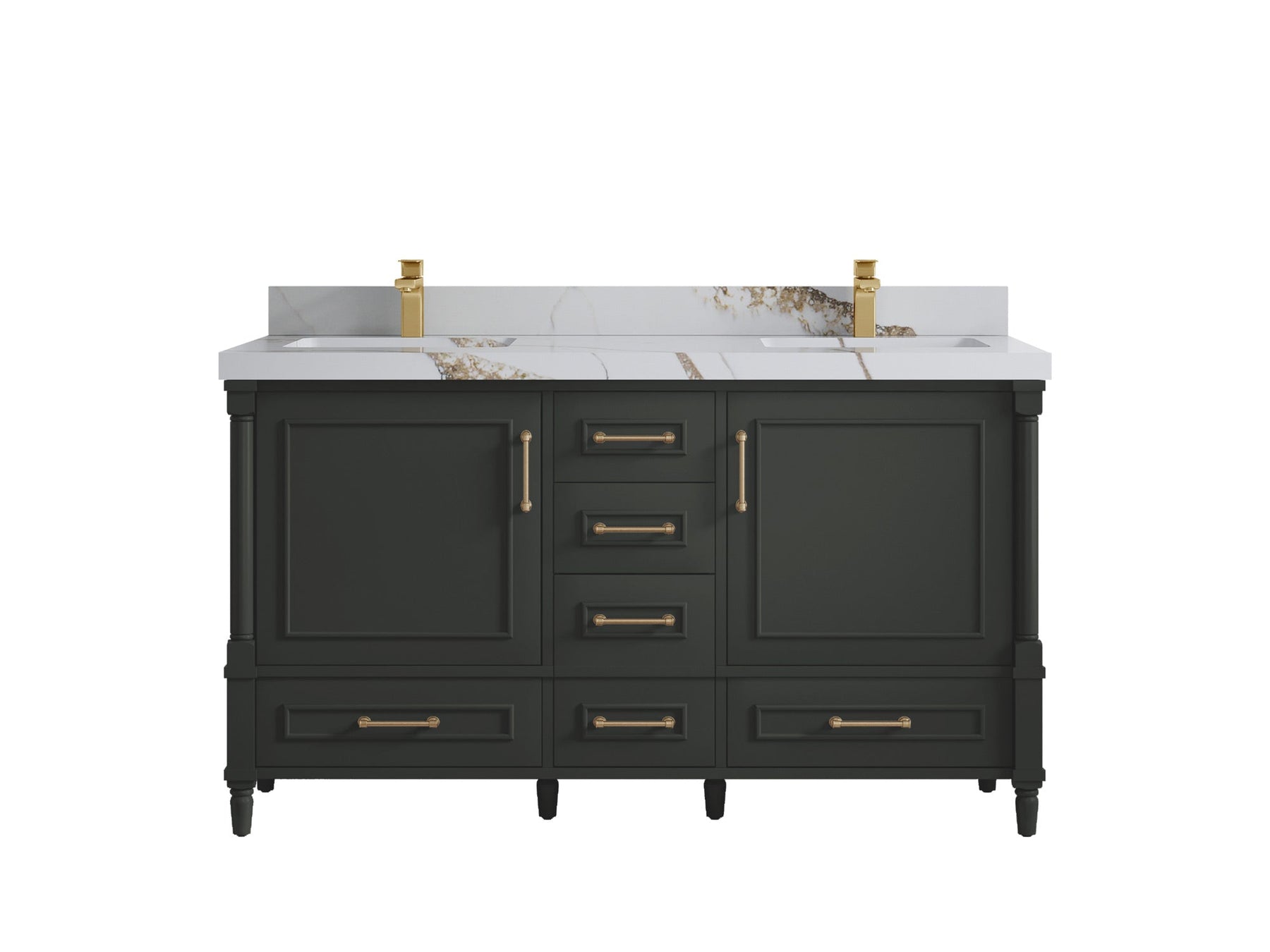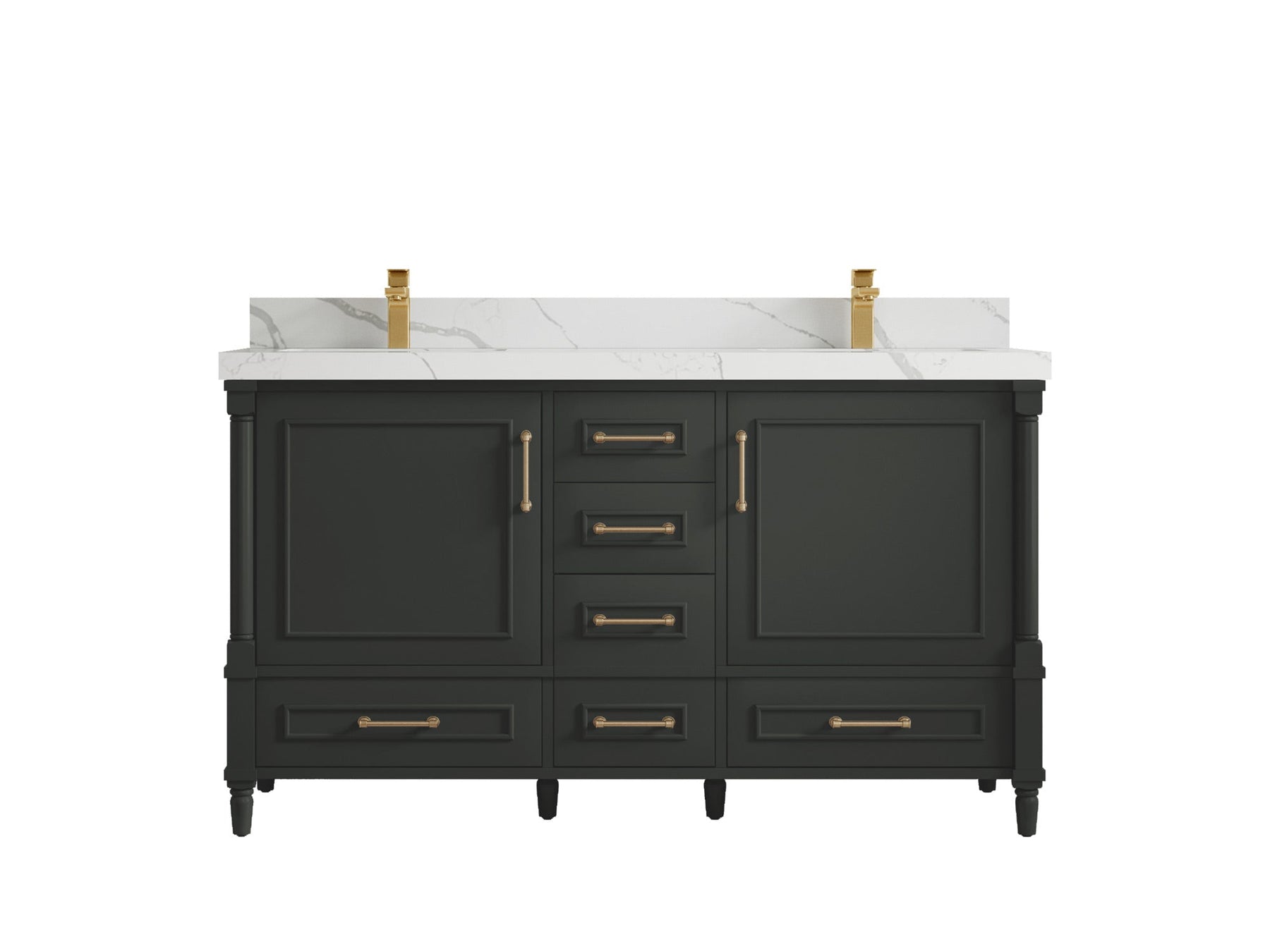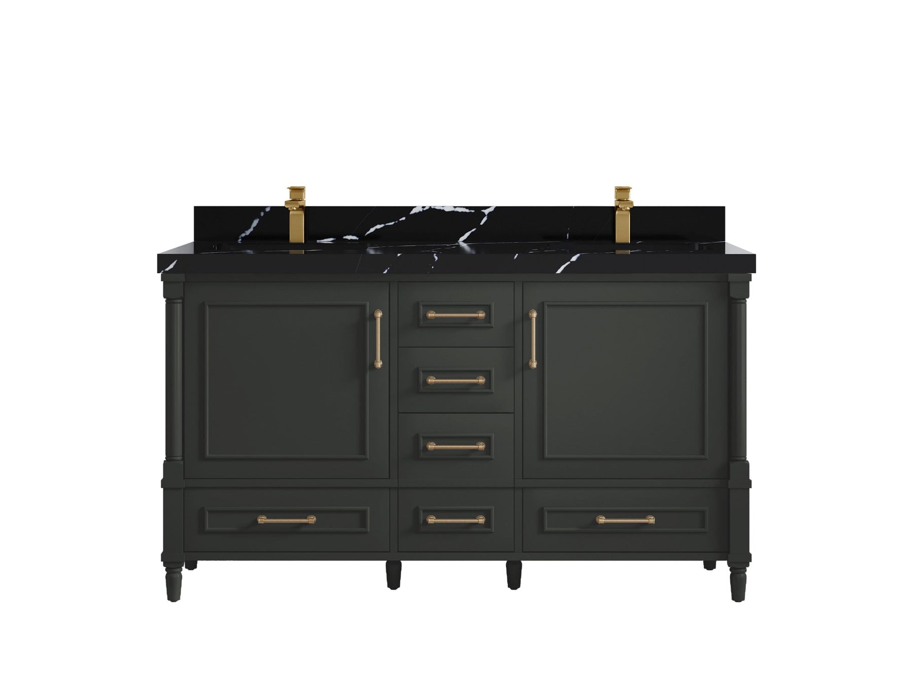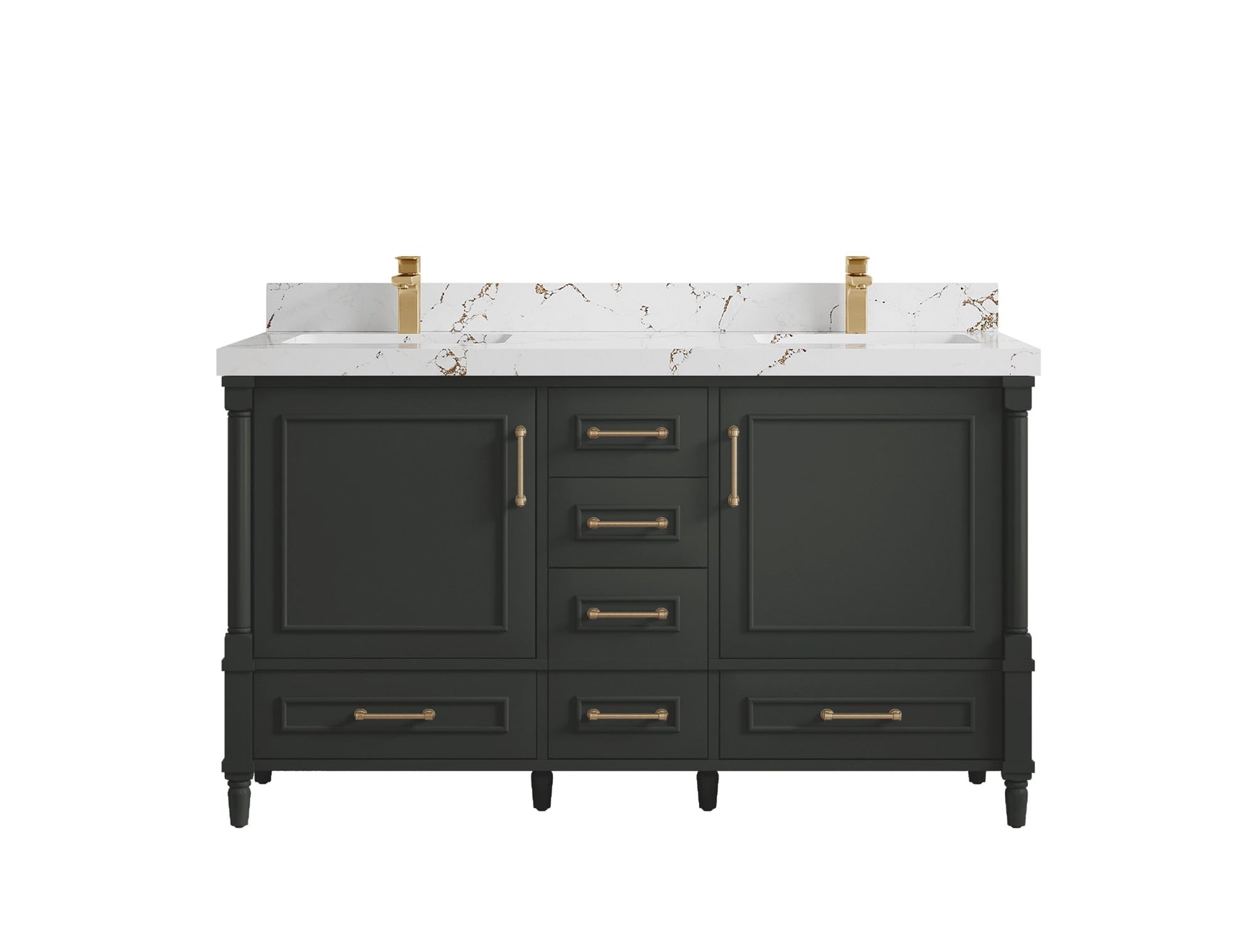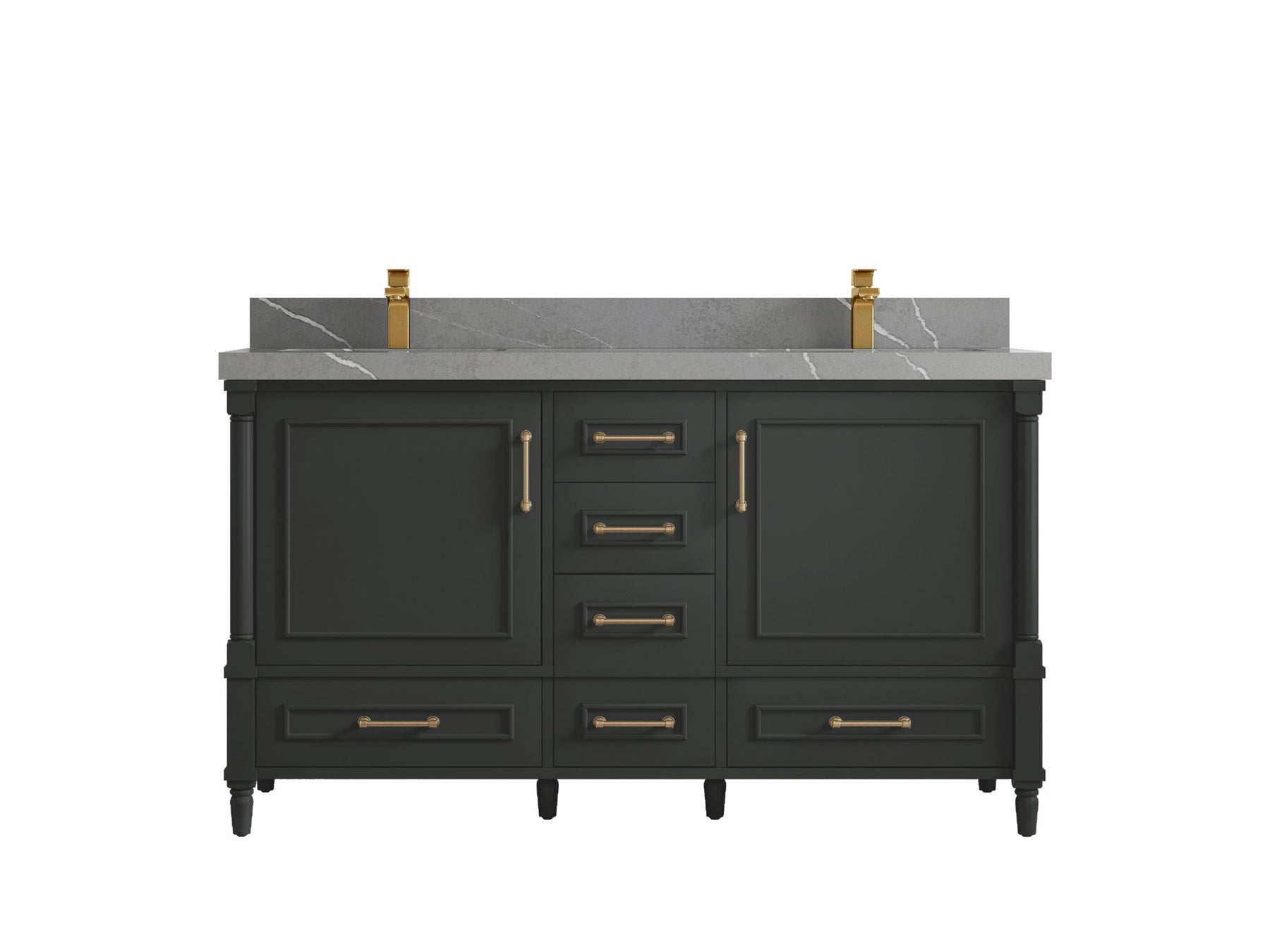 Aberdeen 60 in. W x 22 in. D Double Sink Bathroom Vanity | Dark Forest Green