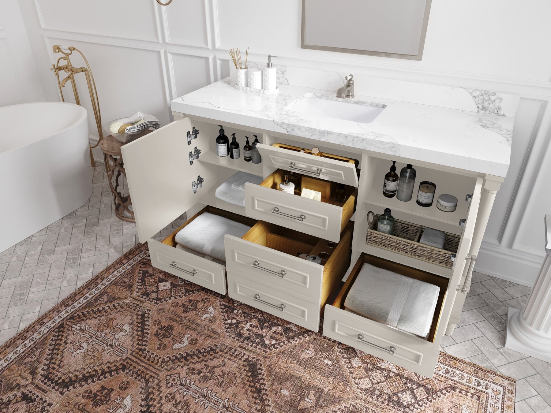 4. Ample Storage Space - The Aberdeen Vanity comes with spacious cabinet space to store all your bathroom essentials, including towels, toiletries, and more. The soft-close drawers and doors ensure that you can access your items easily and quietly.