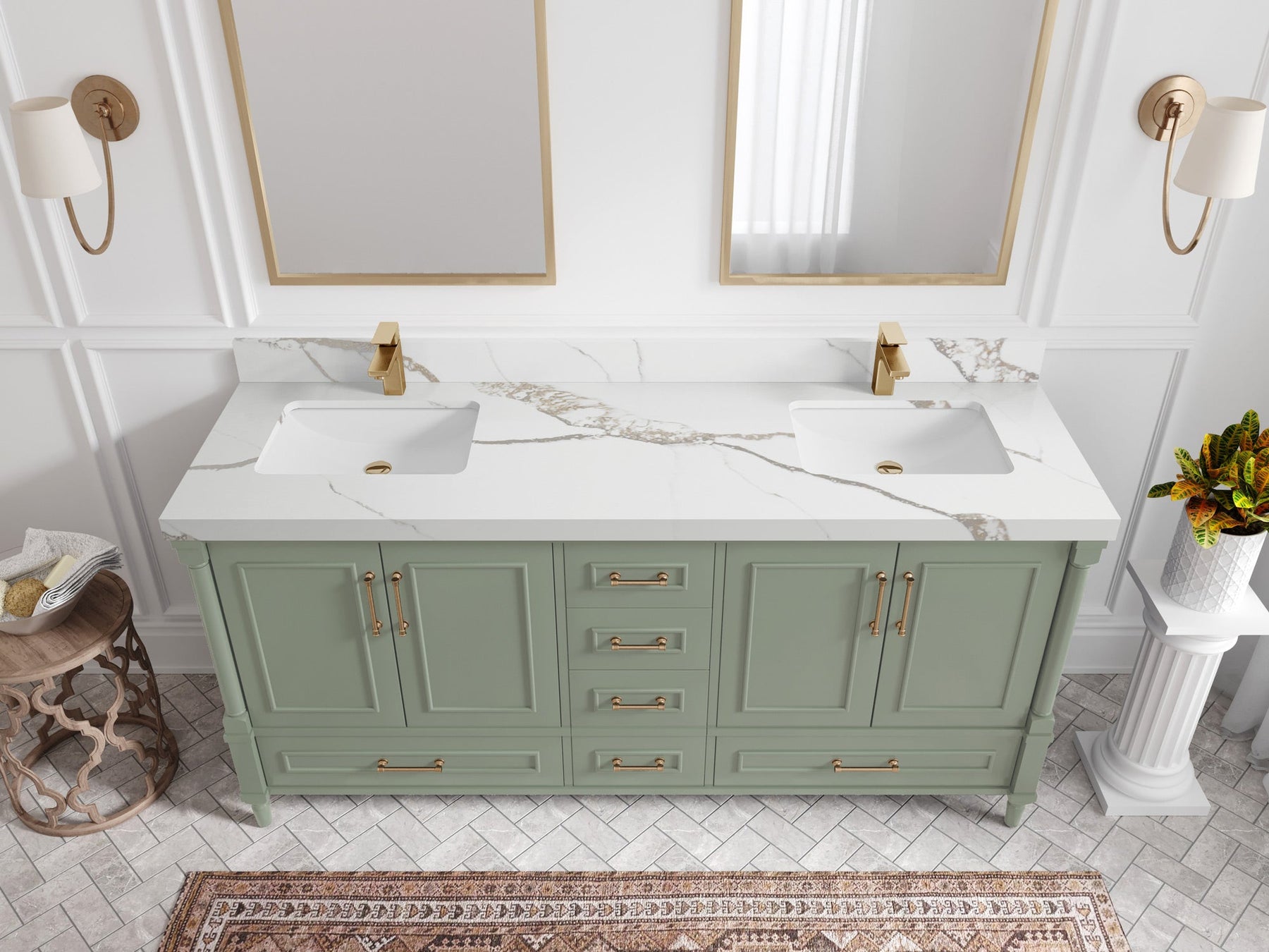 Vanity Countertops options: For Calacatta Laza Quartz, Empira White Quartz, Pure White Quartz, Palissandro Quartz we have 2 options Straight-Mitered Edge and Double Cove Edge; For Calacatta Nuvo Quartz, Carrara Marble, Carrara Quartz, Piatra Gray Quartz, Pearl Light Gray Quartz, Calacatta Black Quartz, Calacatta Gold Quartz, Calacatta Sienna Quartz, Calacatta Poanazzo Quartz, Venatino Quartz, Viola Brown Quartz, Viola Gold Quartz, Viola Night Quartz, Viola Biagio Quartz, Berkshire Brass Quartz, Frosty Carrara Quartz, Onyx Quartz we have Straight - Mitered Edge option.