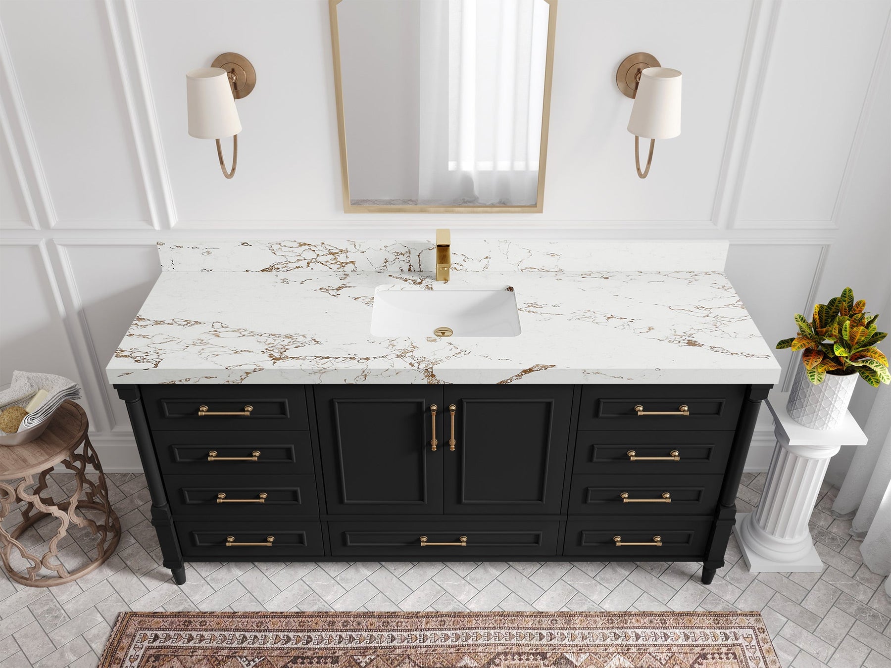 Vanity Countertops options: Calacatta Laza Quartz, Empira White Quartz, Pure White Quartz, Palissandro Quartz, Calacatta Nuvo Quartz, Carrara Marble, Carrara Quartz, Piatra Gray Quartz, Pearl Light Gray Quartz, Calacatta Black Quartz, Calacatta Gold Quartz, Calacatta Sienna Quartz, Venatino Quartz, Viola Gold Quartz, Viola Biagio Quartz, Frosty Carrara Quartz