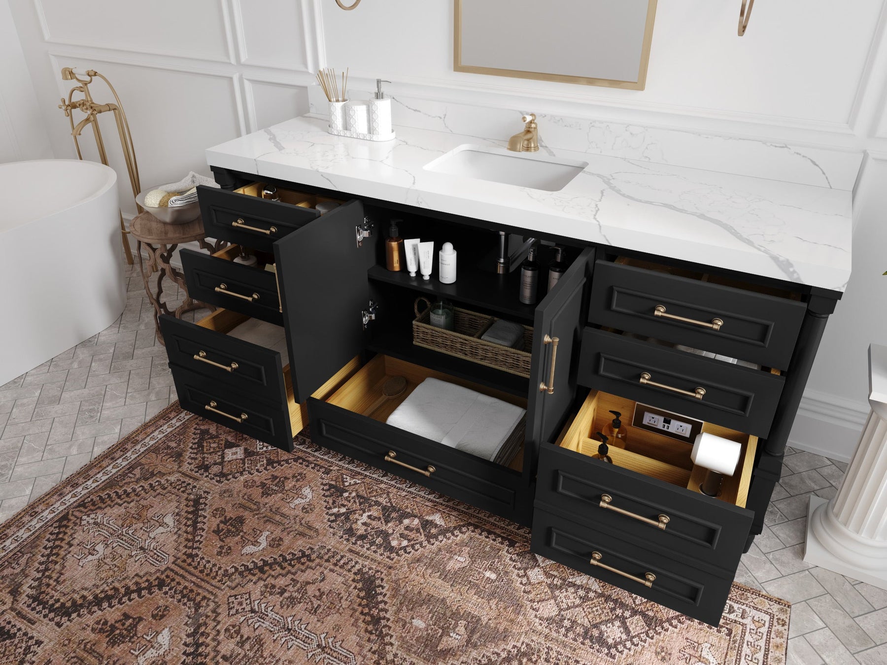 4. Ample Storage Space - The Aberdeen Vanity comes with spacious cabinet space to store all your bathroom essentials, including towels, toiletries, and more. The soft-close drawers and doors ensure that you can access your items easily and quietly.