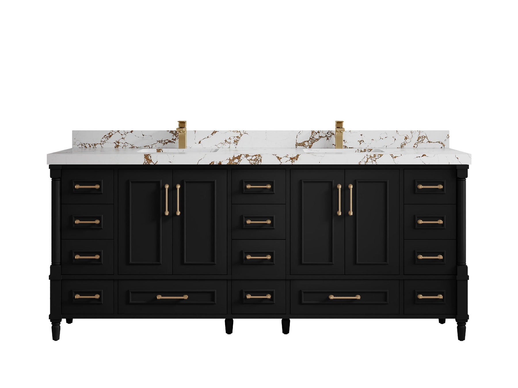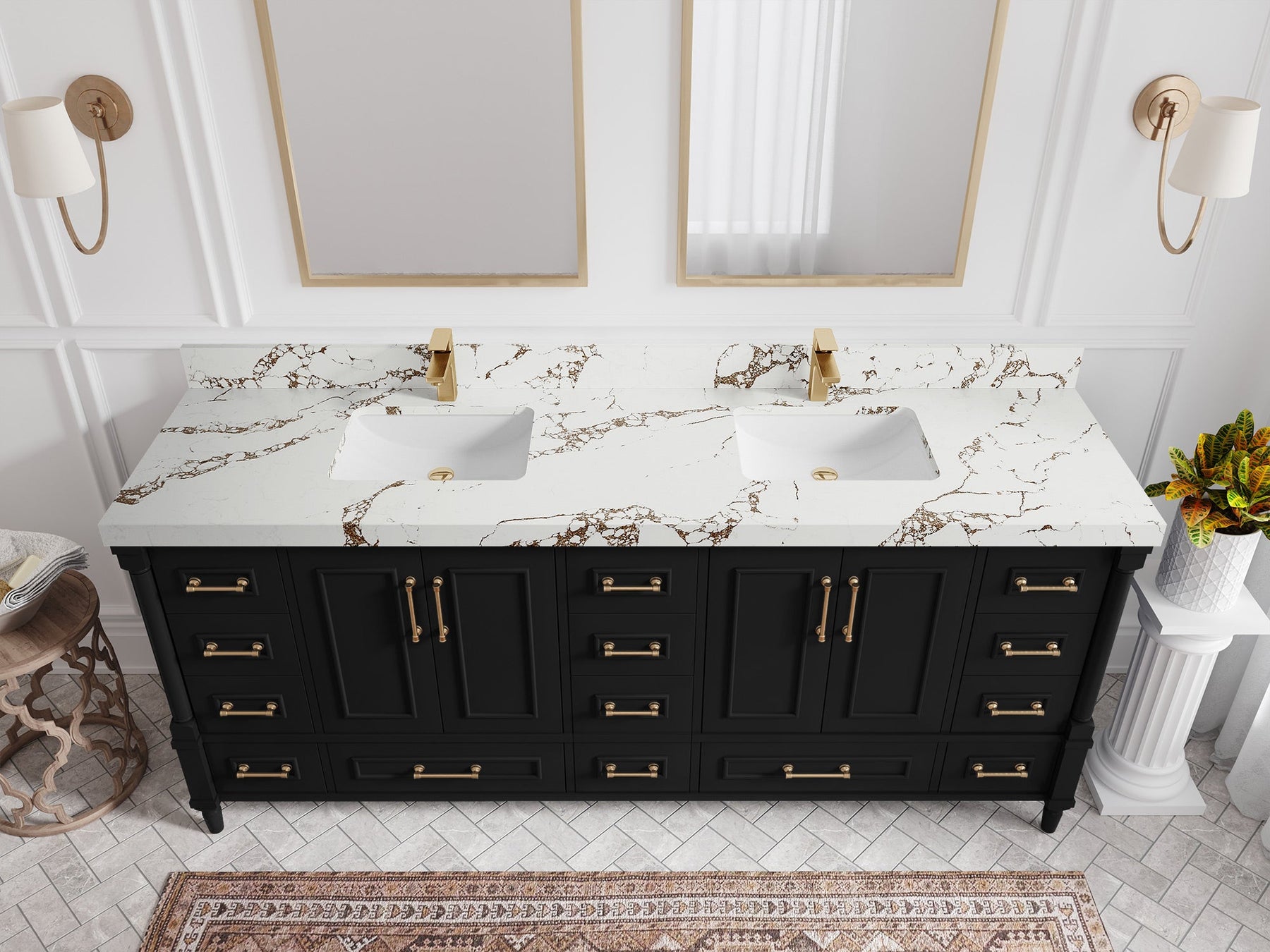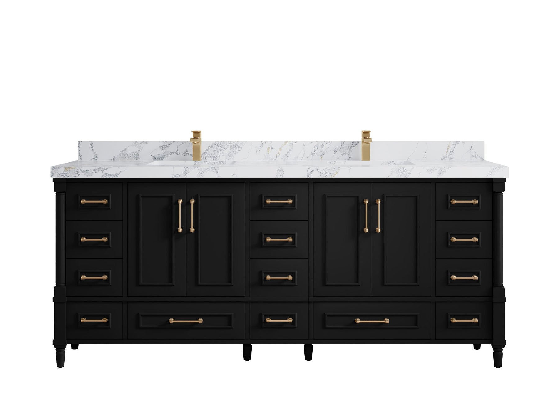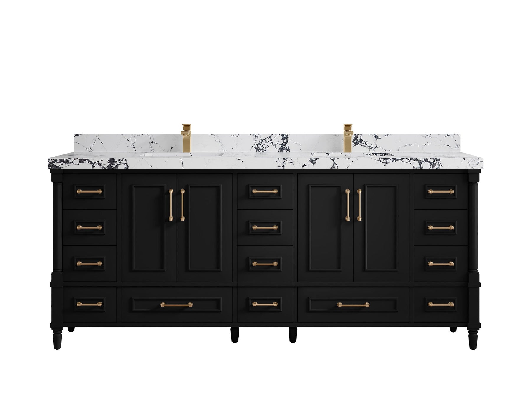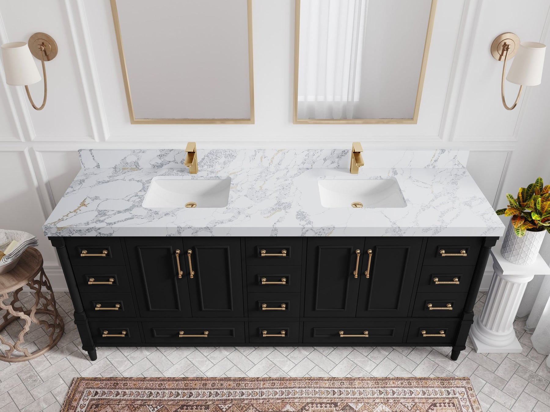 Aberdeen 80 in. W x 22 in. D Double Sink Bathroom Vanity in Black with countertop - Cabinet Only