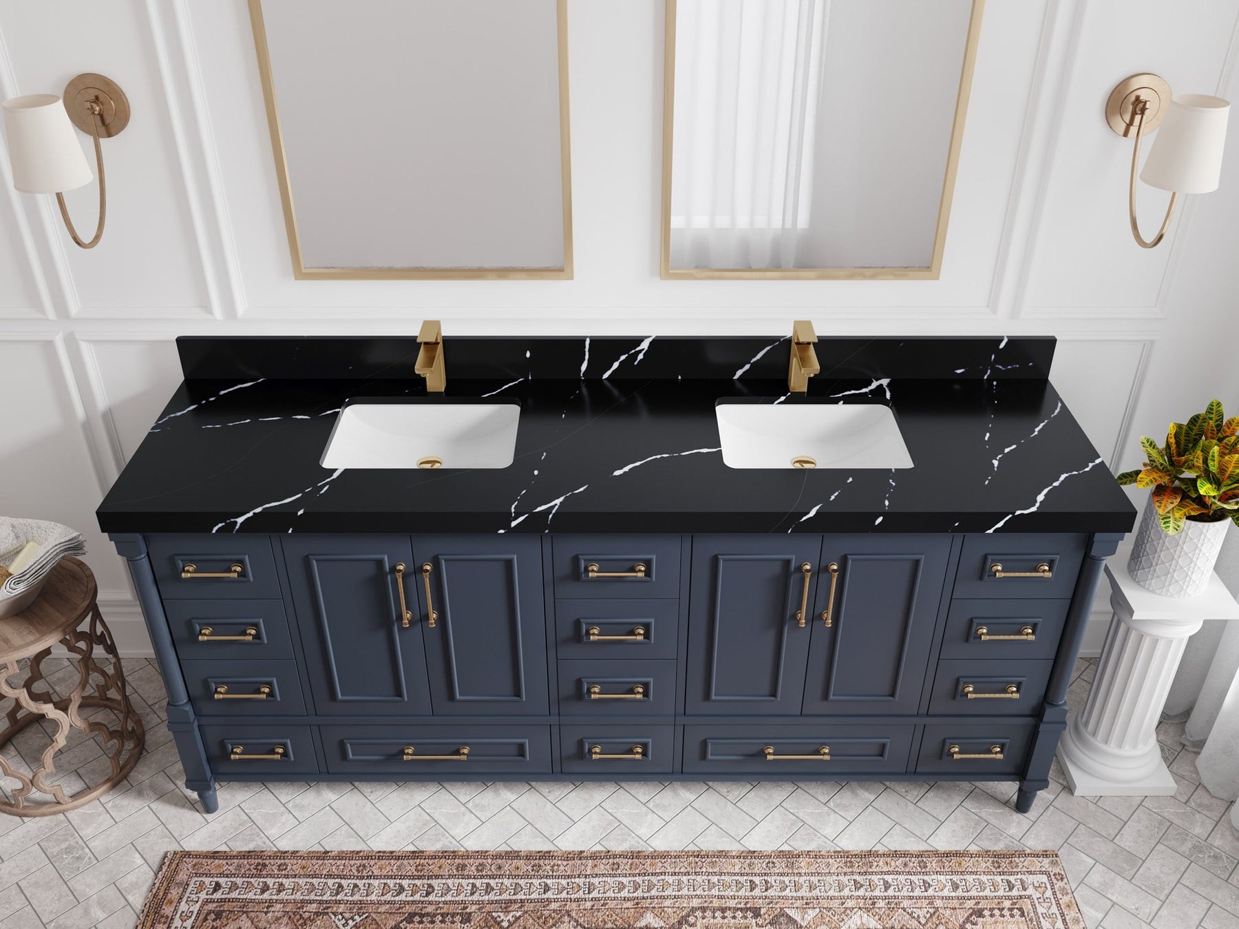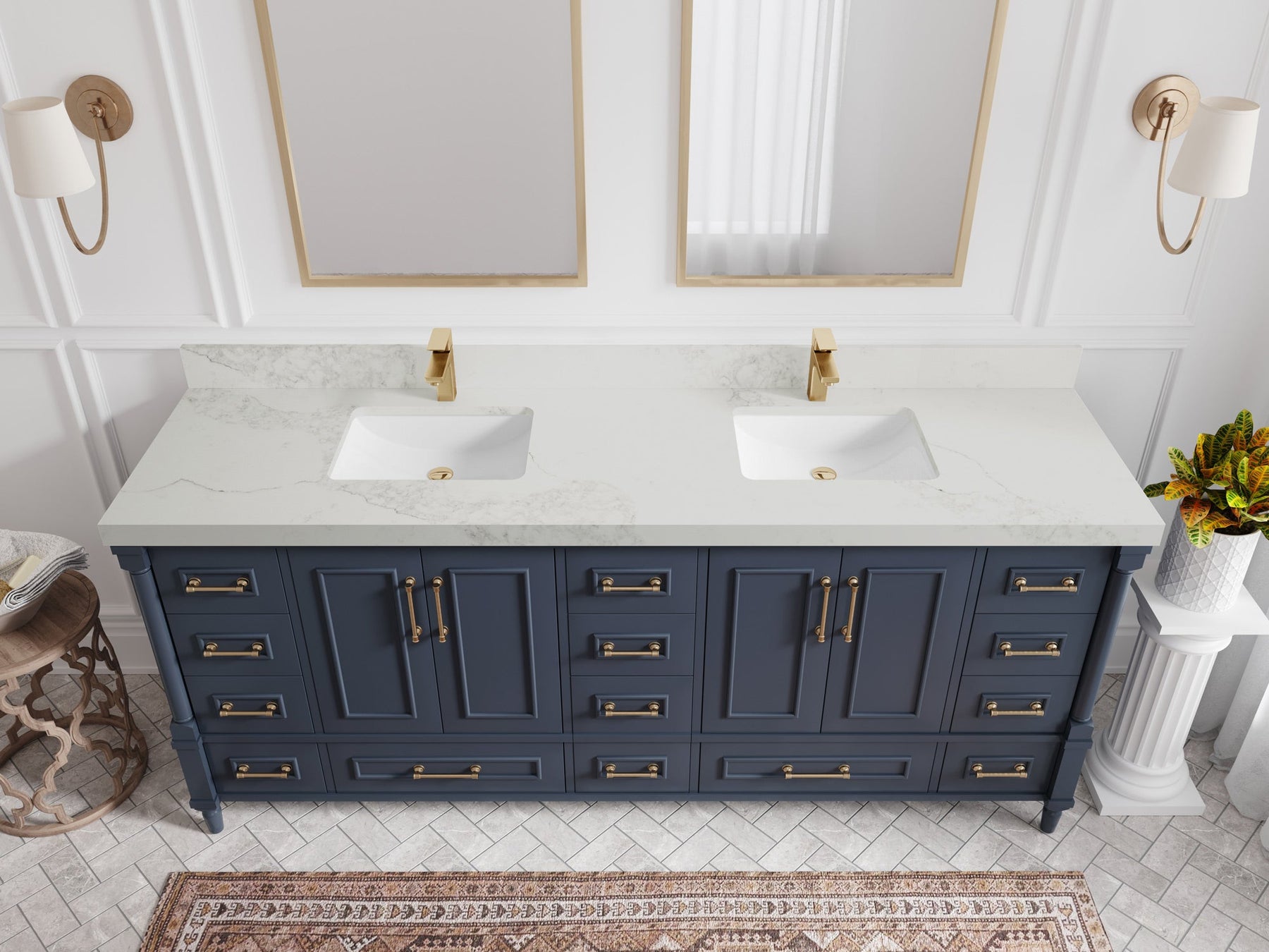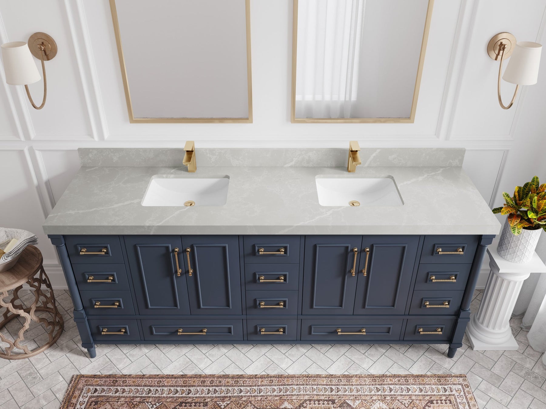 Vanity Countertops options: For Calacatta Laza Quartz, Empira White Quartz, Pure White Quartz we have 2 options Straight-Mitered Edge and Double Cove Edge; For Calacatta Nuvo Quartz, Carrara Marble, Carrara Quartz, Piatra Gray Quartz, Calacatta Black, Calacatta Gold, Venatino Quartz, Pearl Light Gray, Viola Brown, Viola Gold, Viola Night, Calacatta Sienna, 2" Calacatta Poanazzo we only have Straight - Mitered Edge option.