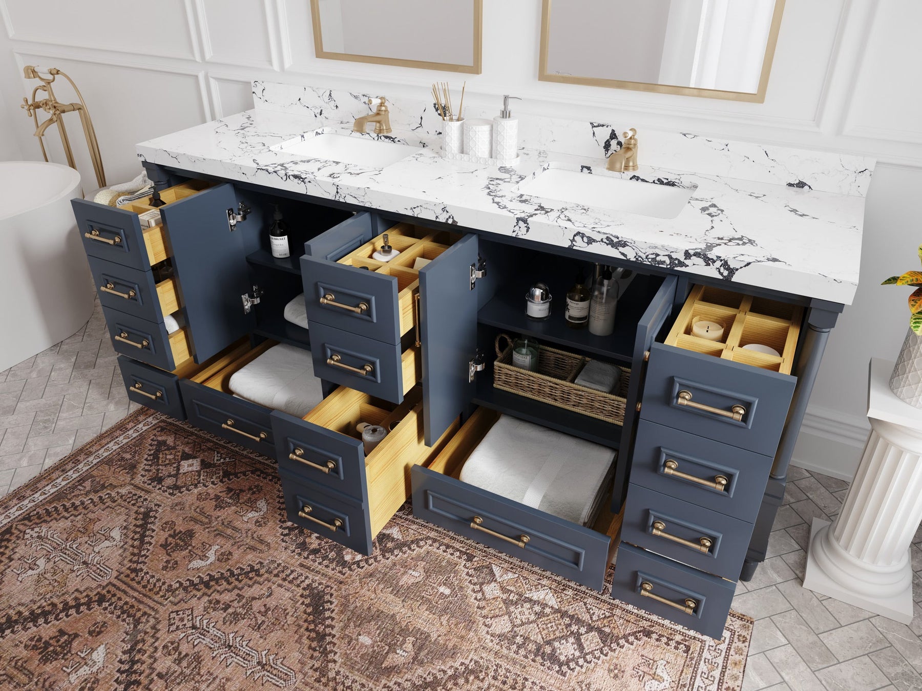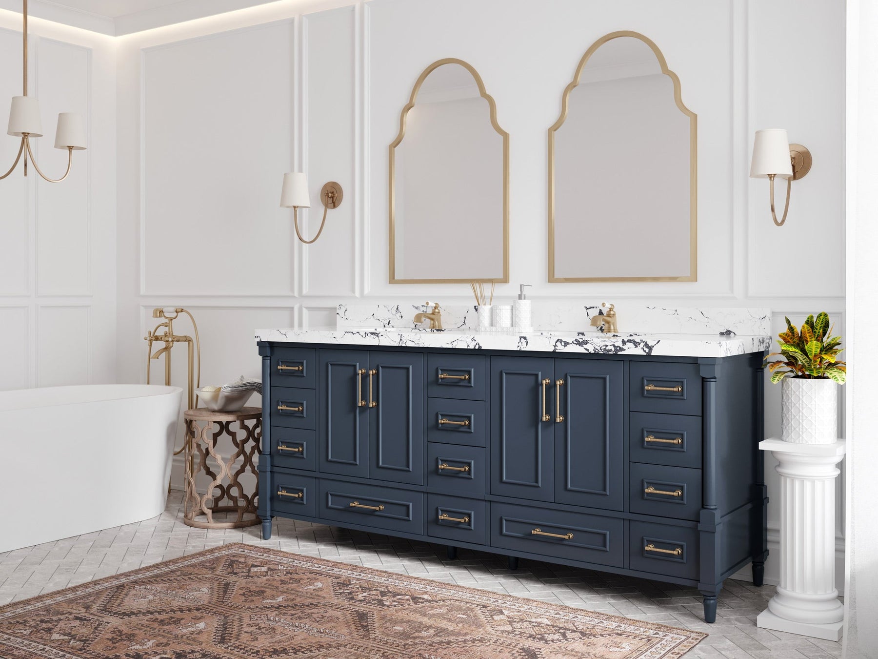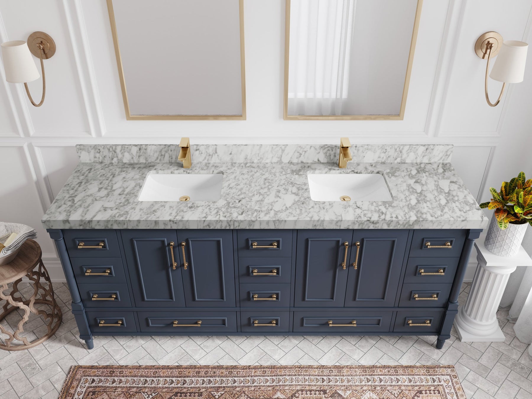 Vanity Countertops options: For Calacatta Laza Quartz, Empira White Quartz, Pure White Quartz we have 2 options Straight-Mitered Edge and Double Cove Edge; For Calacatta Nuvo Quartz, Carrara Marble, Carrara Quartz, Piatra Gray Quartz, Calacatta Black, Calacatta Gold, Venatino Quartz, Pearl Light Gray, Viola Brown, Viola Gold, Viola Night, Calacatta Sienna, 2" Calacatta Poanazzo we only have Straight - Mitered Edge option.