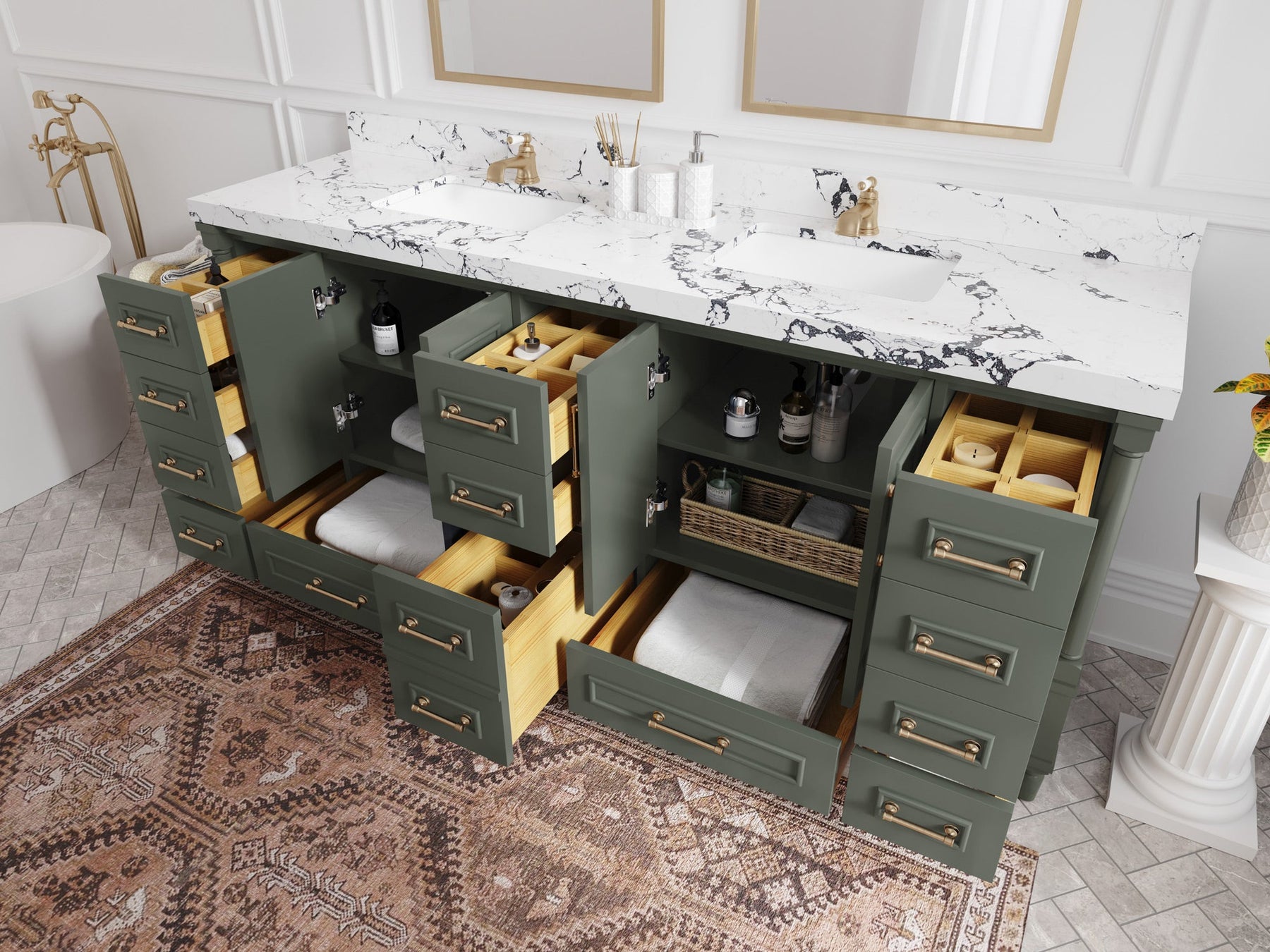 4. Ample Storage Space - The Aberdeen Vanity comes with spacious cabinet space to store all your bathroom essentials, including towels, toiletries, and more. The soft-close drawers and doors ensure that you can access your items easily and quietly.