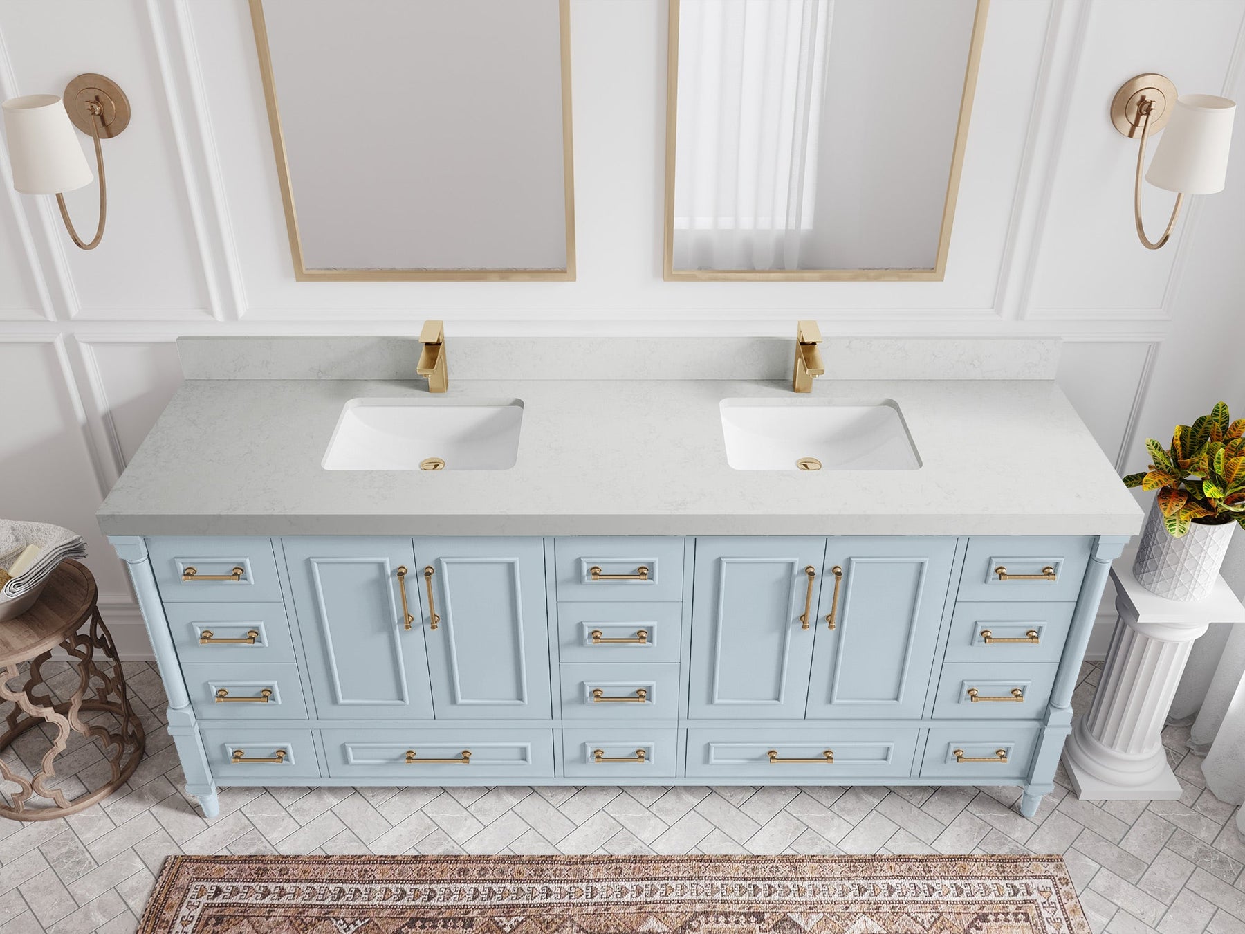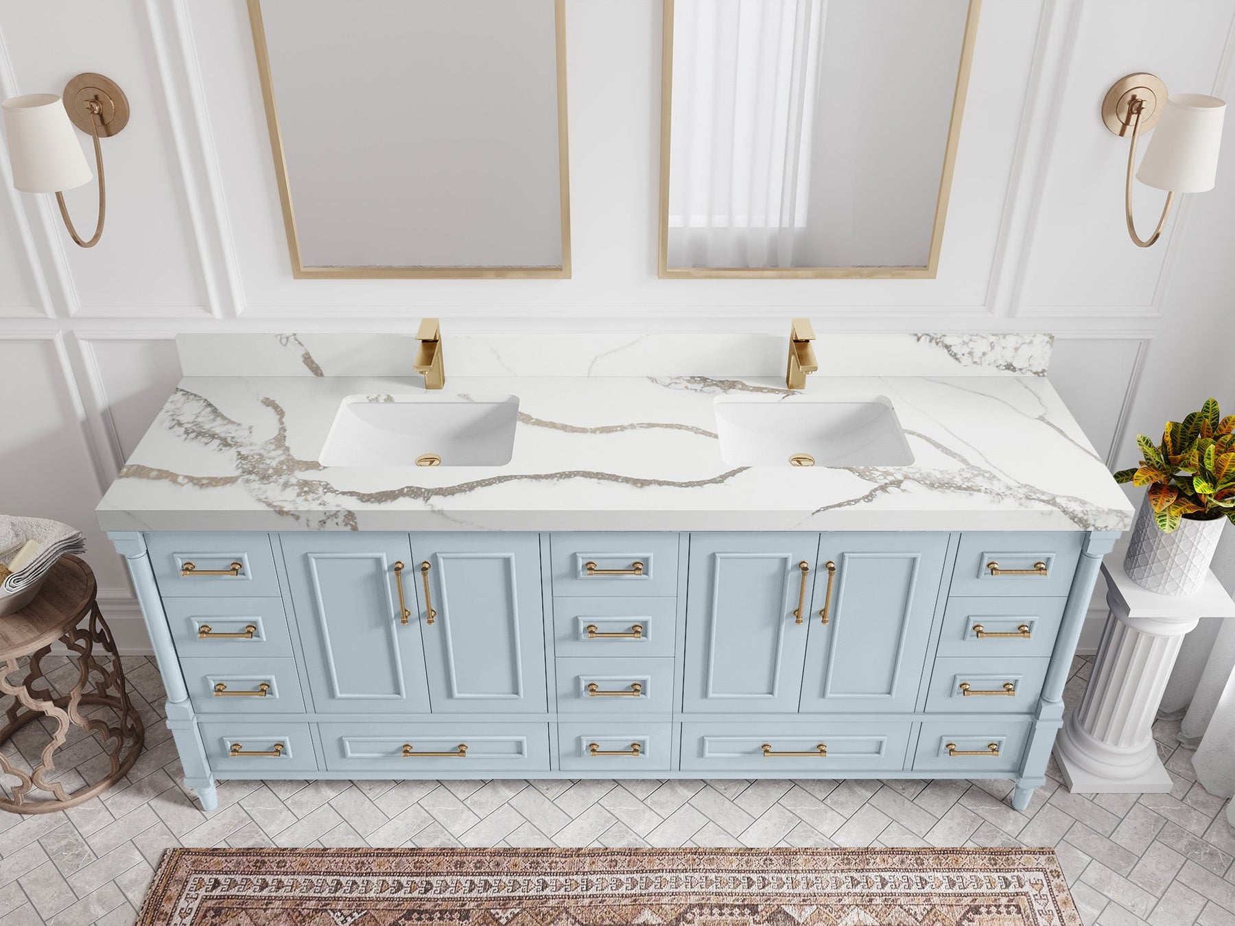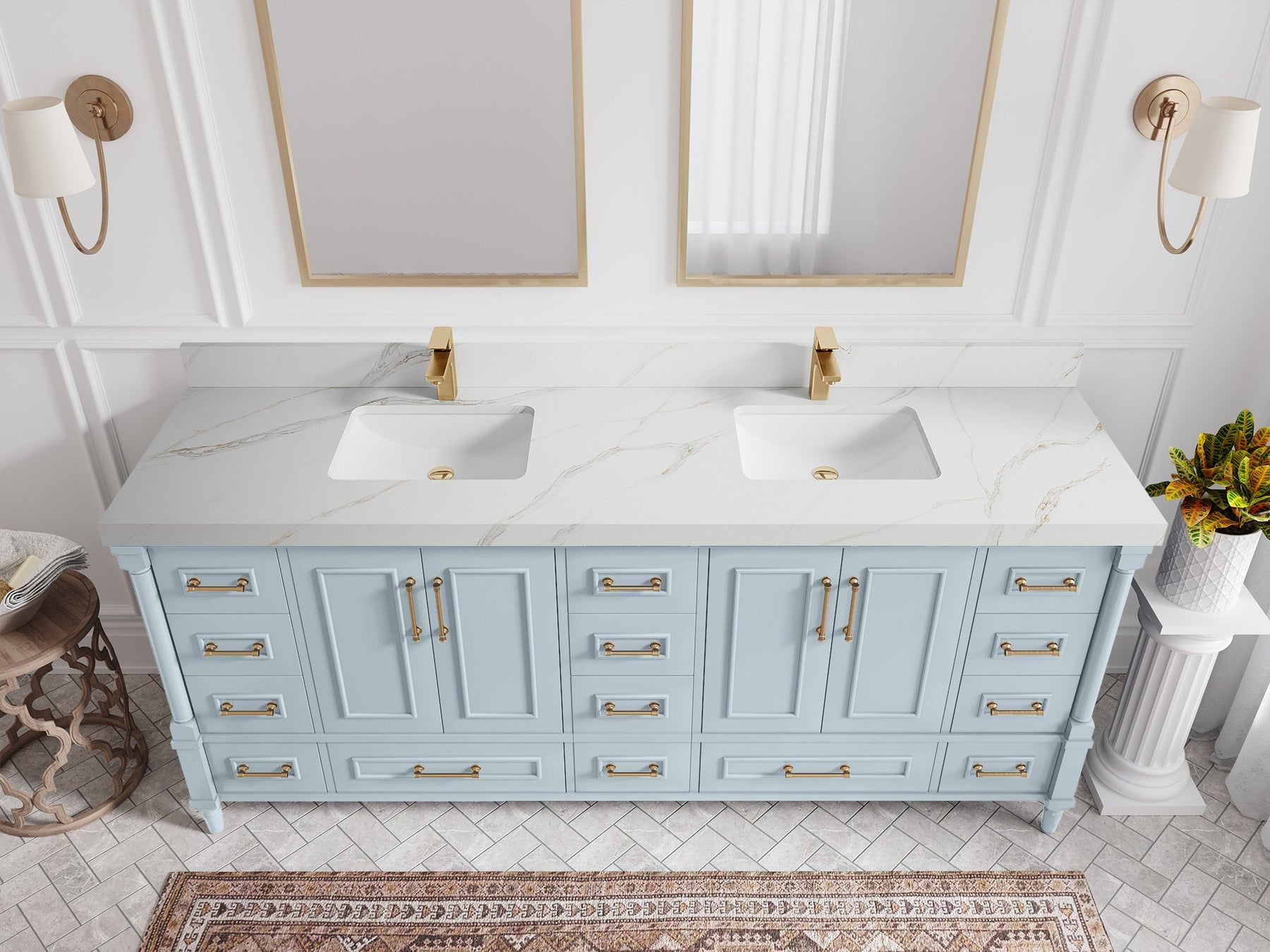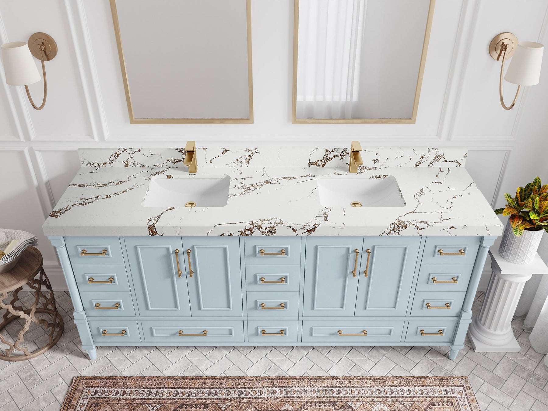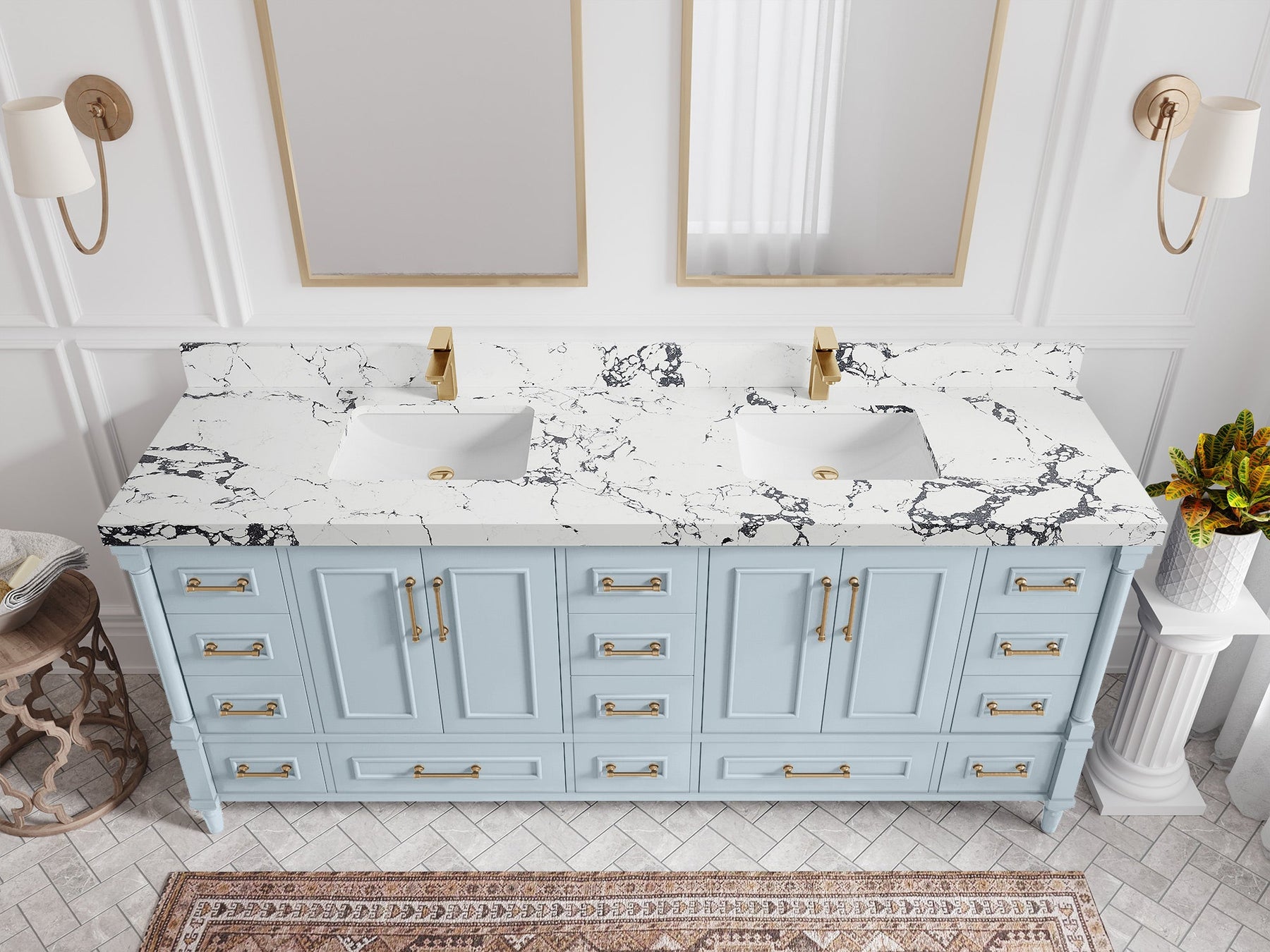 Faucet Hole(S): Comes with Single Faucet, 8 (in.) Widespread Faucet, Wall mount Faucets - Only Available for White Quartz and Carrara Quartz. (PLEASE ADD THIS CONFIGURATION UNDER COUNTERTOPS SECTION )