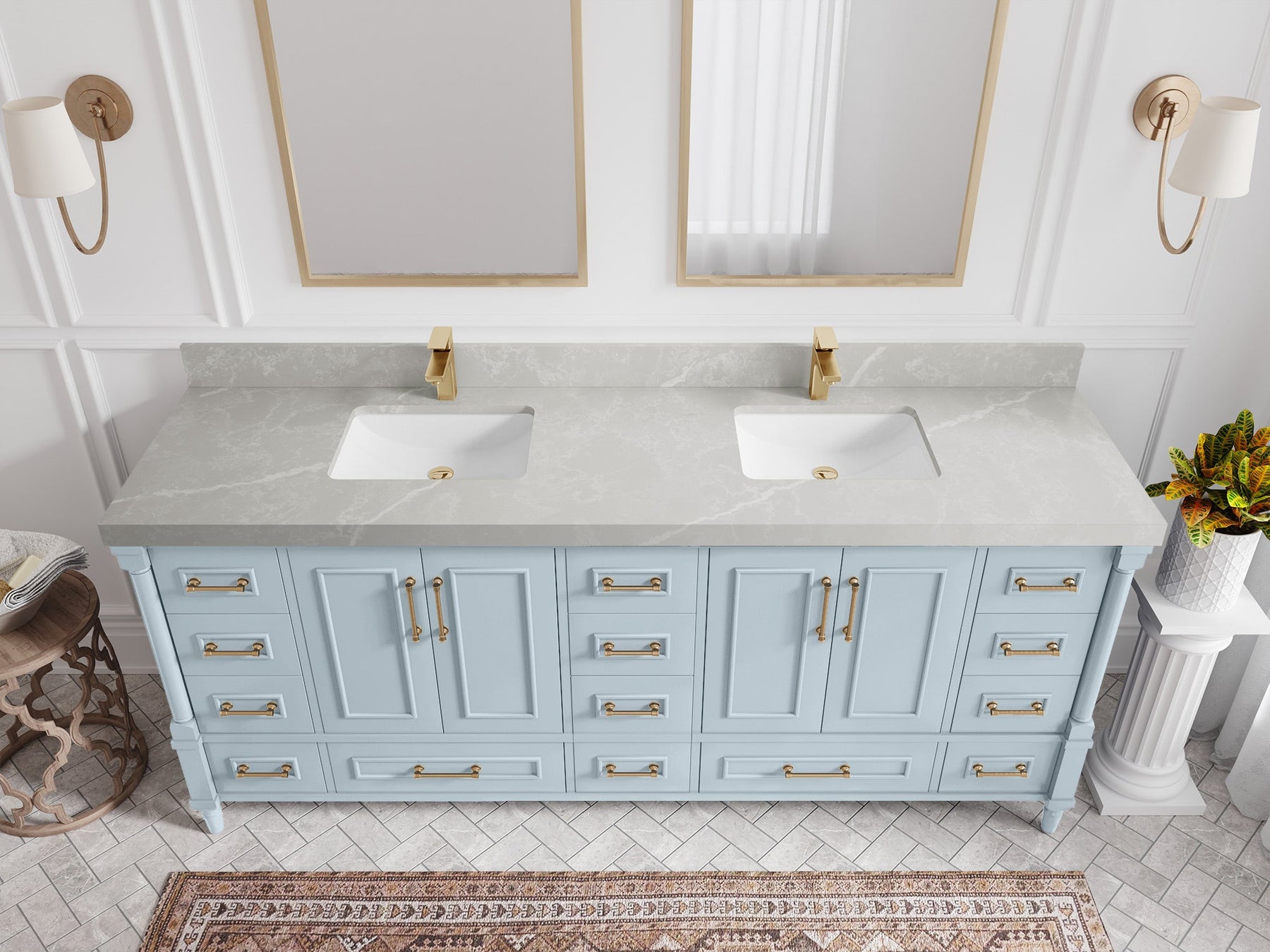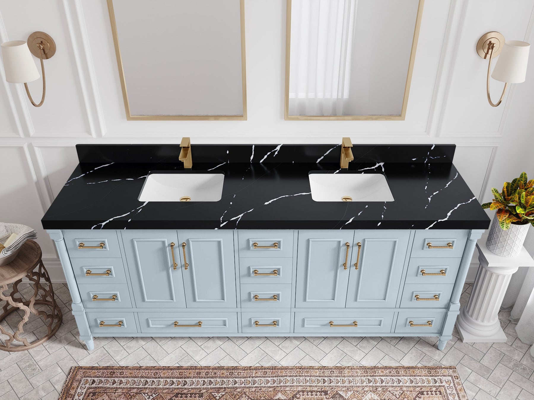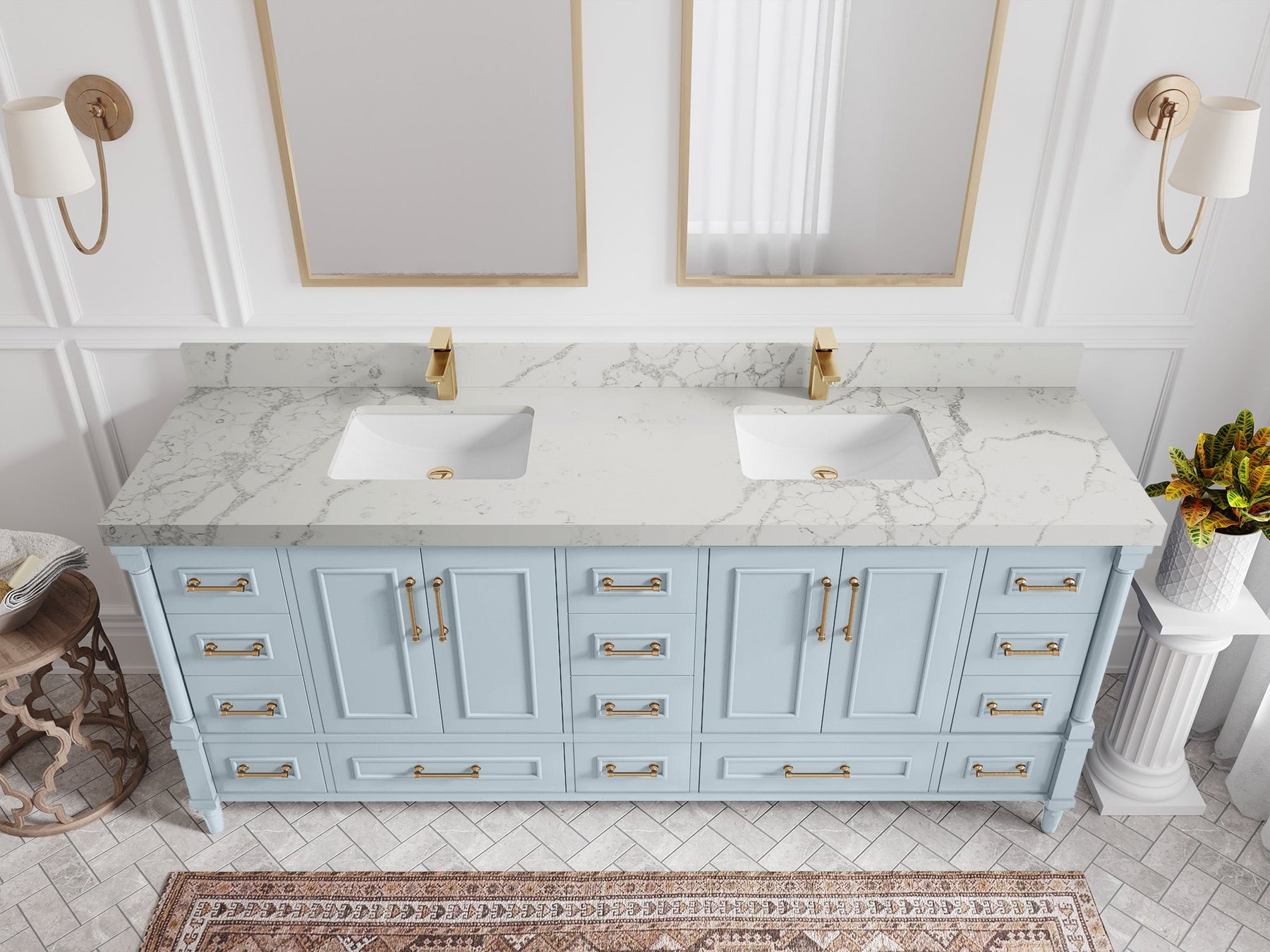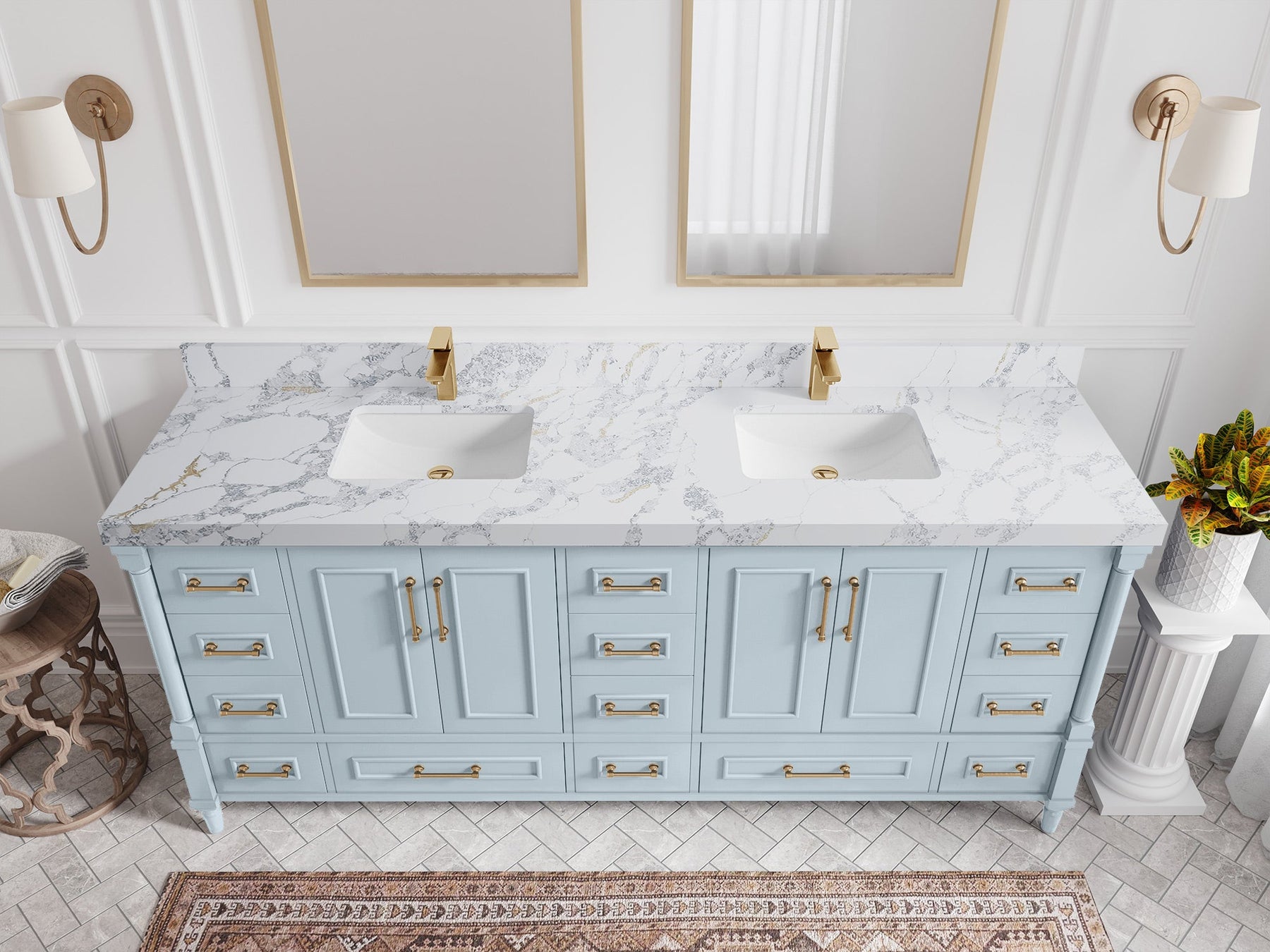 Faucet Hole(S): Comes with Single Faucet, 8 (in.) Widespread Faucet, Wall mount Faucets - Only Available for White Quartz and Carrara Quartz. (PLEASE ADD THIS CONFIGURATION UNDER COUNTERTOPS SECTION )