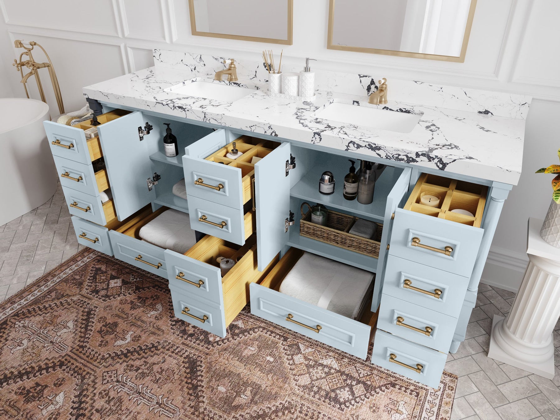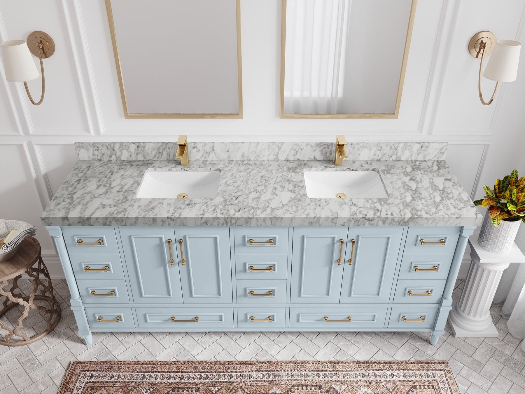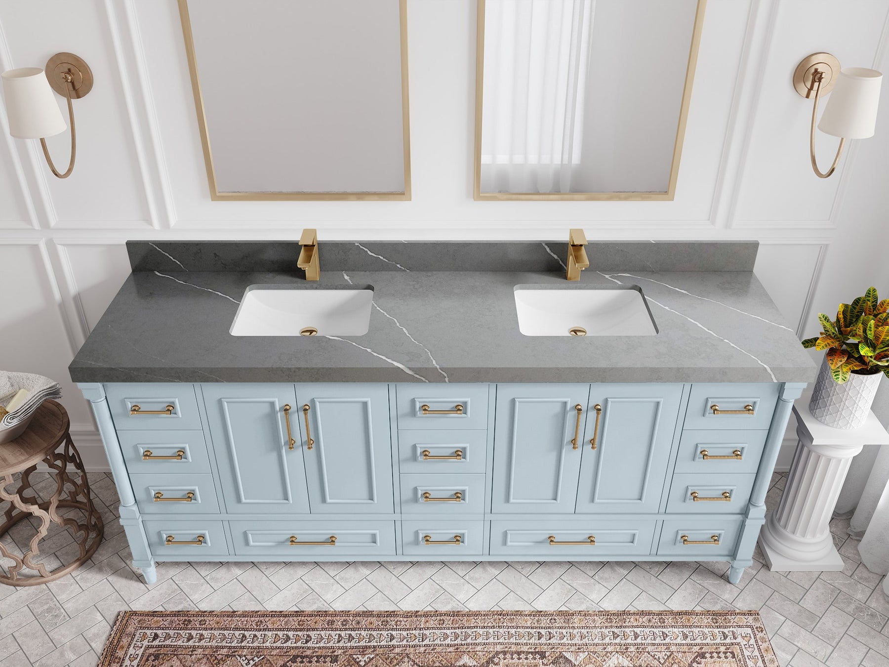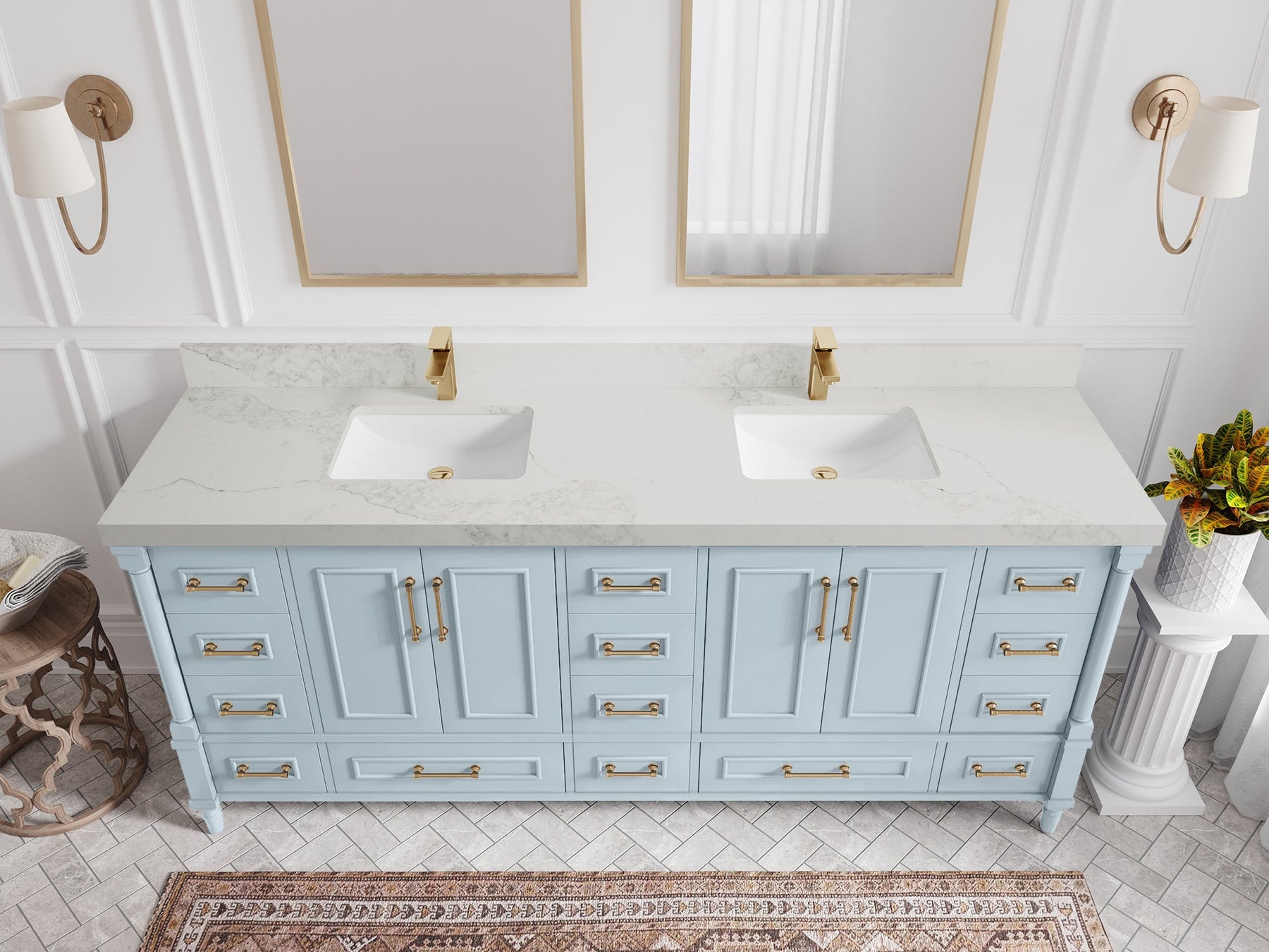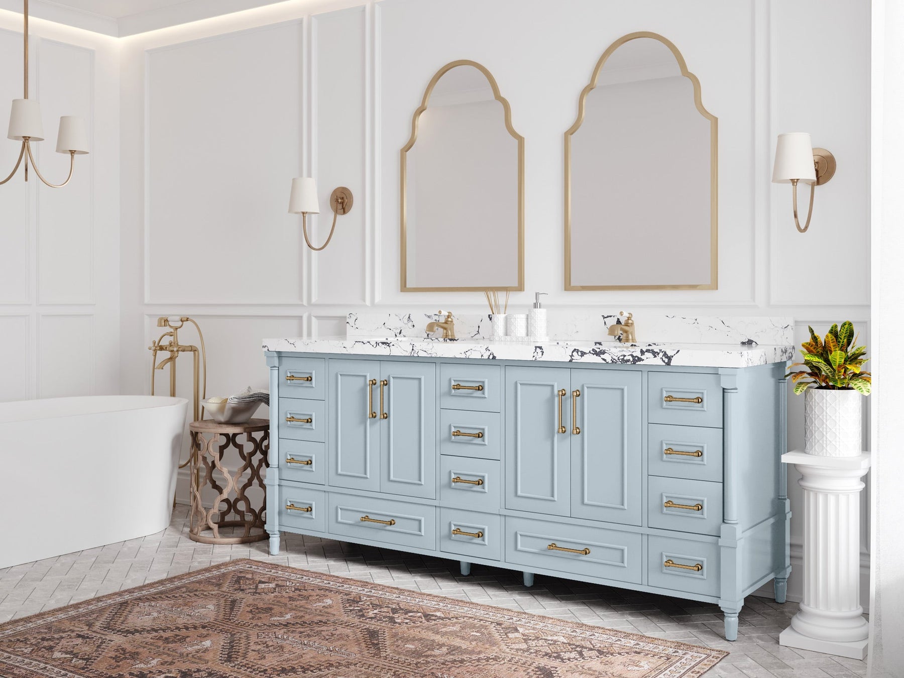Faucet Hole(S): Comes with Single Faucet, 8 (in.) Widespread Faucet, Wall mount Faucets - Only Available for White Quartz and Carrara Quartz. (PLEASE ADD THIS CONFIGURATION UNDER COUNTERTOPS SECTION )