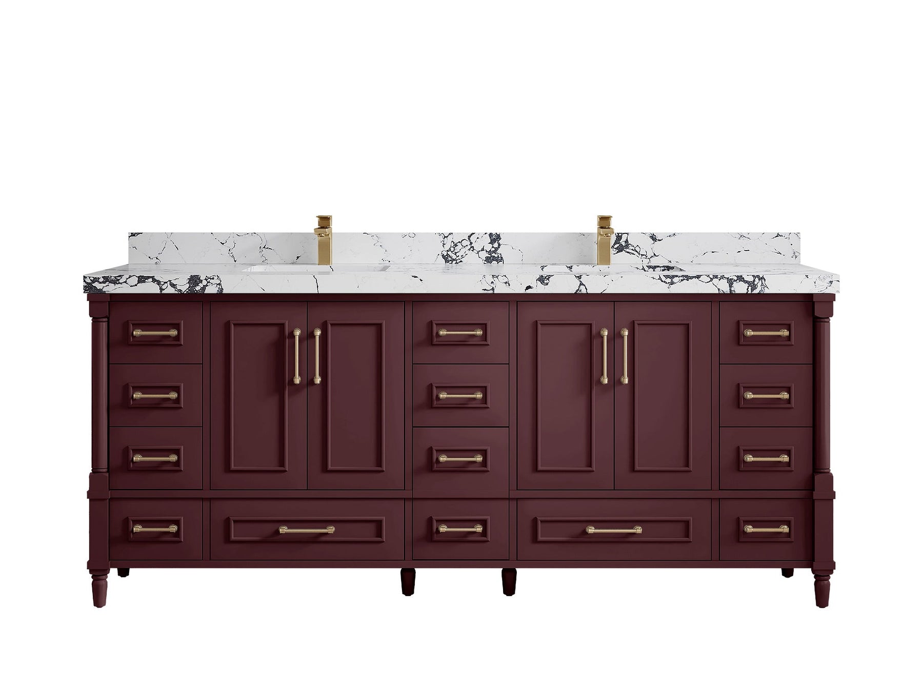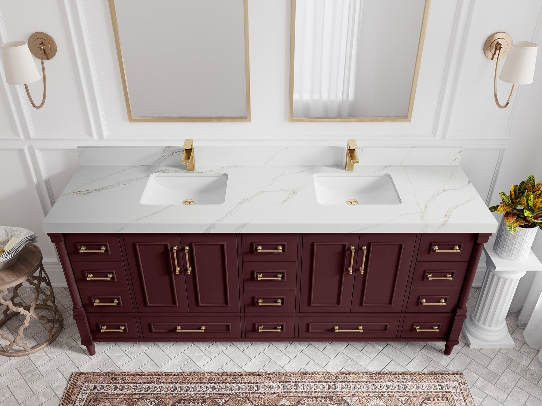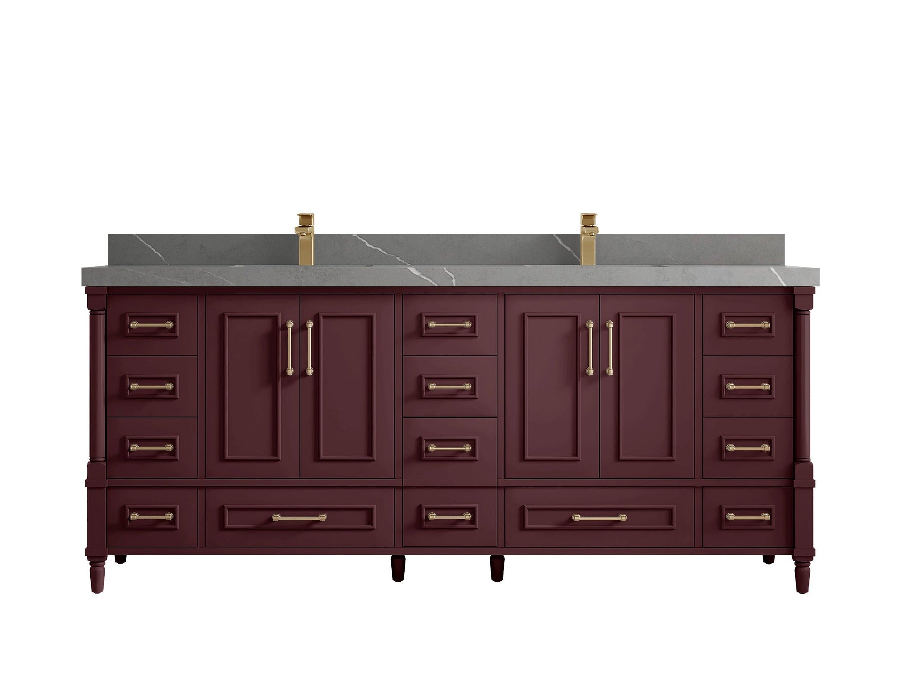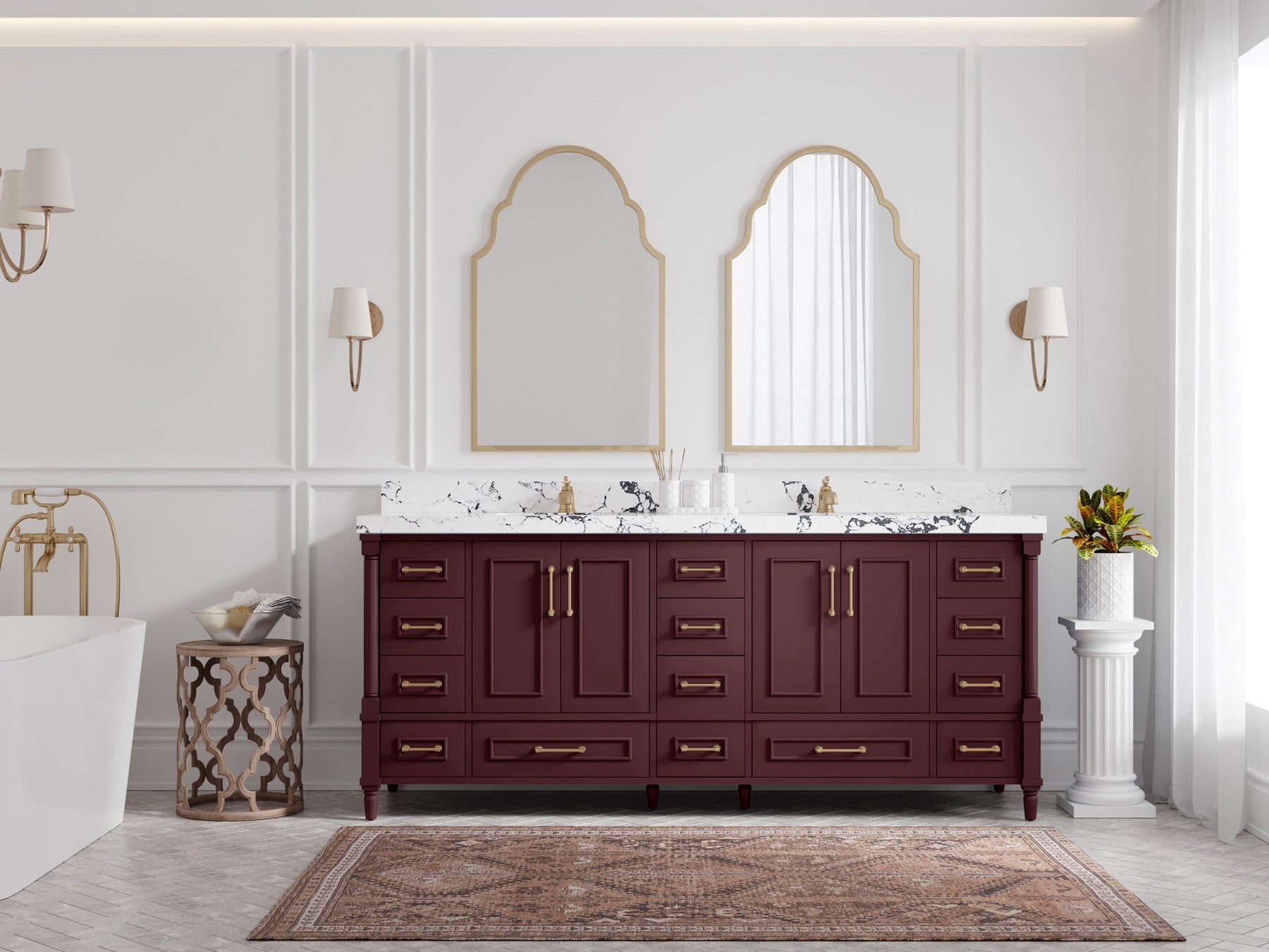 Aberdeen 80 in. W x 22 in. D Double Sink Bathroom Vanity | Burgundy
