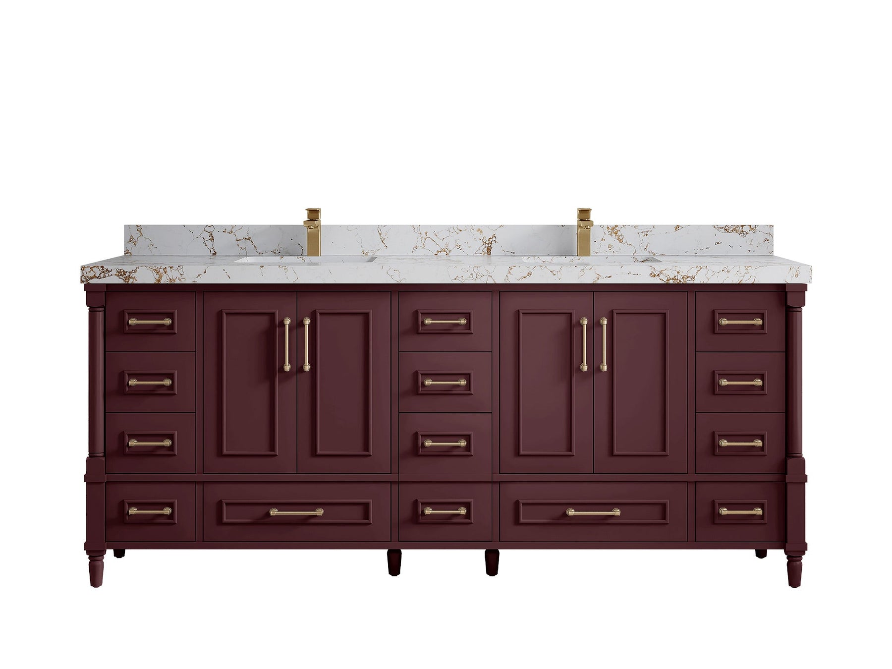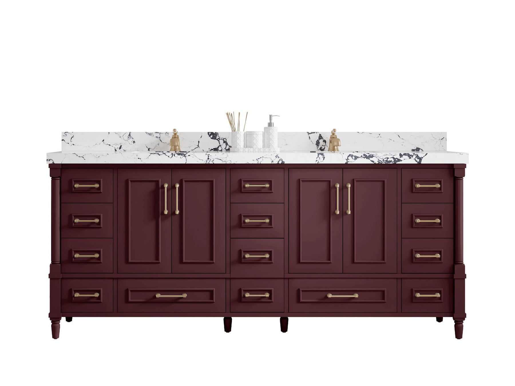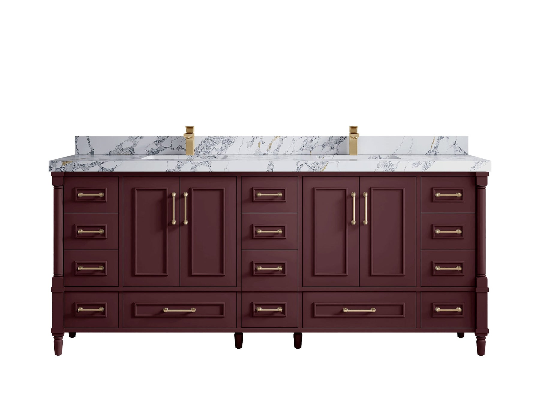 Aberdeen 80 in. W x 22 in. D Double Sink Bathroom Vanity | Burgundy