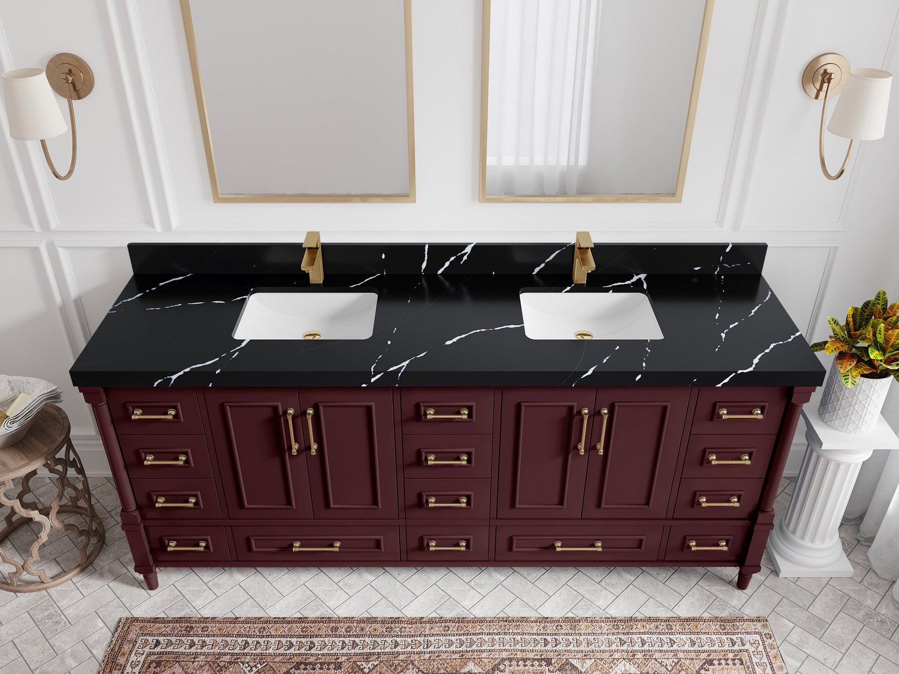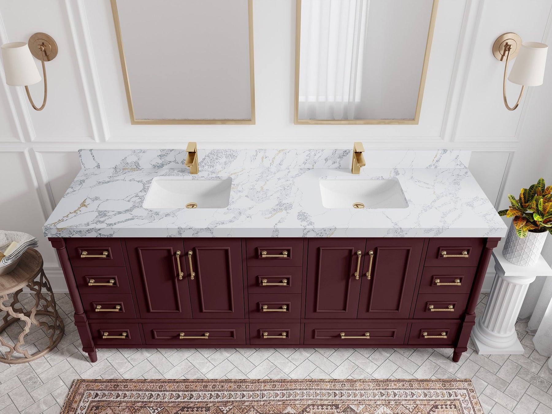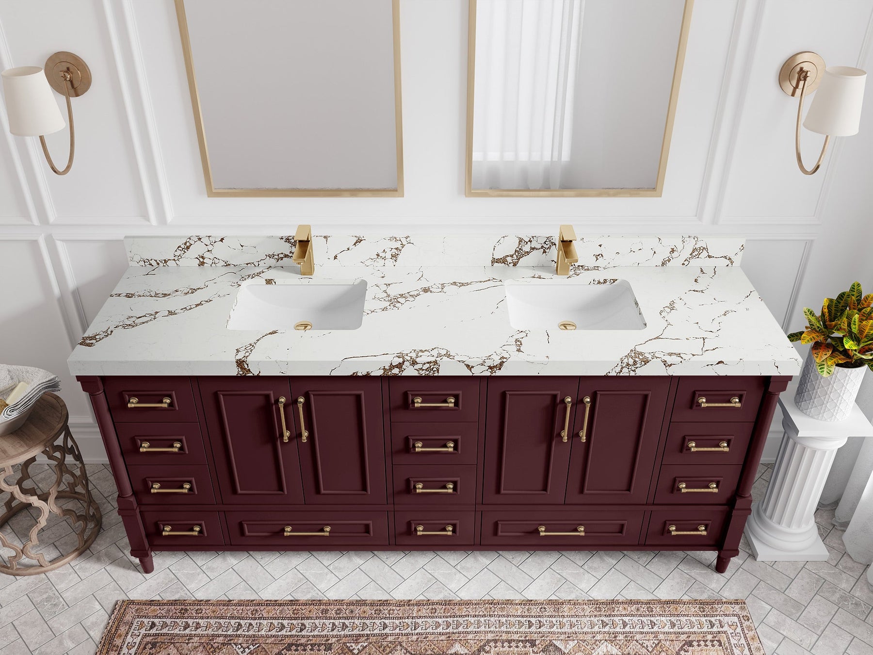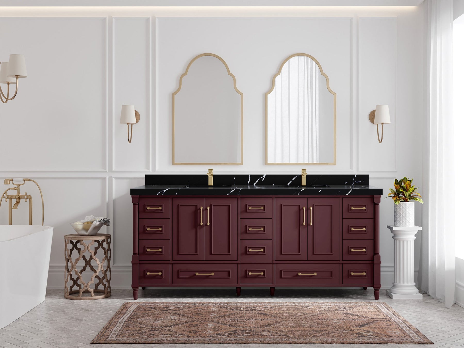 Aberdeen 80 in. W x 22 in. D Double Sink Bathroom Vanity | Burgundy
