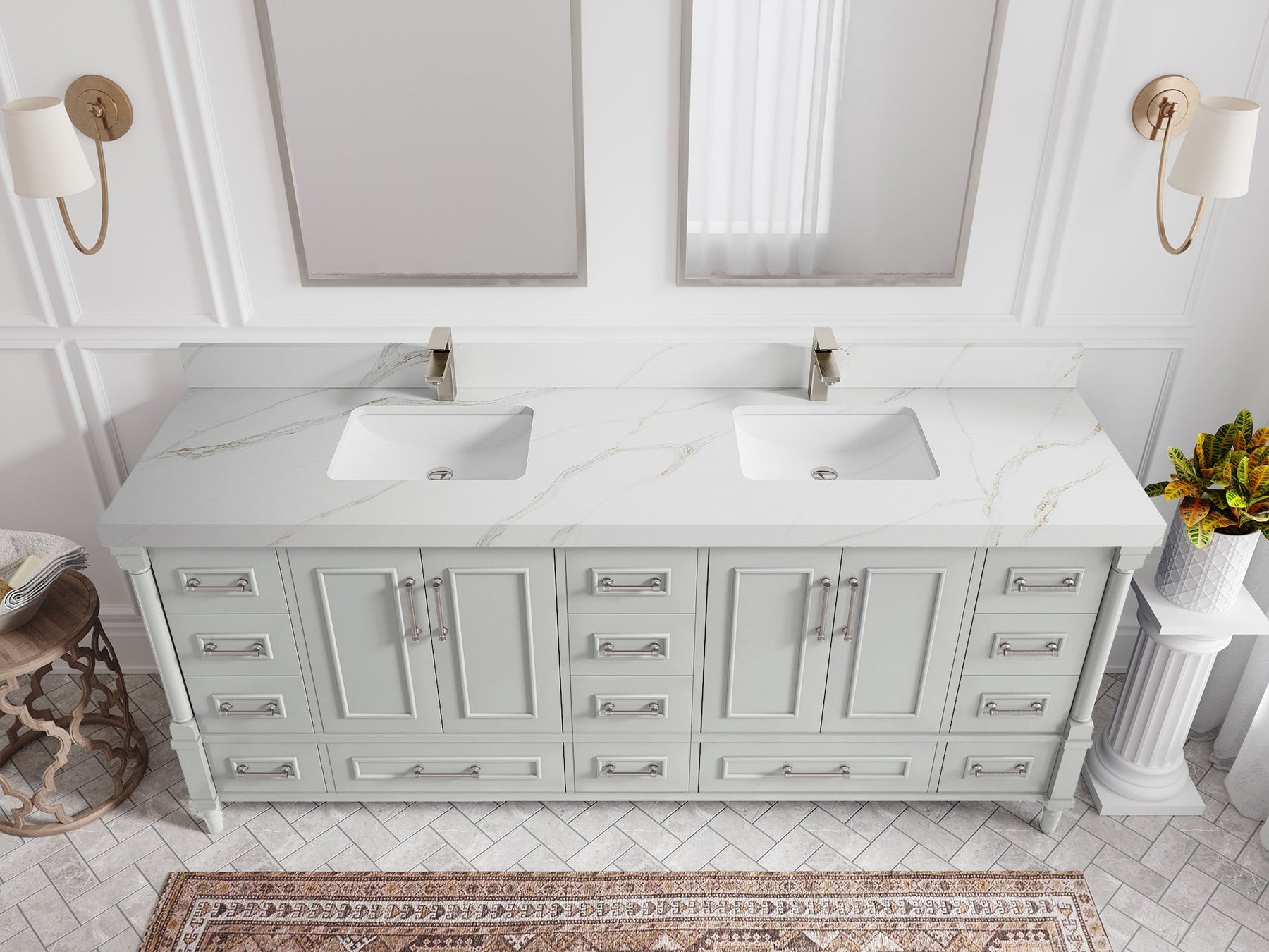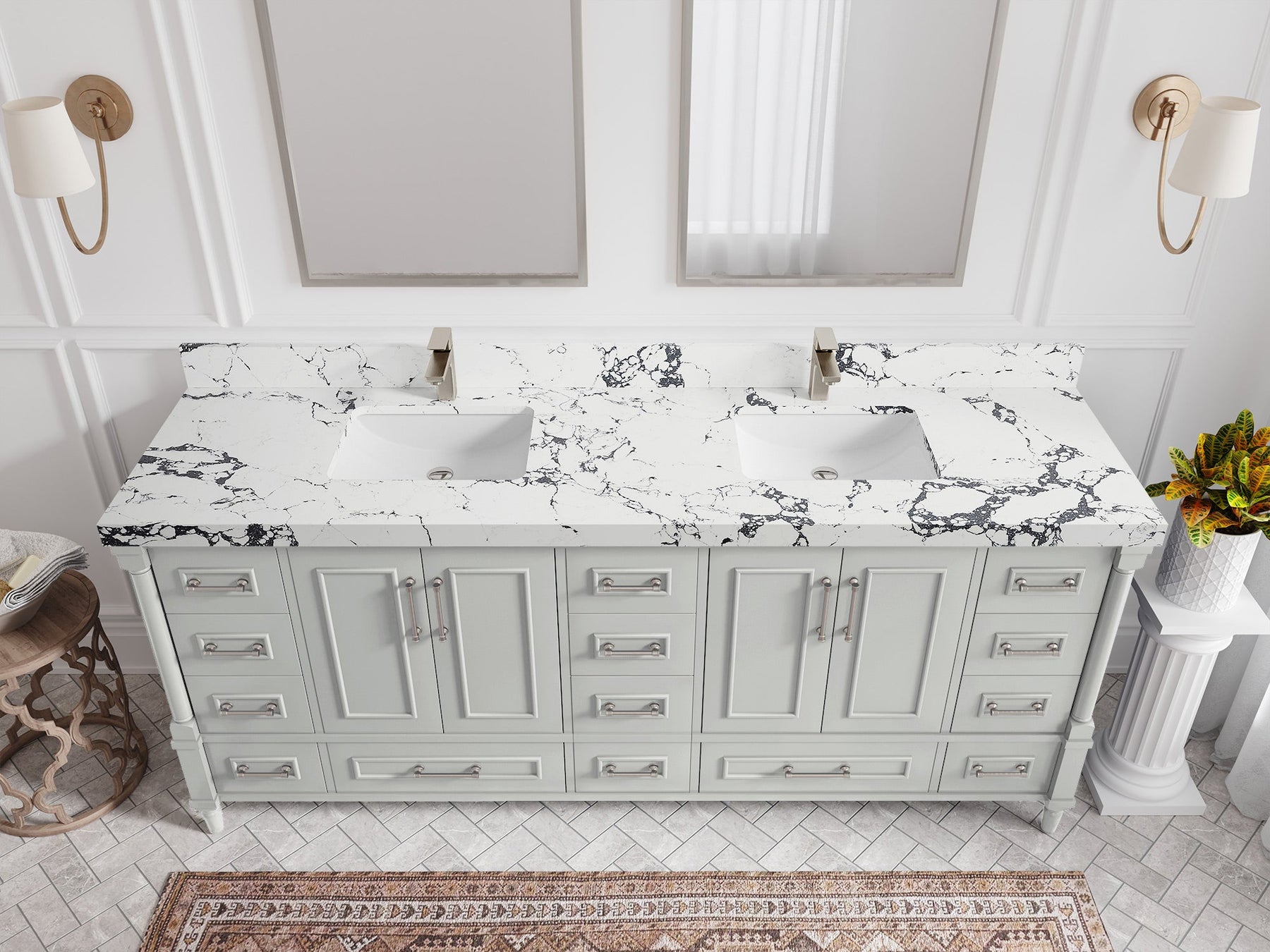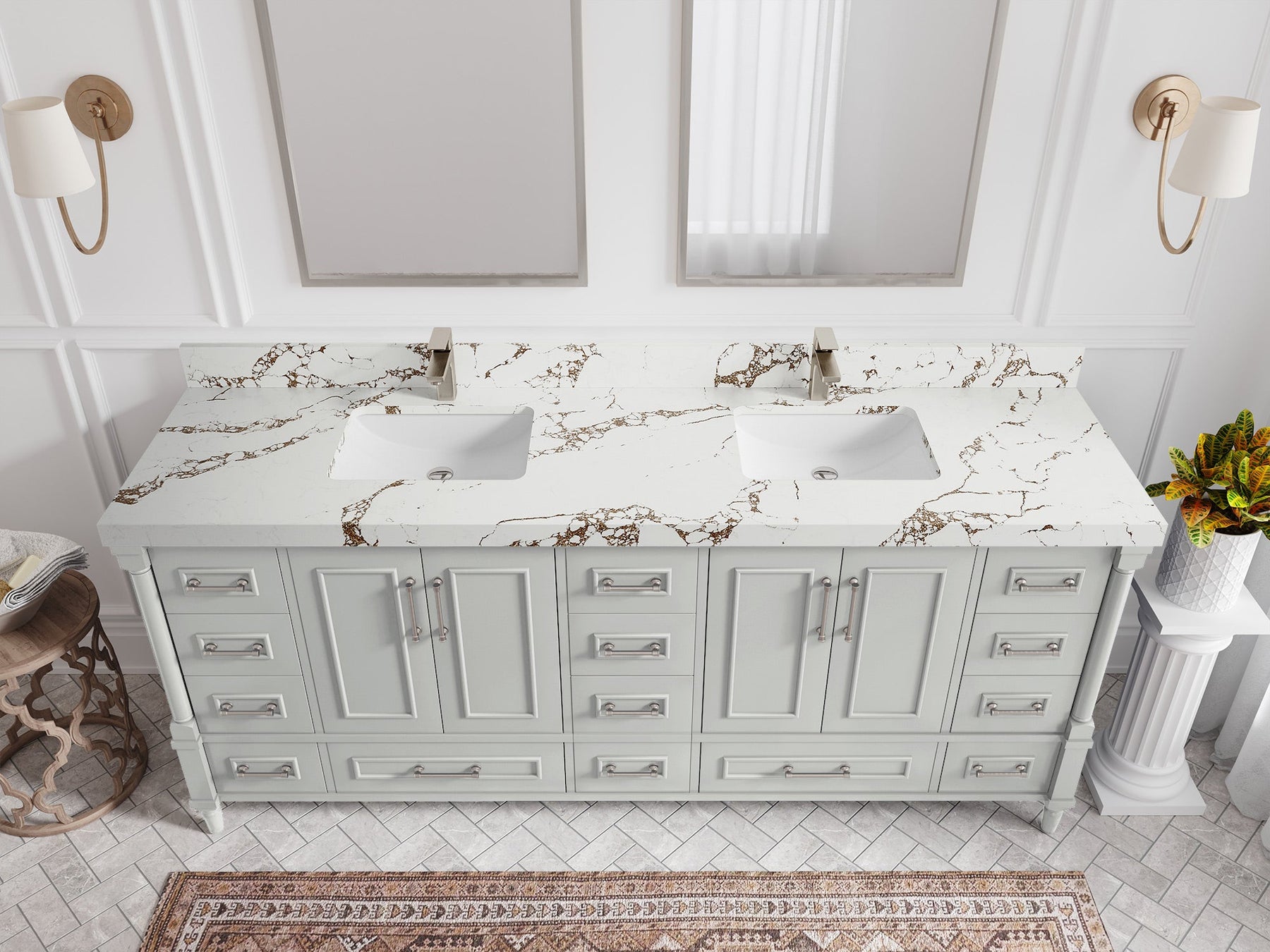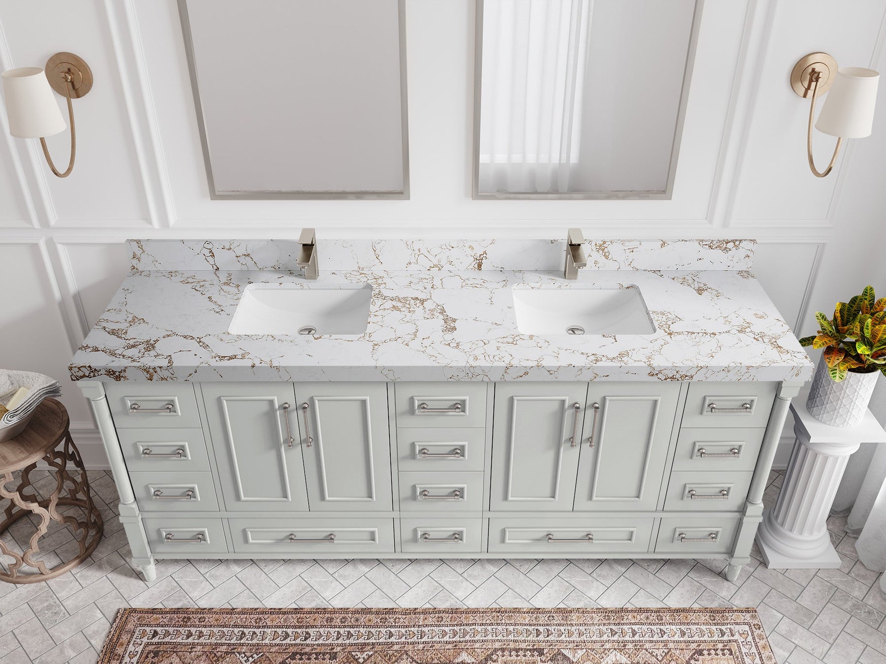 Vanity Countertops options: For Calacatta Laza Quartz, Empira White Quartz, Pure White Quartz we have 2 options Straight-Mitered Edge and Double Cove Edge; For Calacatta Nuvo Quartz, Carrara Marble, Carrara Quartz, Piatra Gray Quartz, Calacatta Black, Calacatta Gold, Venatino Quartz, Pearl Light Gray, Viola Brown, Viola Gold, Viola Night, Calacatta Sienna, 2" Calacatta Poanazzo we only have Straight - Mitered Edge option.
