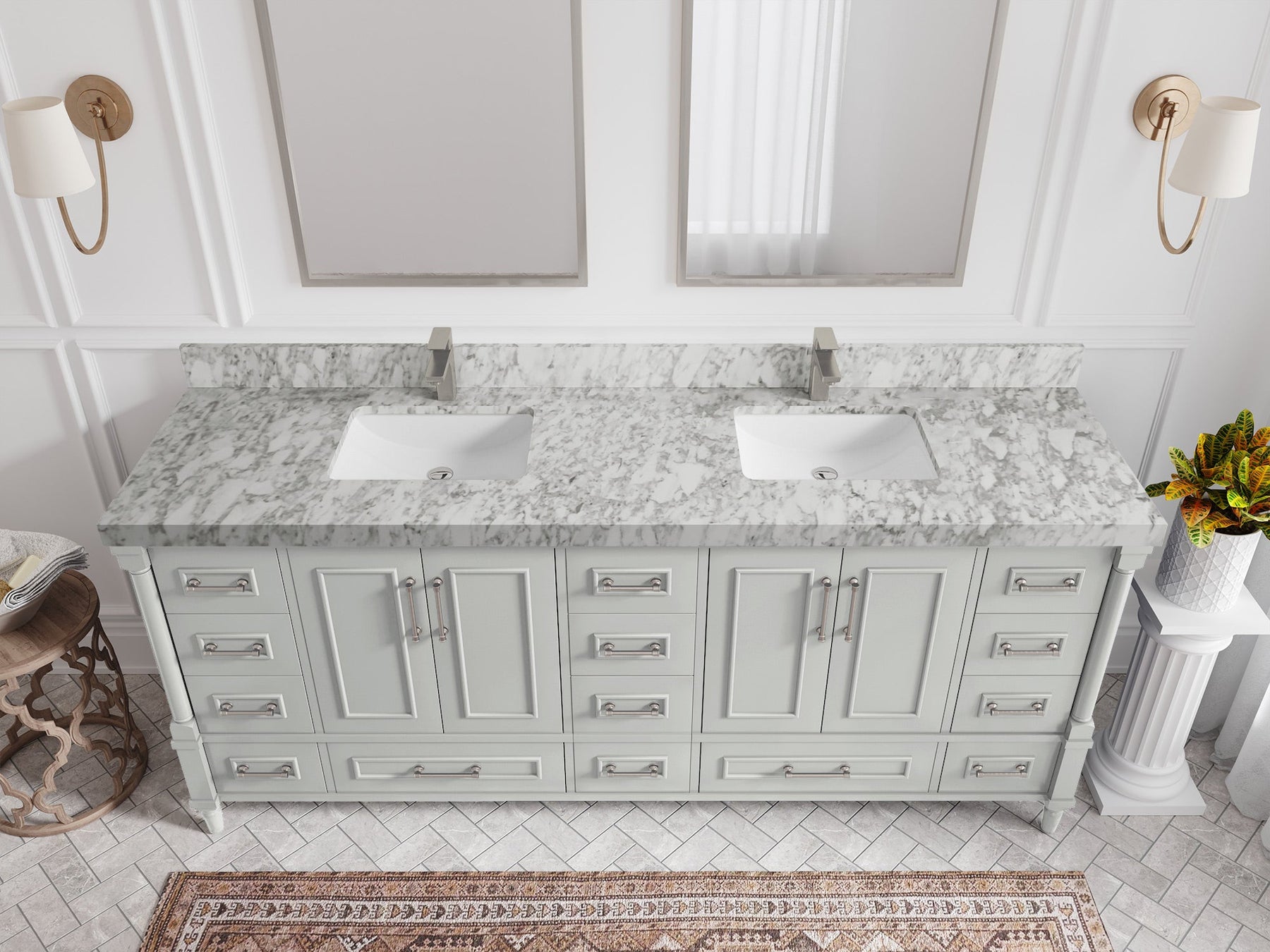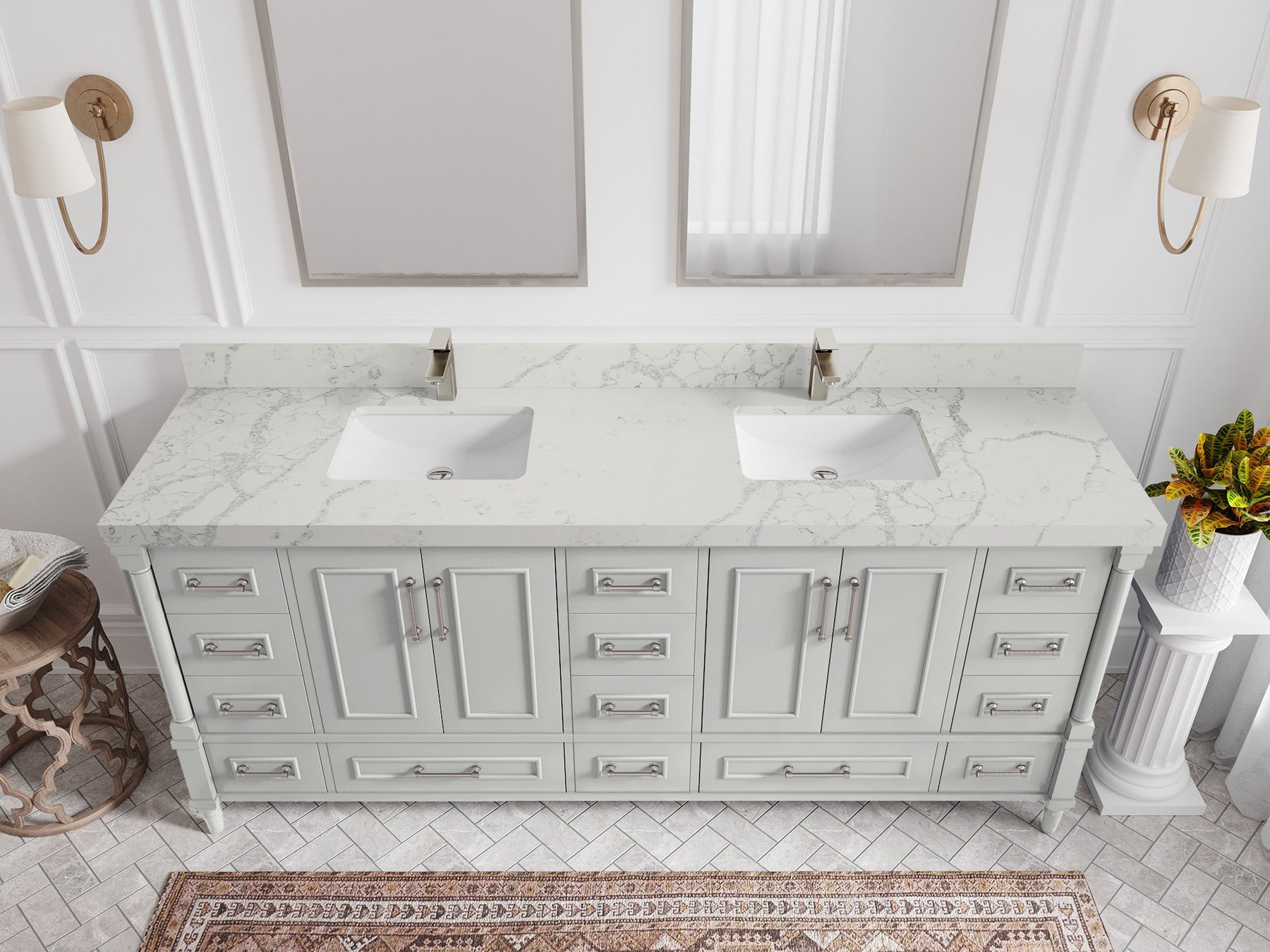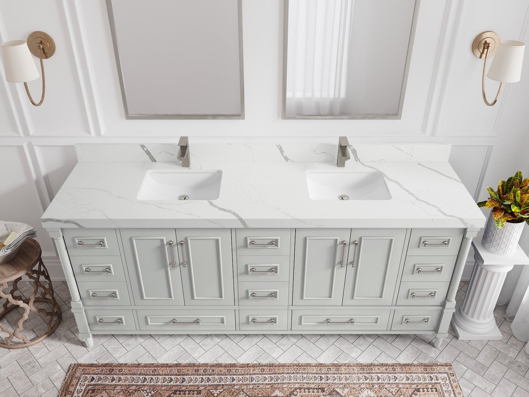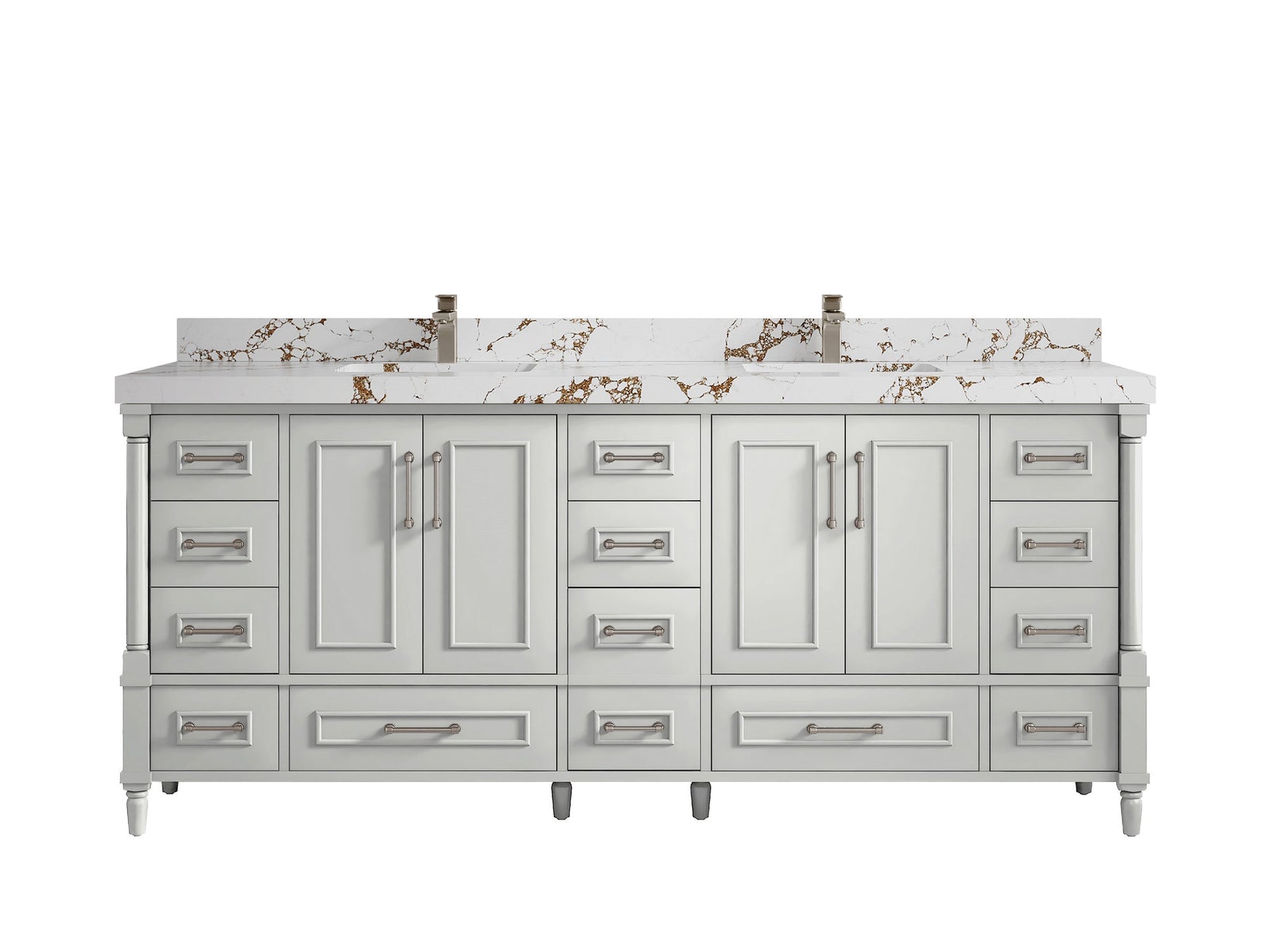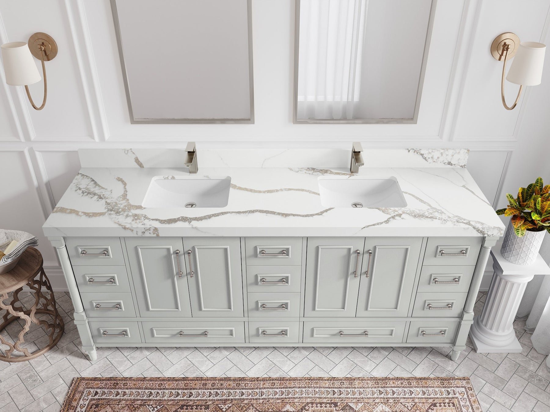 Vanity Countertops options: For Calacatta Laza Quartz, Empira White Quartz, Pure White Quartz we have 2 options Straight-Mitered Edge and Double Cove Edge; For Calacatta Nuvo Quartz, Carrara Marble, Carrara Quartz, Piatra Gray Quartz, Calacatta Black, Calacatta Gold, Venatino Quartz, Pearl Light Gray, Viola Brown, Viola Gold, Viola Night, Calacatta Sienna, 2" Calacatta Poanazzo we only have Straight - Mitered Edge option.
