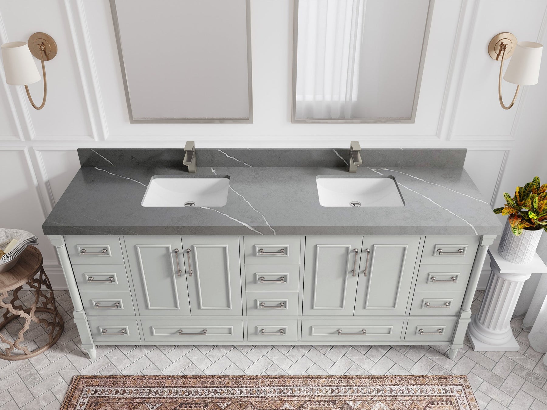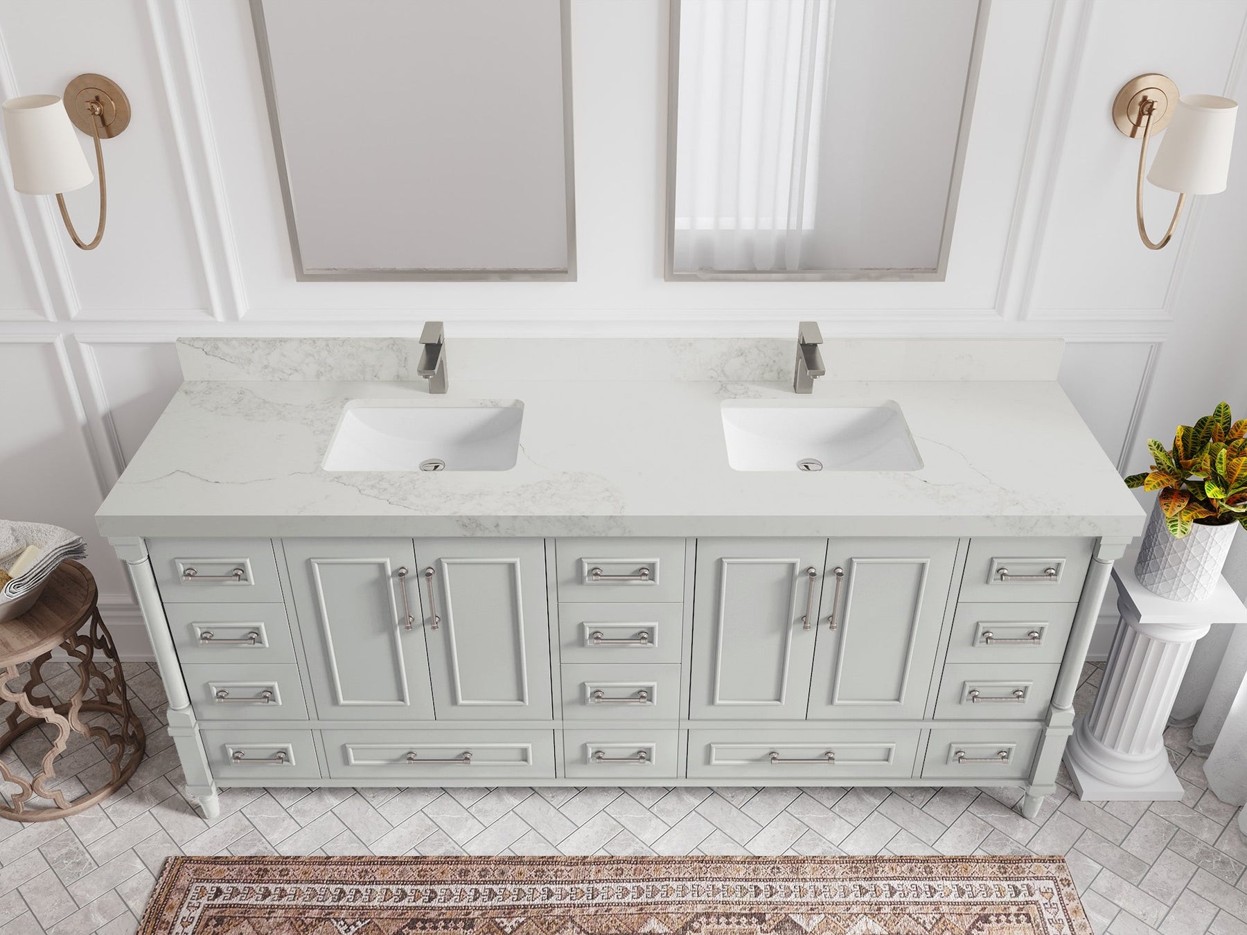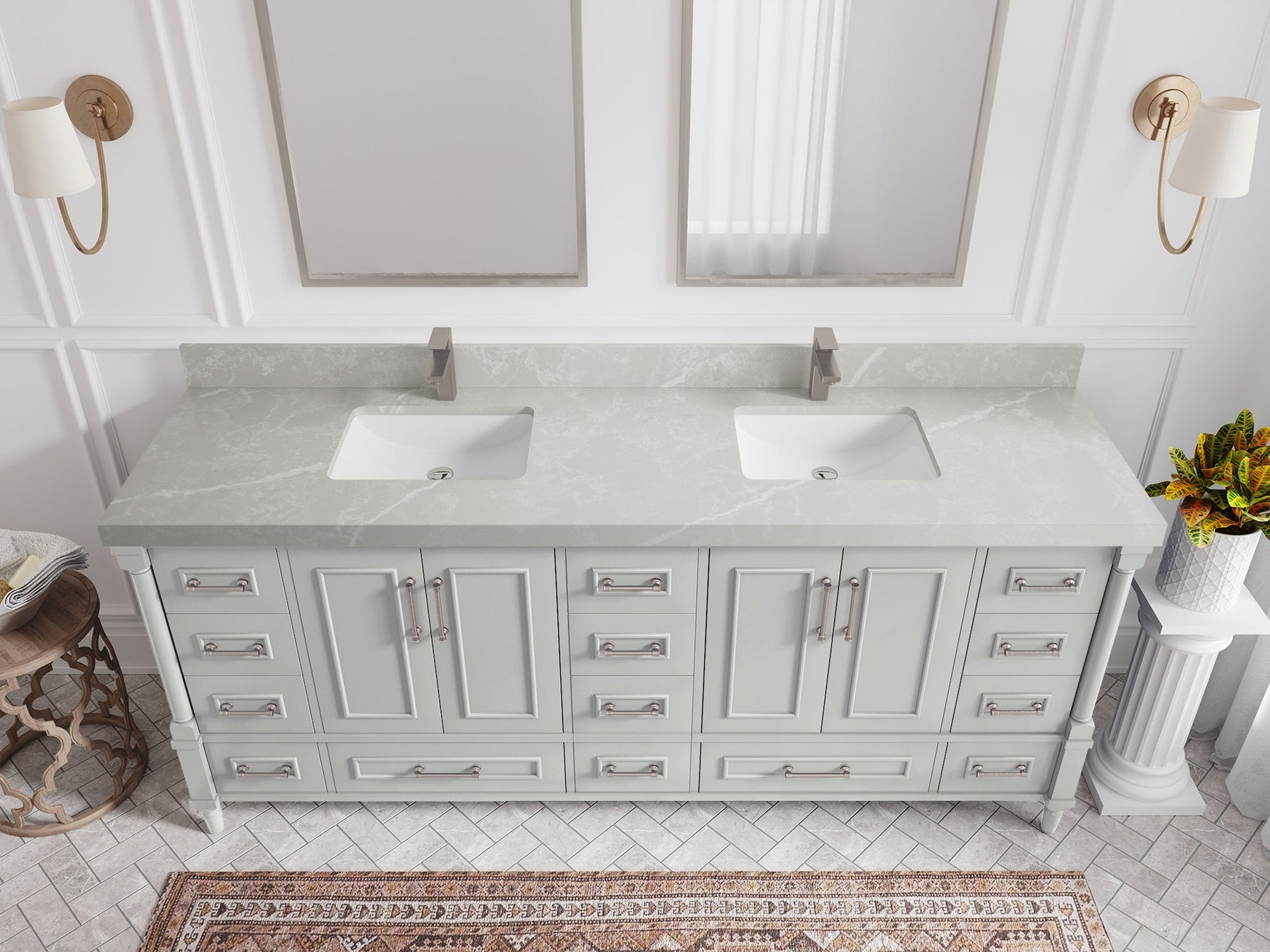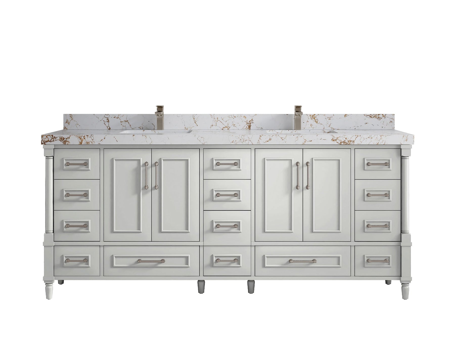 Vanity Countertops options: For Calacatta Laza Quartz, Empira White Quartz, Pure White Quartz we have 2 options Straight-Mitered Edge and Double Cove Edge; For Calacatta Nuvo Quartz, Carrara Marble, Carrara Quartz, Piatra Gray Quartz, Calacatta Black, Calacatta Gold, Venatino Quartz, Pearl Light Gray, Viola Brown, Viola Gold, Viola Night, Calacatta Sienna, 2" Calacatta Poanazzo we only have Straight - Mitered Edge option.