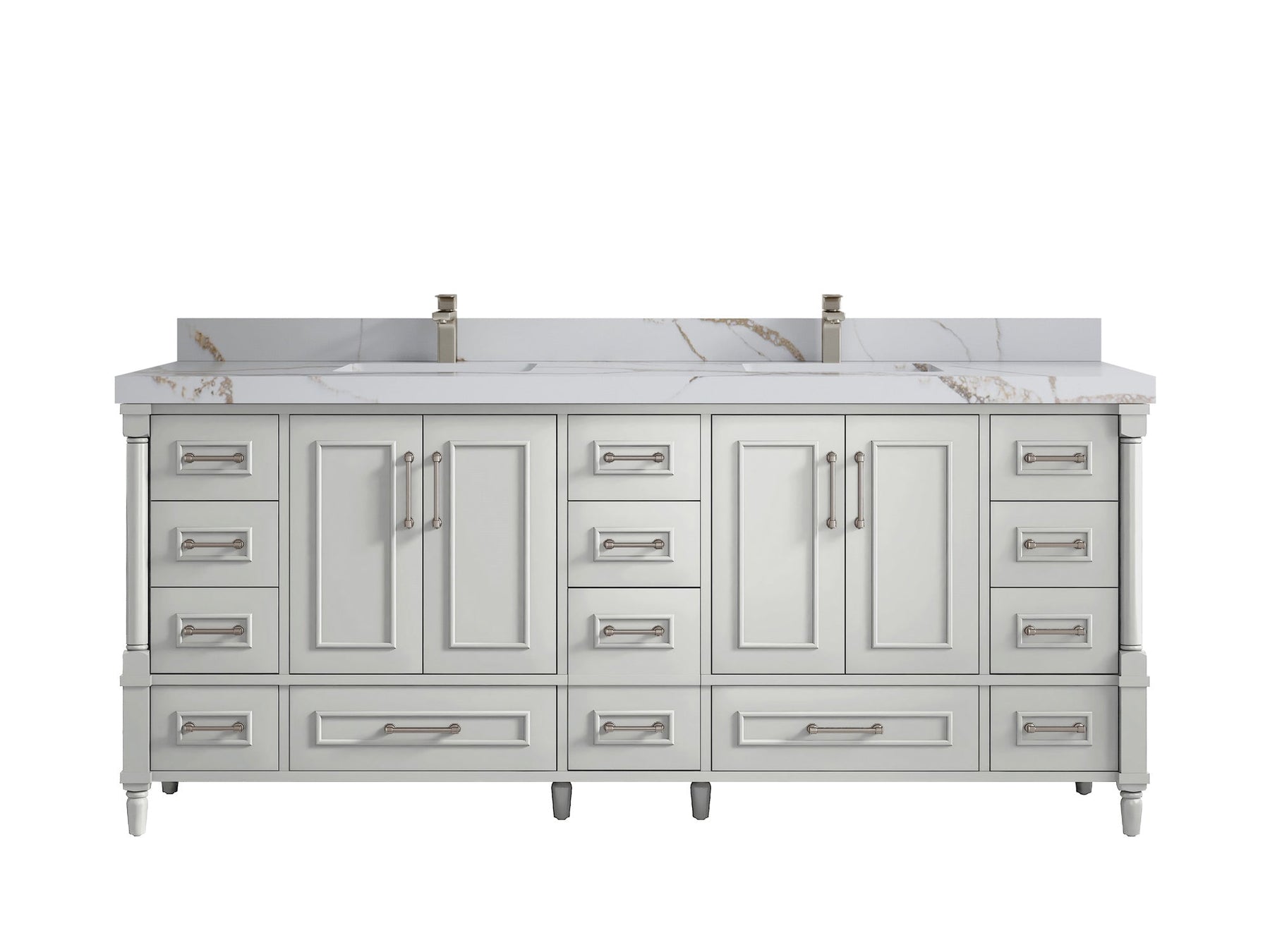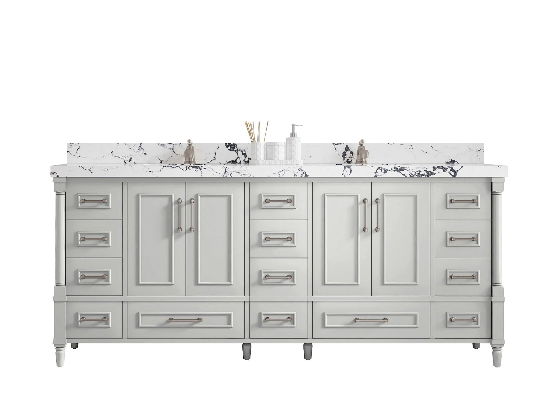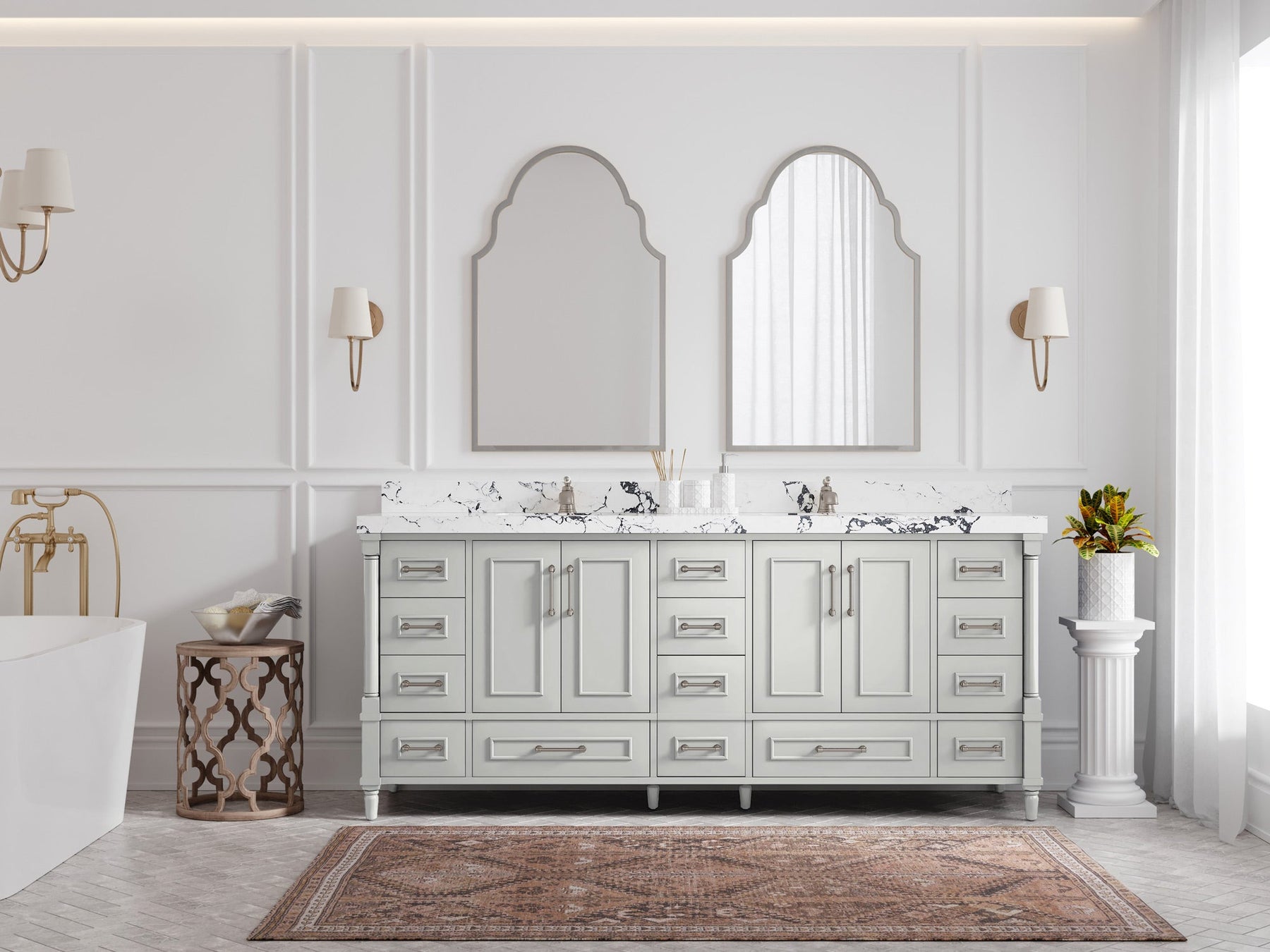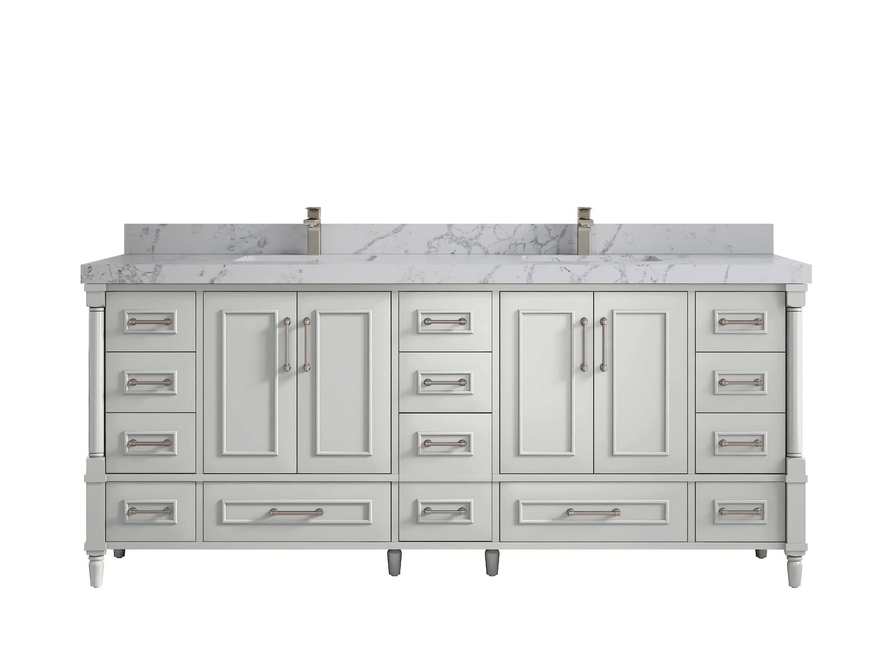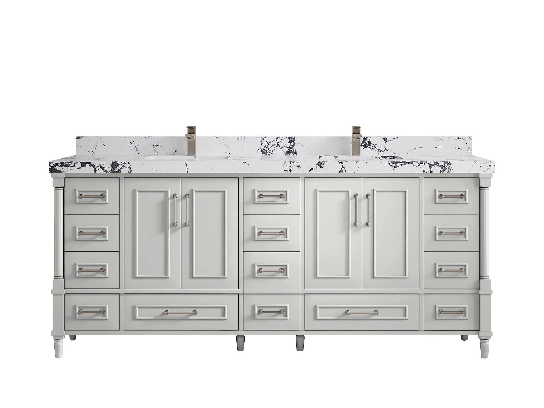 Vanity Countertops options: For Calacatta Laza Quartz, Empira White Quartz, Pure White Quartz we have 2 options Straight-Mitered Edge and Double Cove Edge; For Calacatta Nuvo Quartz, Carrara Marble, Carrara Quartz, Piatra Gray Quartz, Calacatta Black, Calacatta Gold, Venatino Quartz, Pearl Light Gray, Viola Brown, Viola Gold, Viola Night, Calacatta Sienna, 2" Calacatta Poanazzo we only have Straight - Mitered Edge option.
