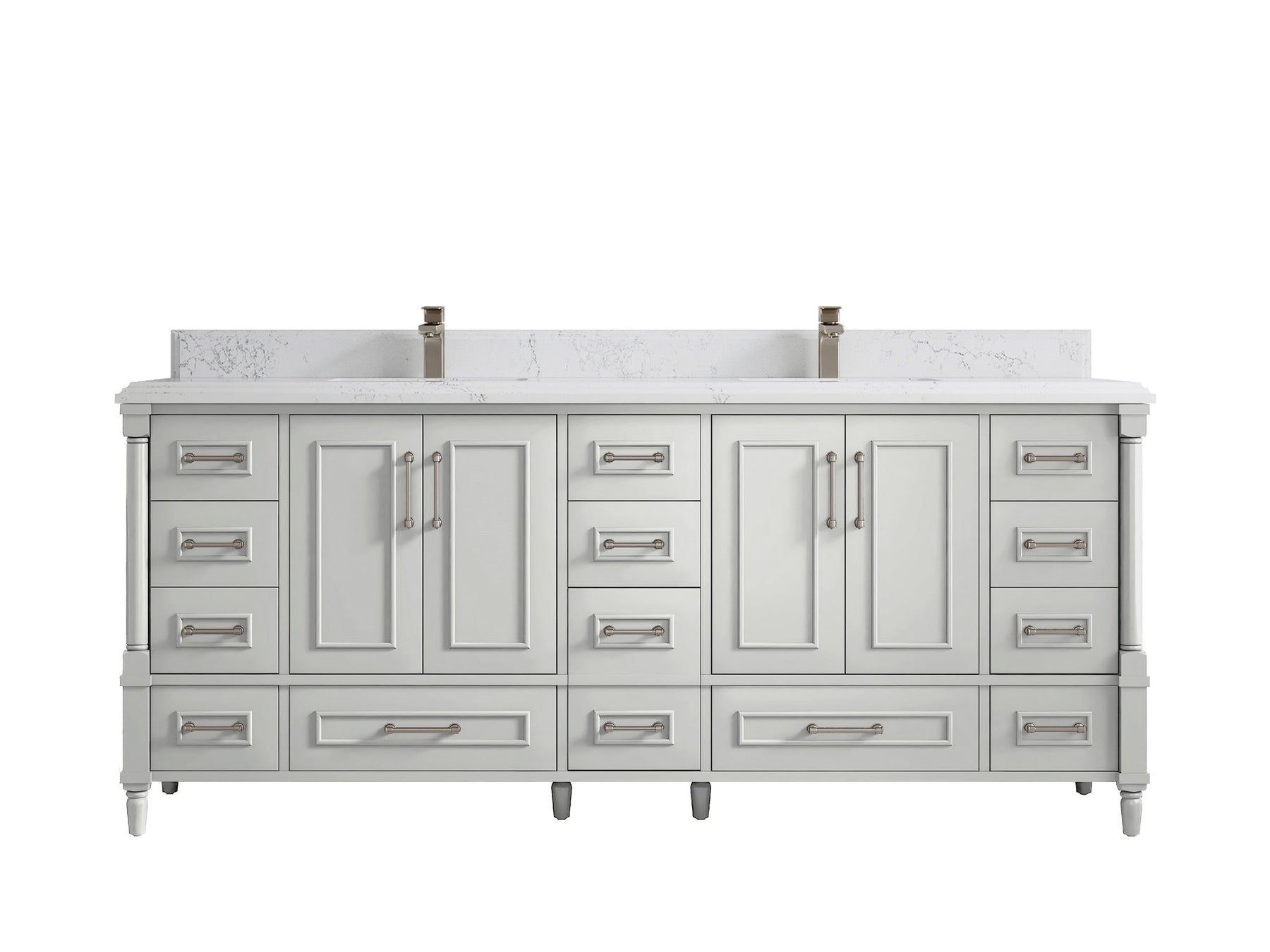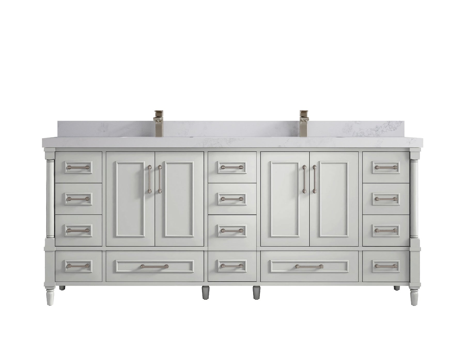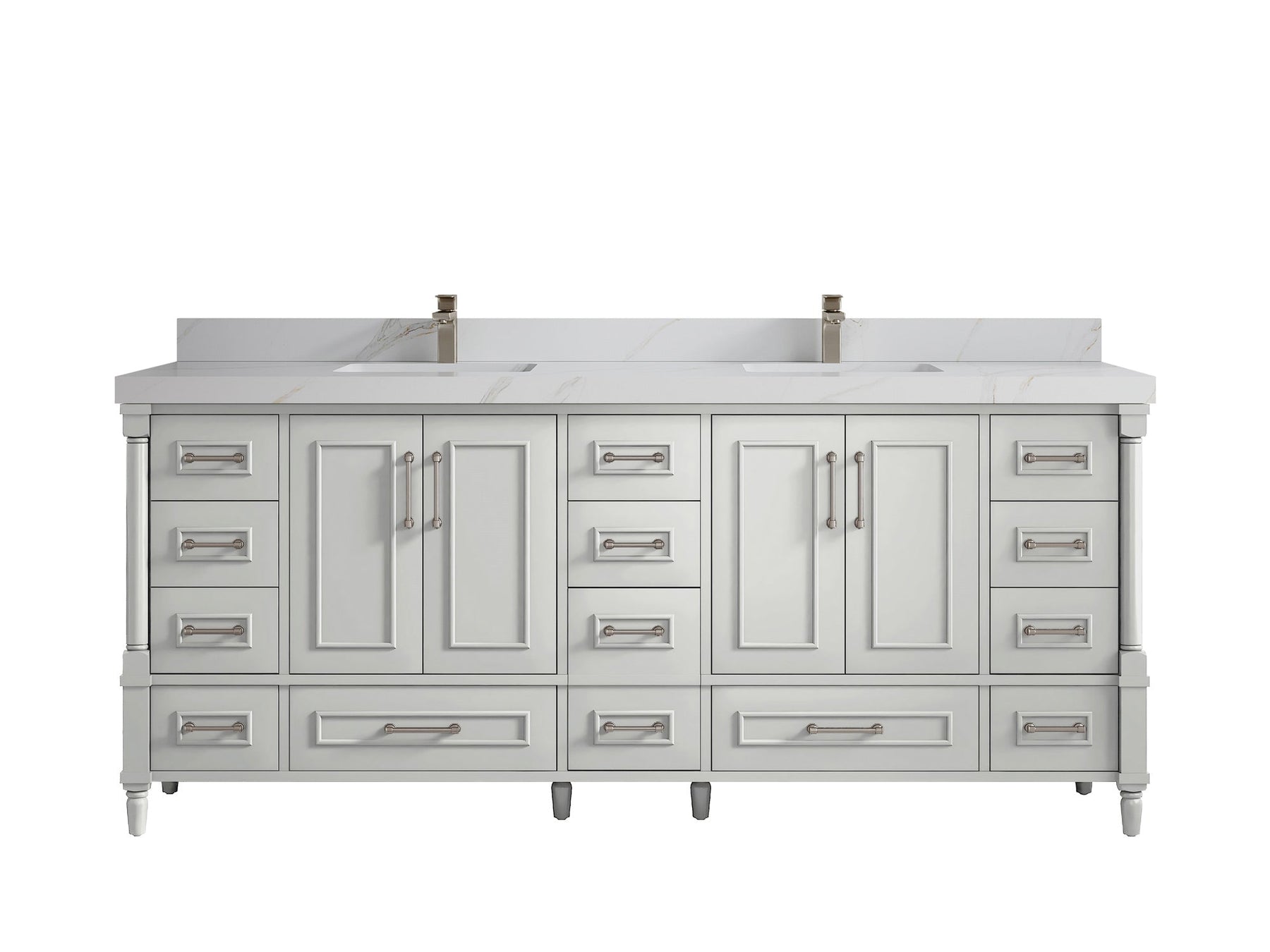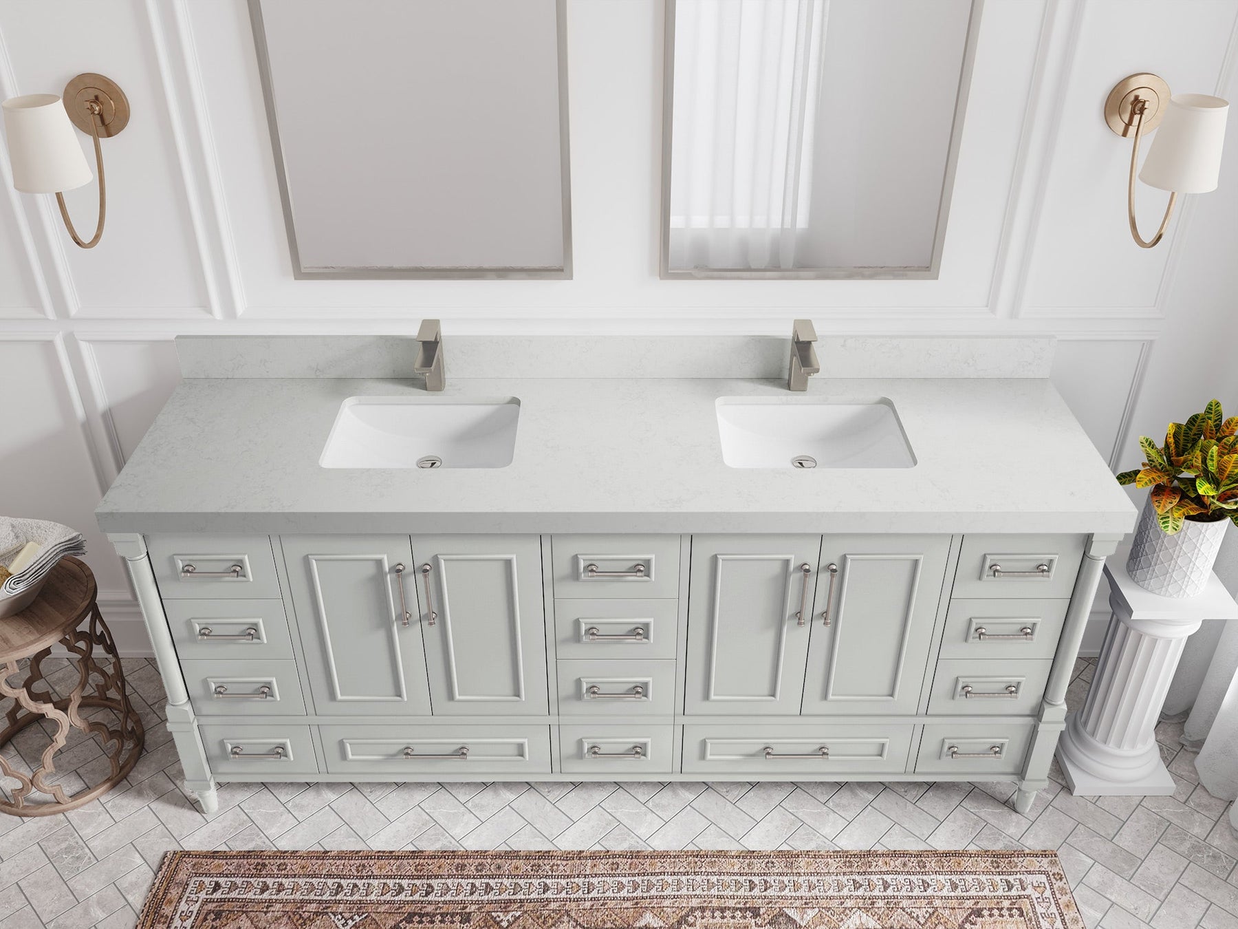 Vanity Countertops options: For Calacatta Laza Quartz, Empira White Quartz, Pure White Quartz we have 2 options Straight-Mitered Edge and Double Cove Edge; For Calacatta Nuvo Quartz, Carrara Marble, Carrara Quartz, Piatra Gray Quartz, Calacatta Black, Calacatta Gold, Venatino Quartz, Pearl Light Gray, Viola Brown, Viola Gold, Viola Night, Calacatta Sienna, 2" Calacatta Poanazzo we only have Straight - Mitered Edge option.