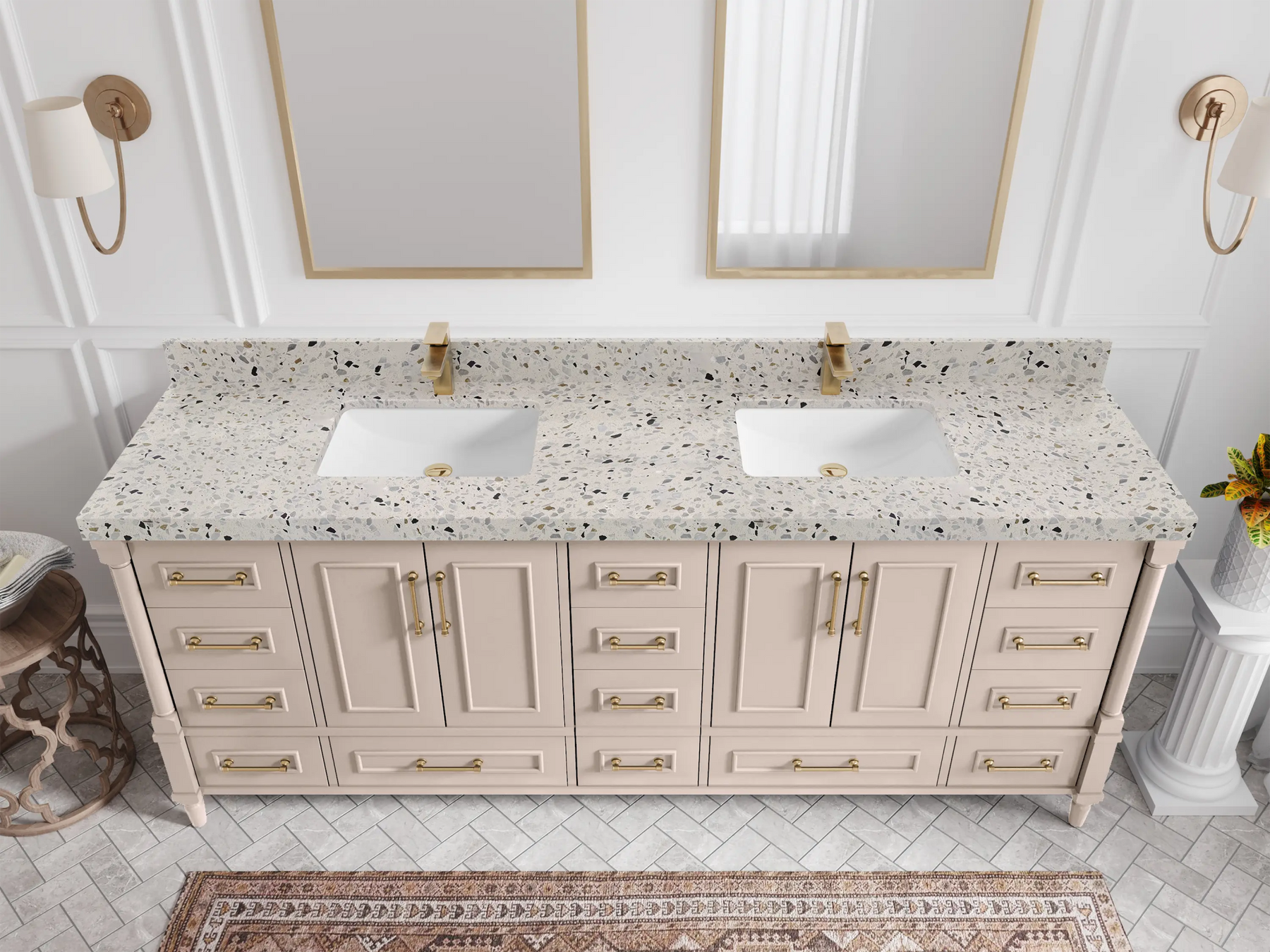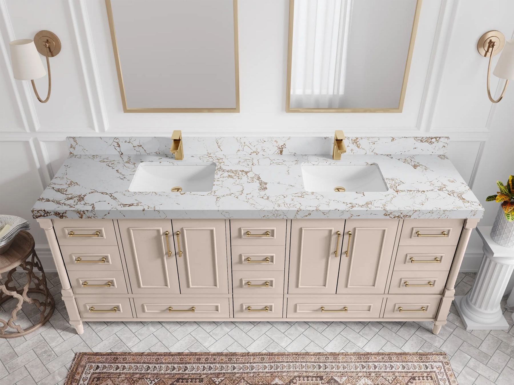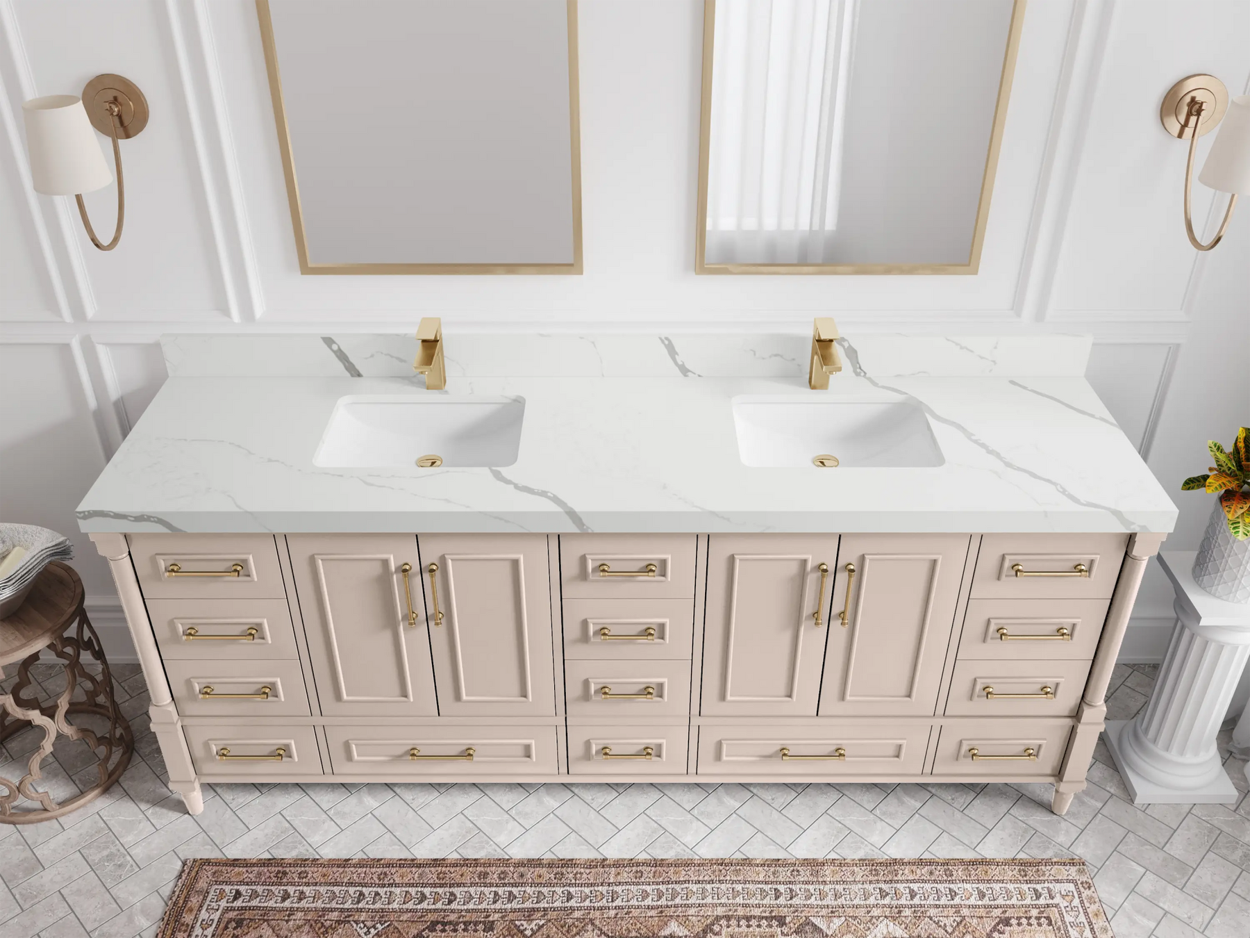 Vanity Countertops options: For Calacatta Laza Quartz, Empira White Quartz, Pure White Quartz, Palissandro Quartz we have 2 options Straight-Mitered Edge and Double Cove Edge; For Calacatta Nuvo Quartz, Carrara Marble, Carrara Quartz, Piatra Gray Quartz, Pearl Light Gray Quartz, Calacatta Black Quartz, Calacatta Gold Quartz, Calacatta Sienna Quartz, Calacatta Poanazzo Quartz, Venatino Quartz, Viola Brown Quartz, Viola Gold Quartz, Viola Night Quartz, Viola Biagio Quartz, Berkshire Brass Quartz, Frosty Carrara Quartz, Onyx Quartz we have Straight - Mitered Edge option.