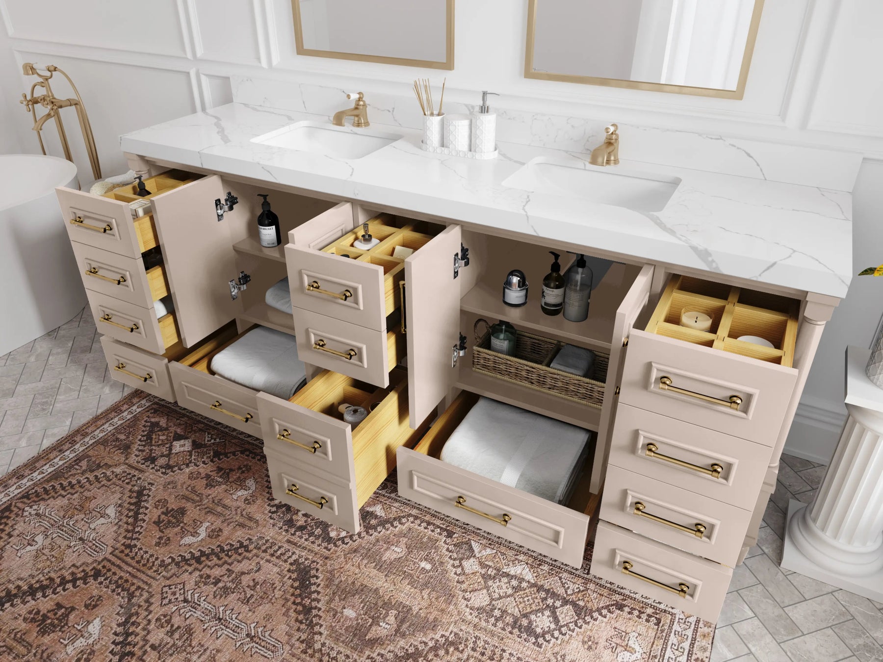 4. Ample Storage Space - The Aberdeen Vanity comes with spacious cabinet space to store all your bathroom essentials, including towels, toiletries, and more. The soft-close drawers and doors ensure that you can access your items easily and quietly.