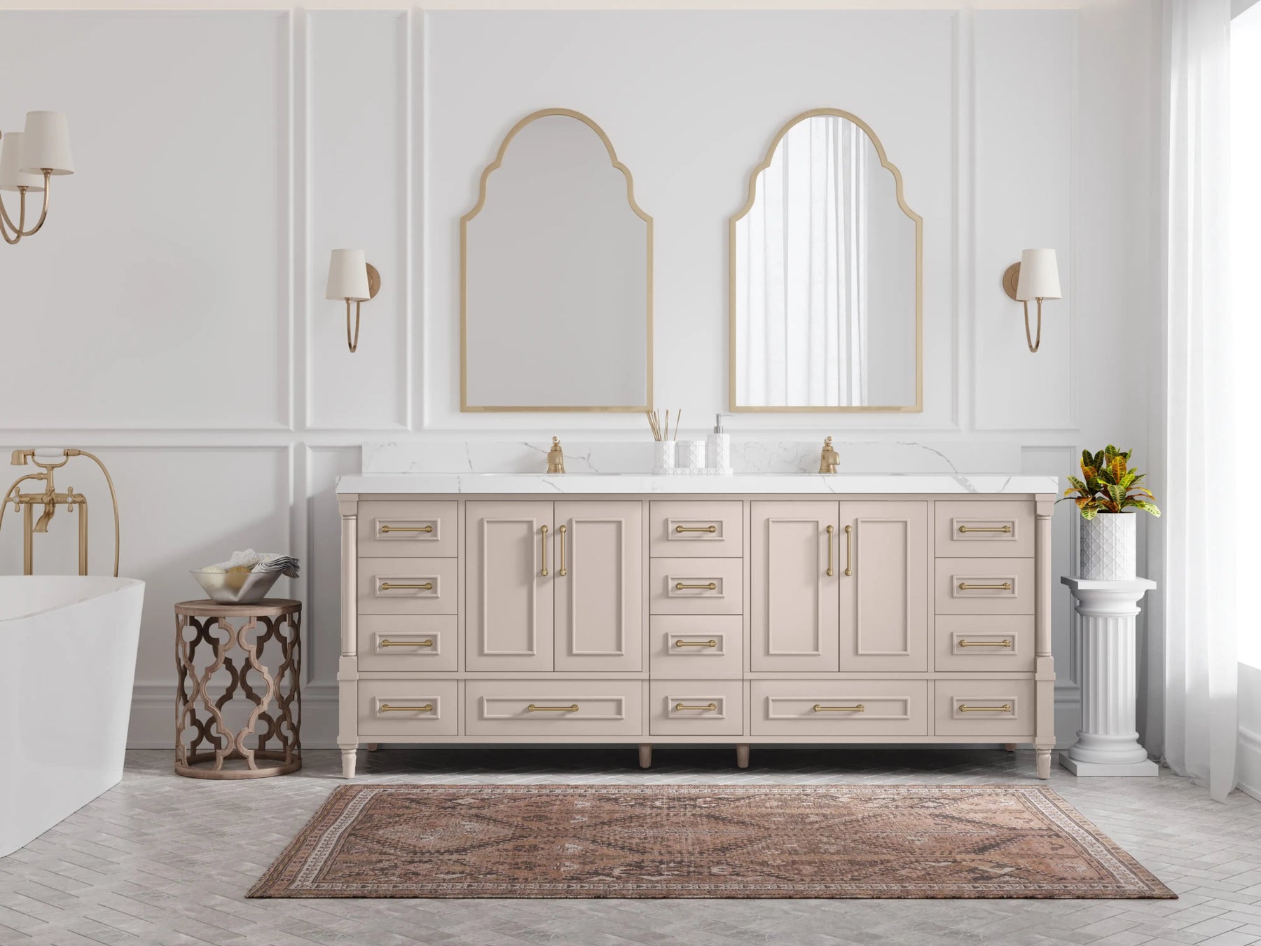 Aberdeen 84 in. W x 22 in. D Double Sink Bathroom Vanity | Pink