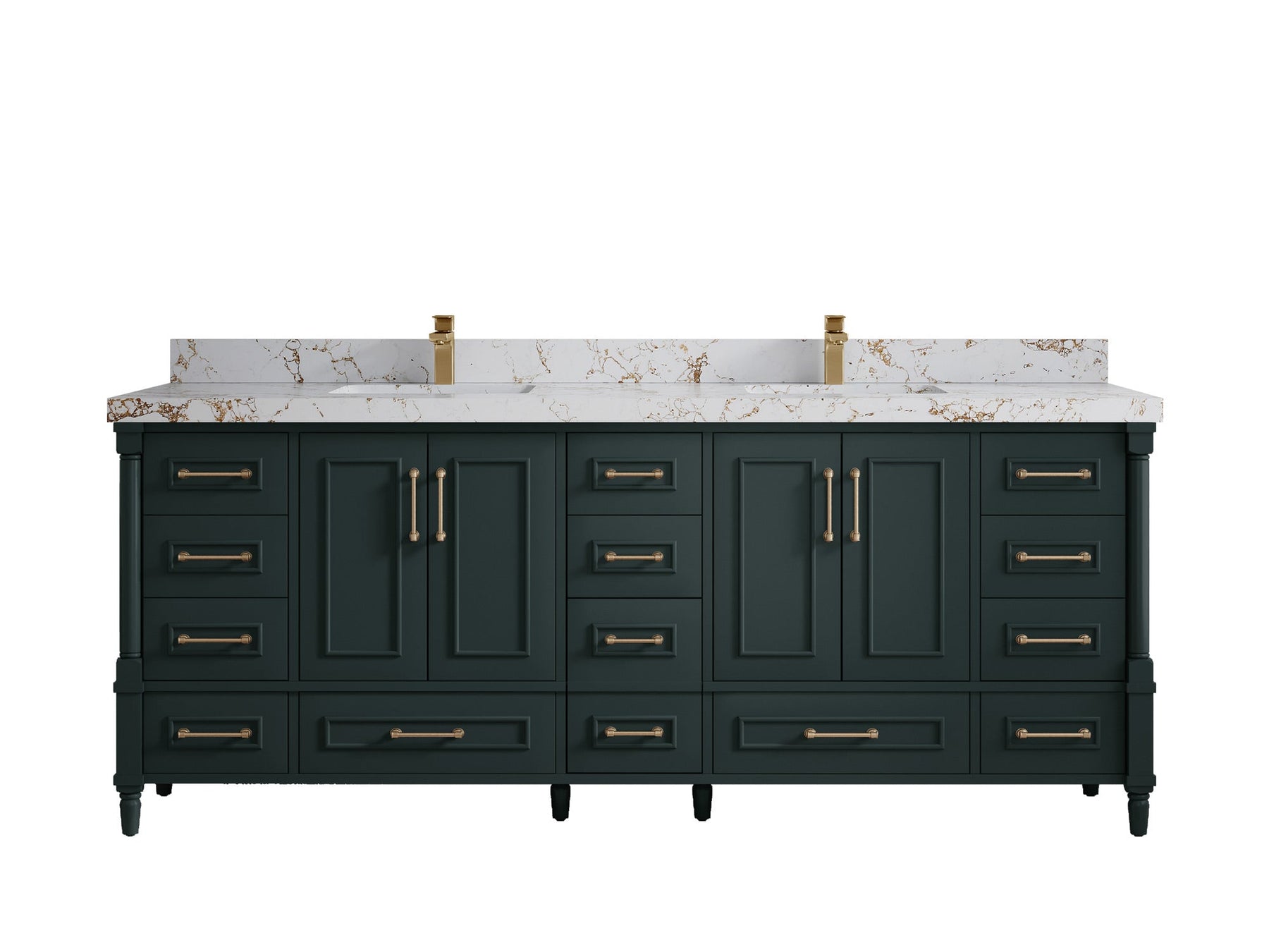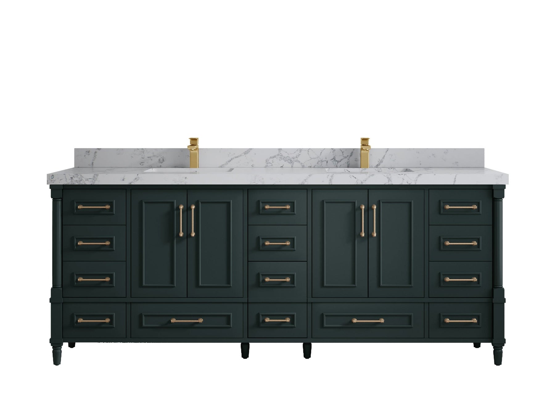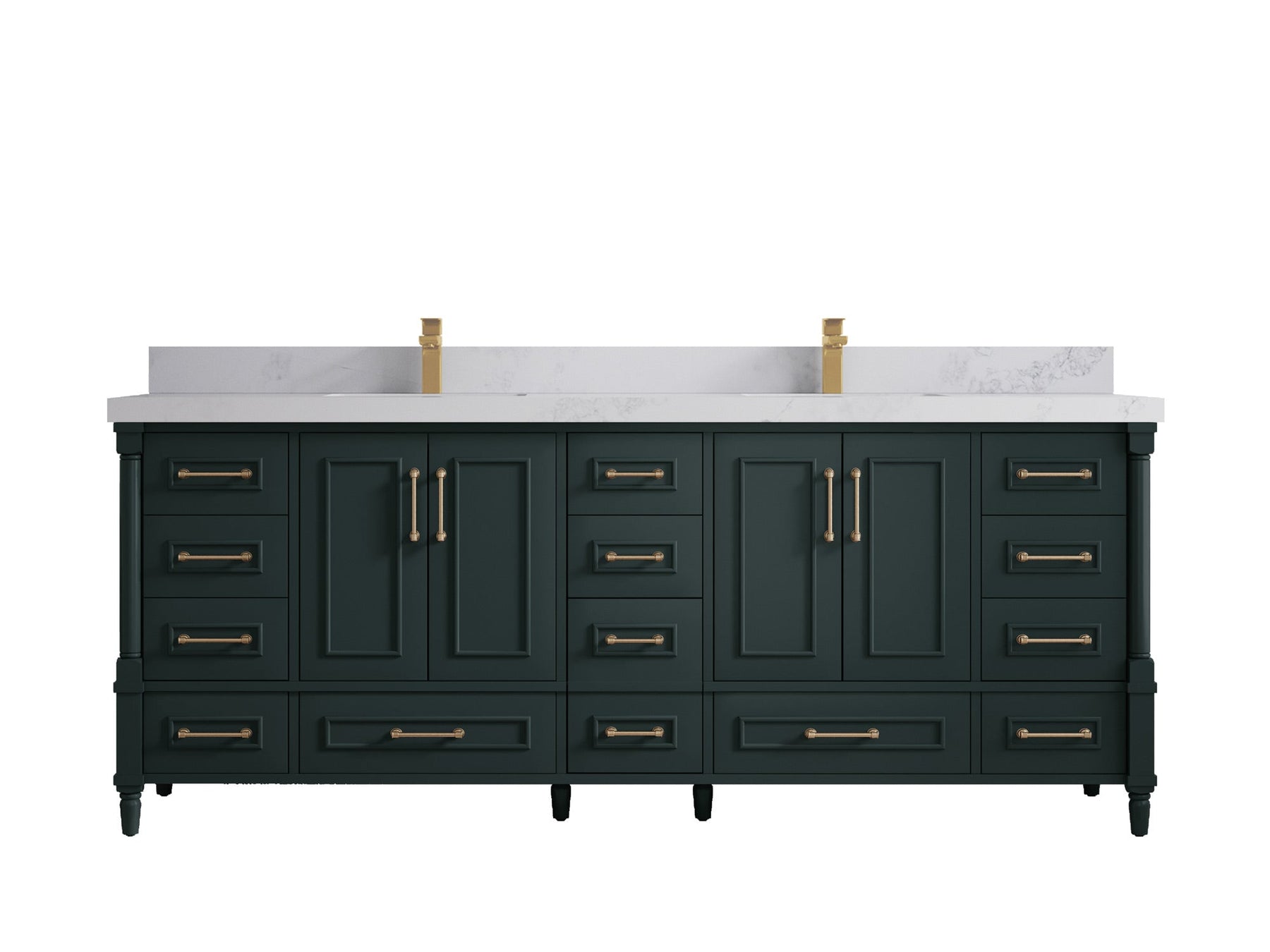 Aberdeen 84 in. W x 22 in. D Double Sink Bathroom Vanity | Dark Forest Green