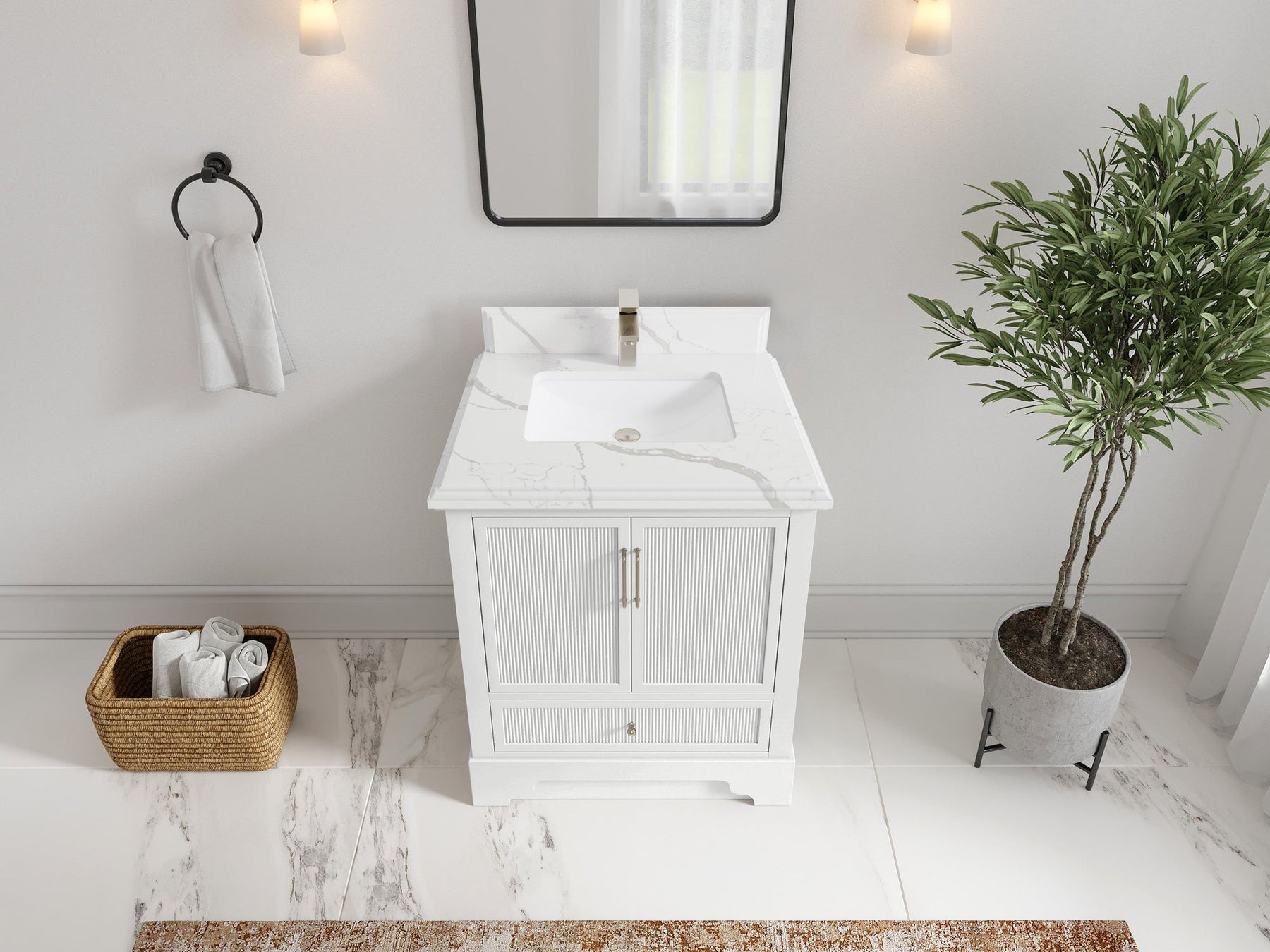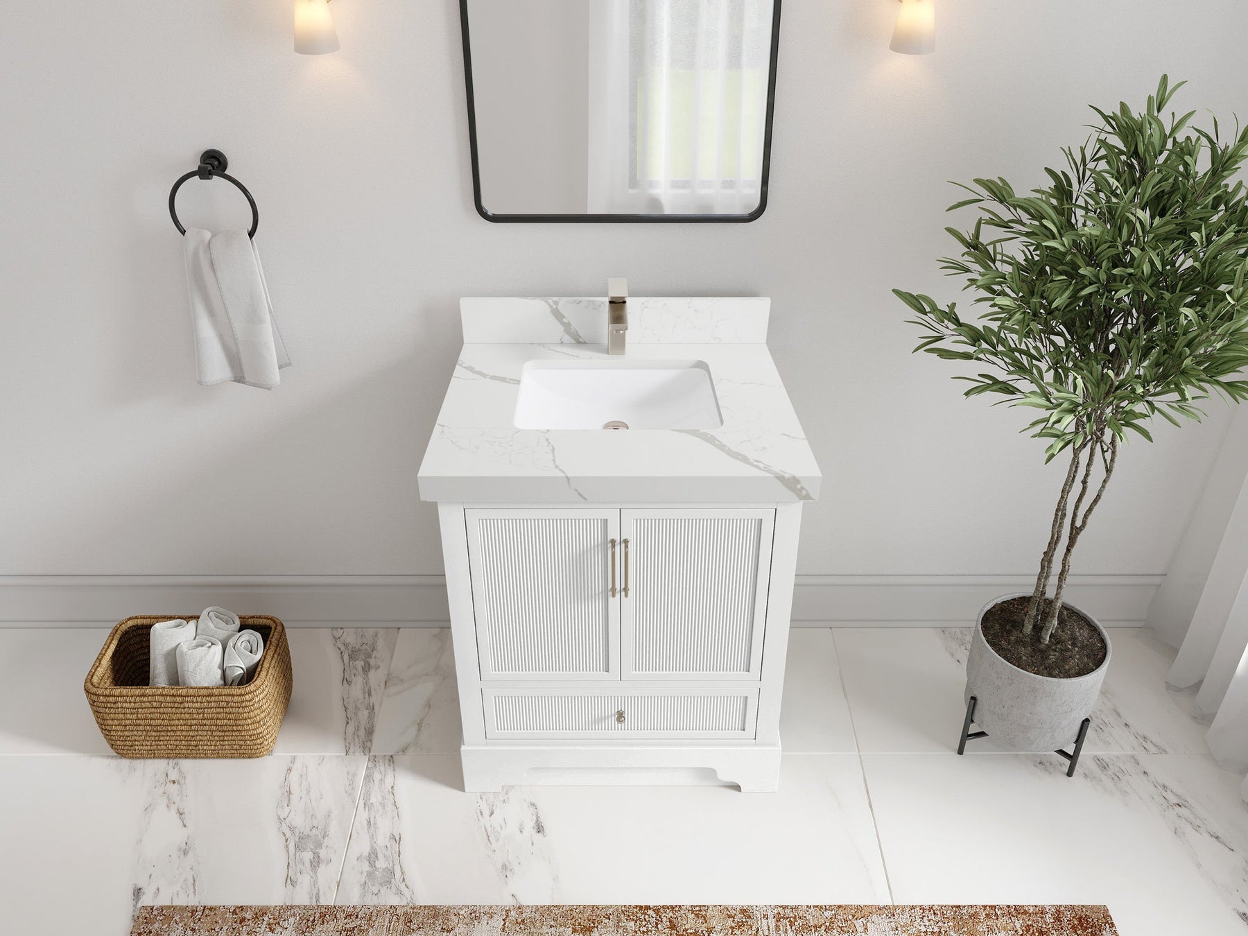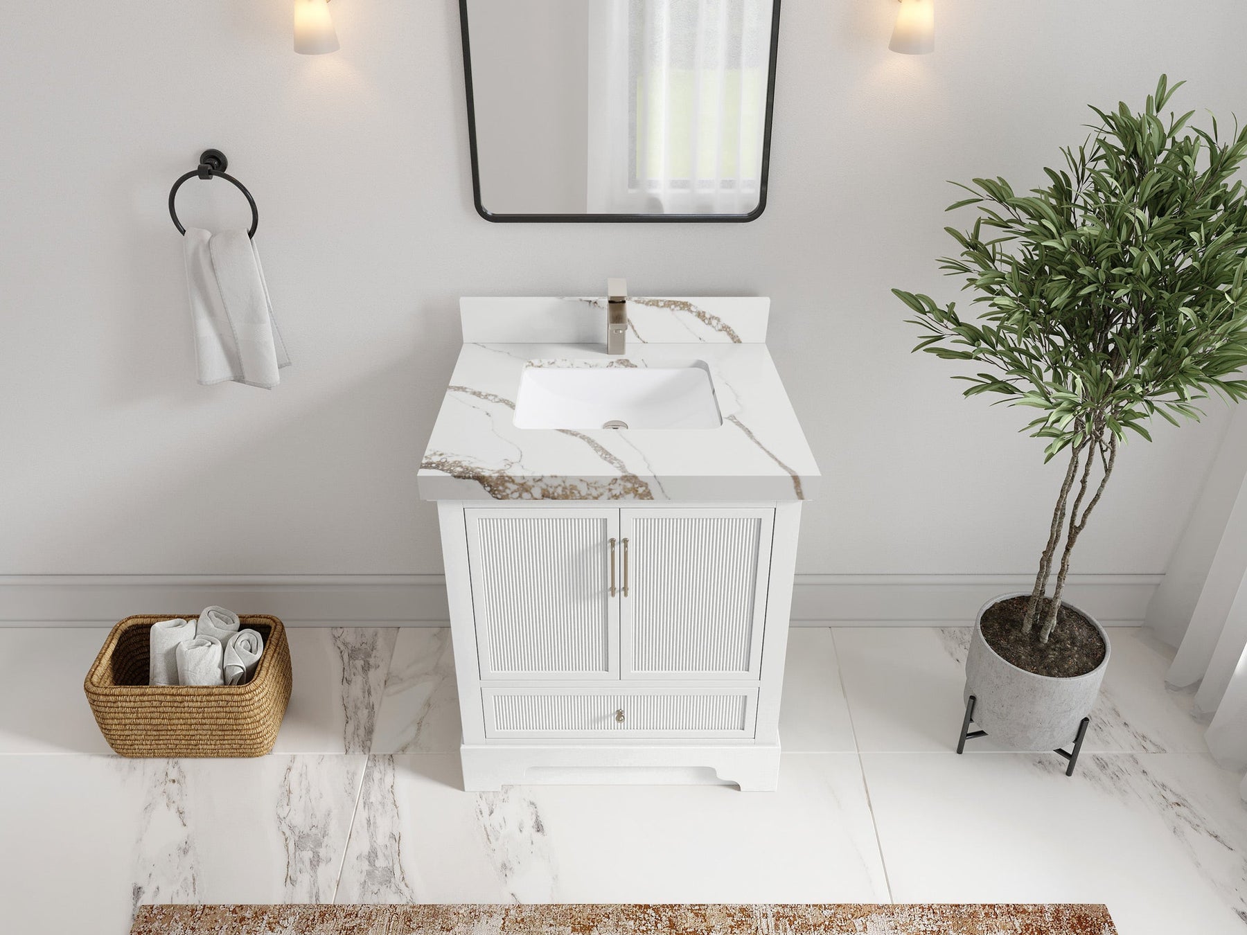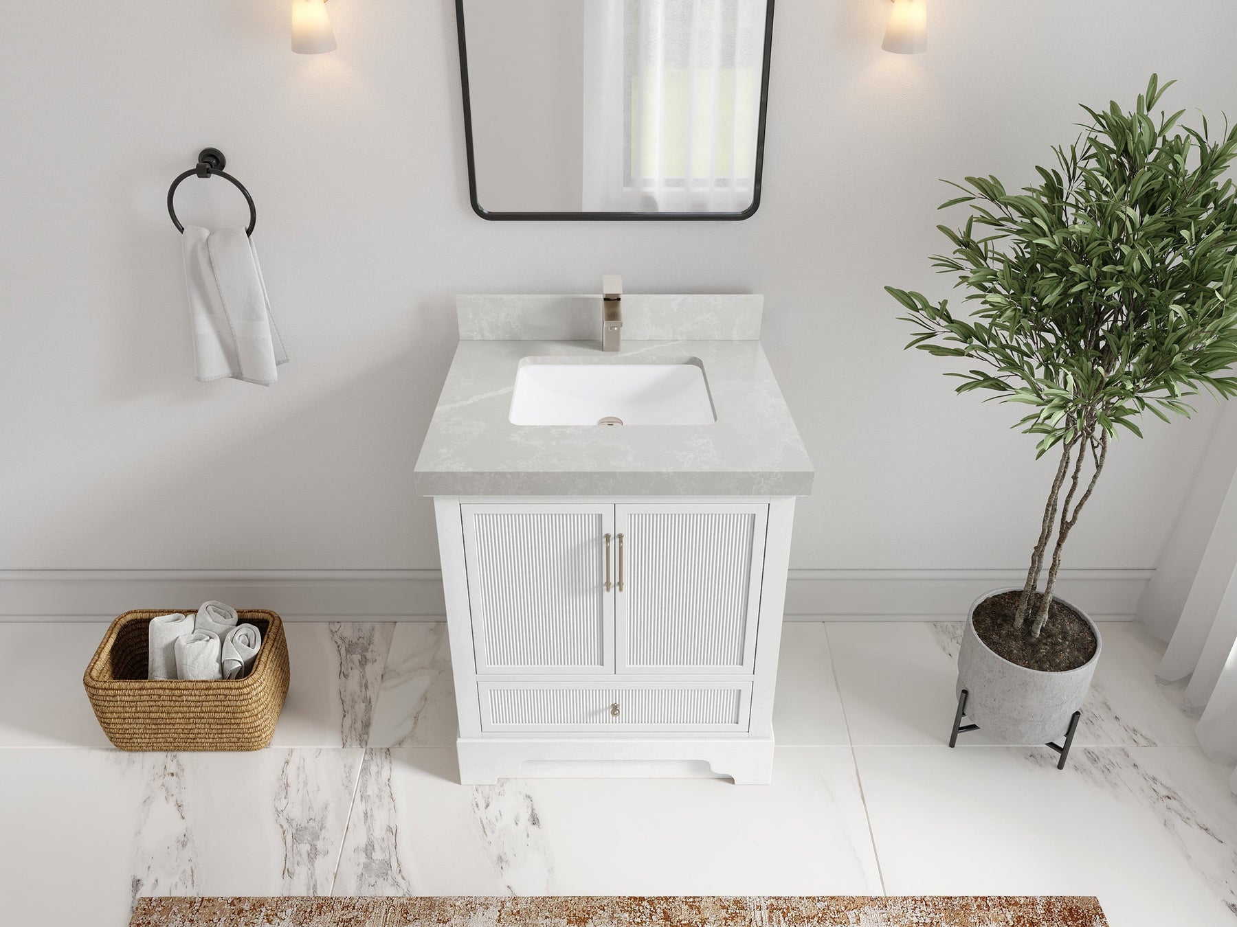 Faucet Hole(S): Comes with Single Faucet, 8 (in.) Widespread Faucet, Wall mount Faucets - Only Available for White Quartz and Carrara Quartz. (PLEASE ADD THIS CONFIGURATION UNDER COUNTERTOPS SECTION )