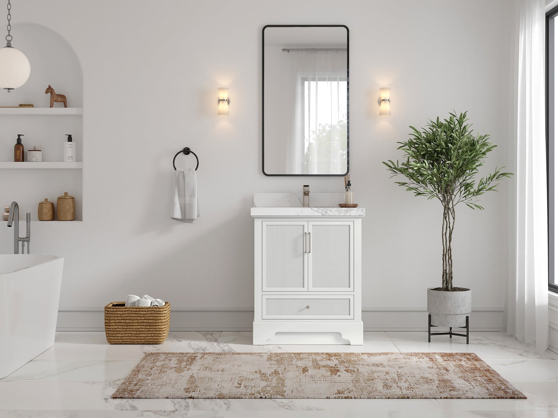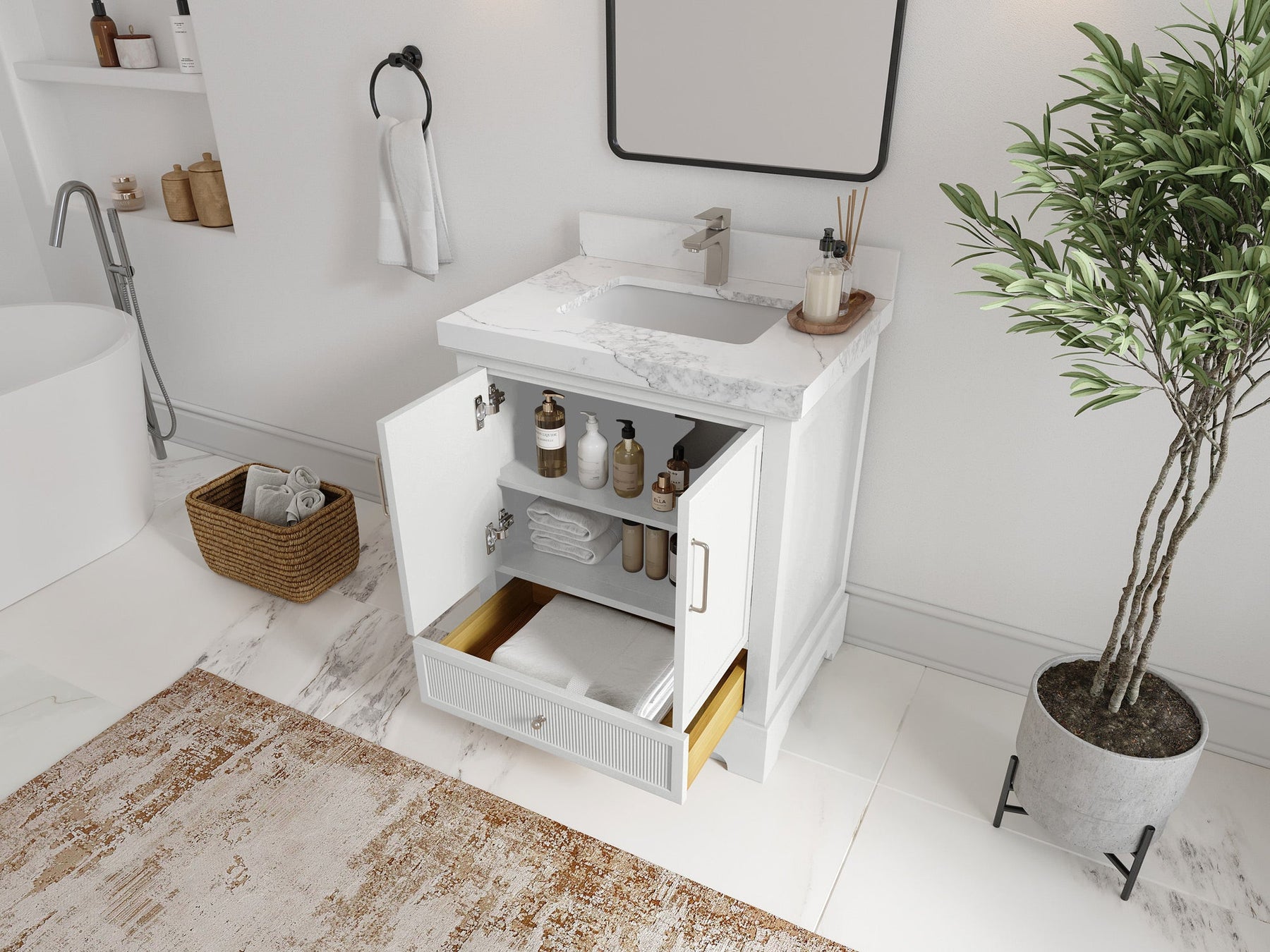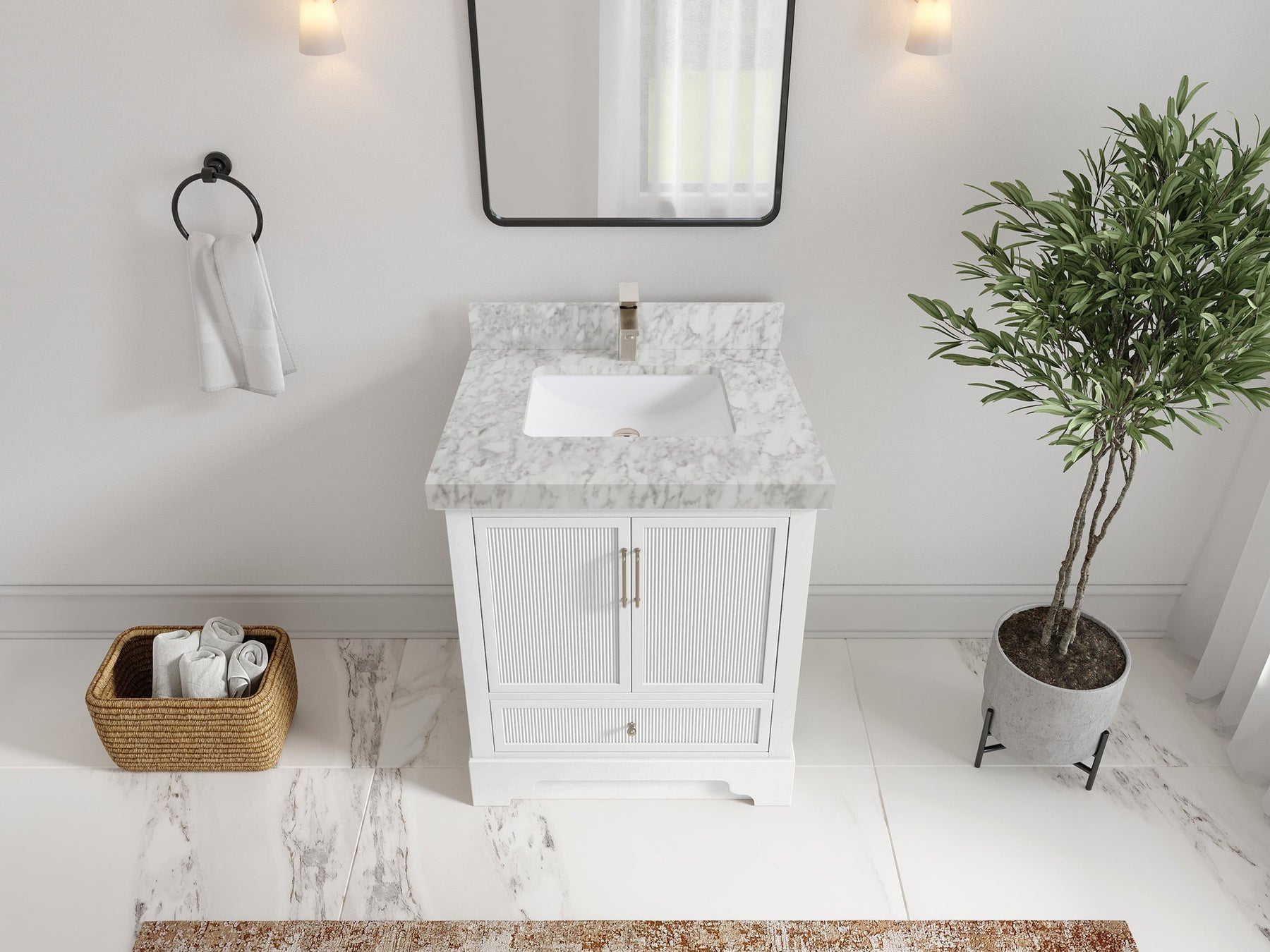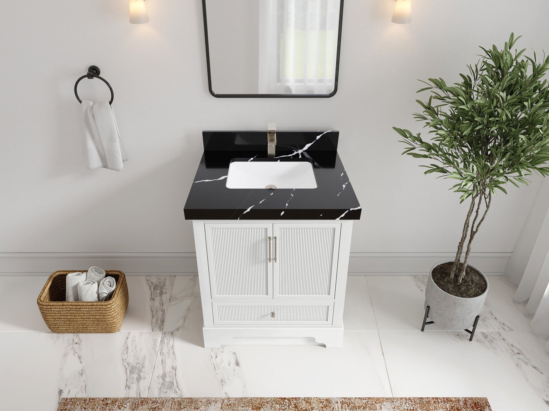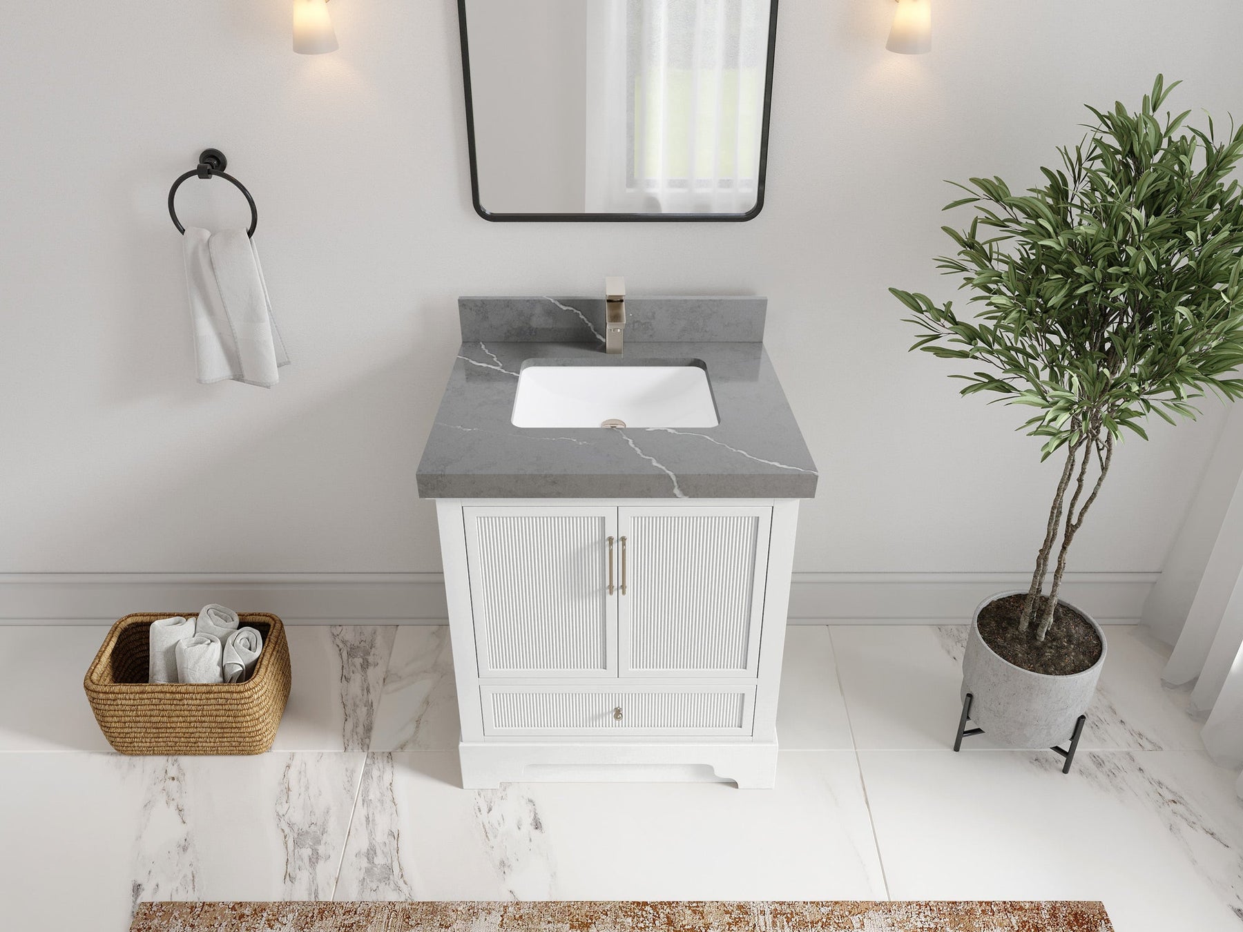 Faucet Hole(S): Comes with Single Faucet, 8 (in.) Widespread Faucet, Wall mount Faucets - Only Available for White Quartz and Carrara Quartz. (PLEASE ADD THIS CONFIGURATION UNDER COUNTERTOPS SECTION )