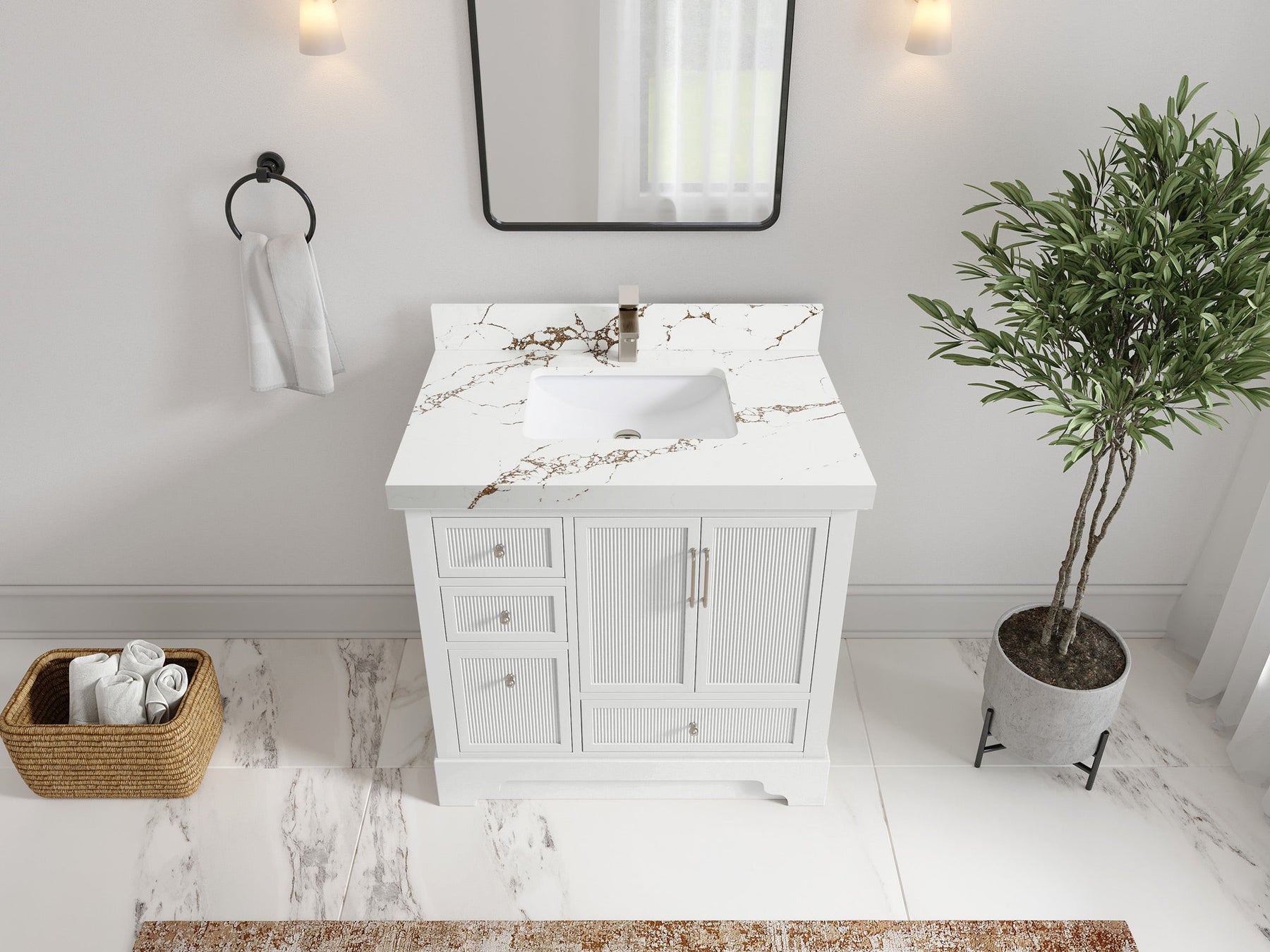 2. Durable Countertop Options - Choose from our range of bathroom vanities with quartz countertop to perfectly match your bathroom's style and color scheme. Our countertops are designed to withstand daily use and are resistant to scratches, stains, and heat.