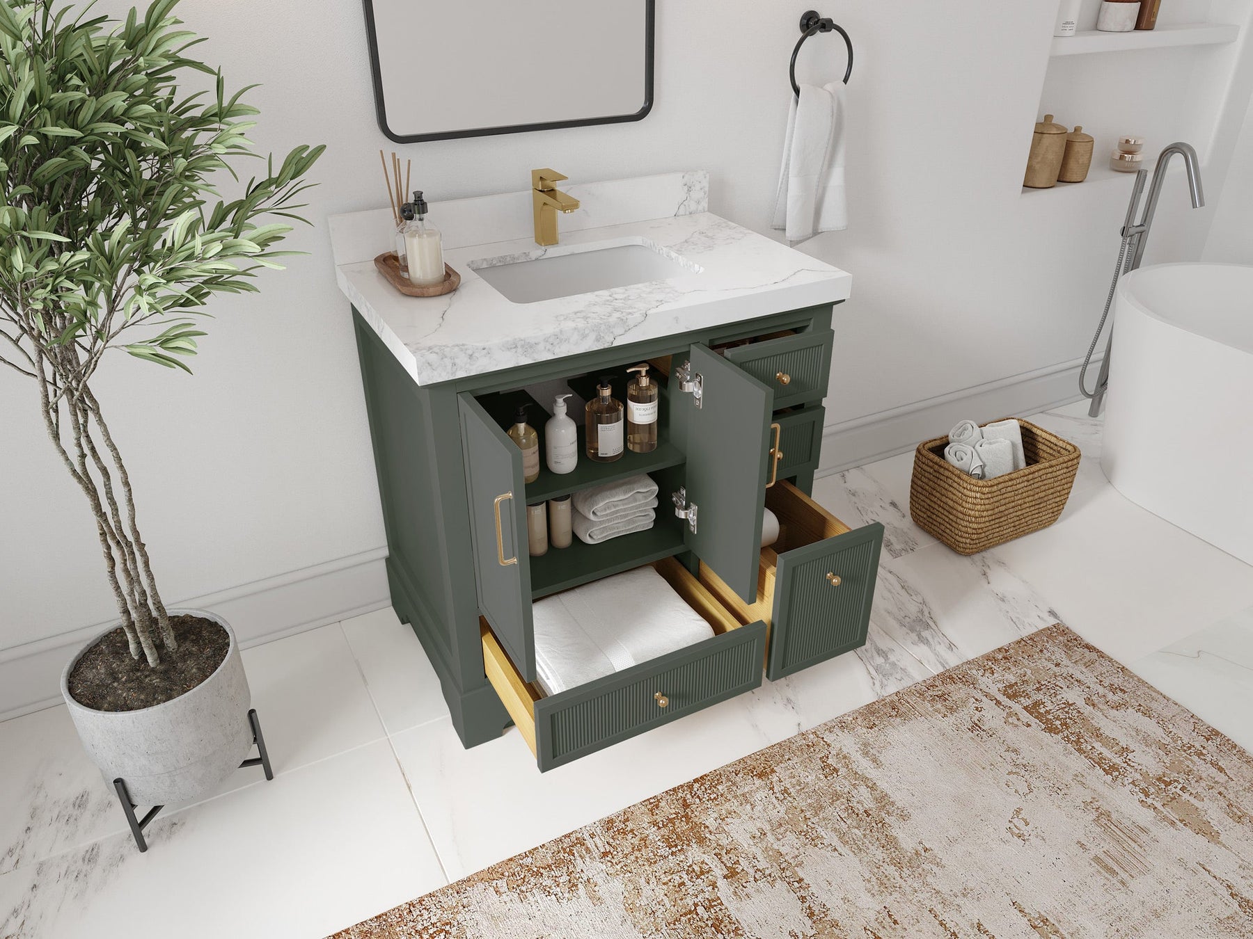 2. Durable Countertop Options - Choose from our range of bathroom vanities with quartz countertop to perfectly match your bathroom's style and color scheme. Our countertops are designed to withstand daily use and are resistant to scratches, stains, and heat.