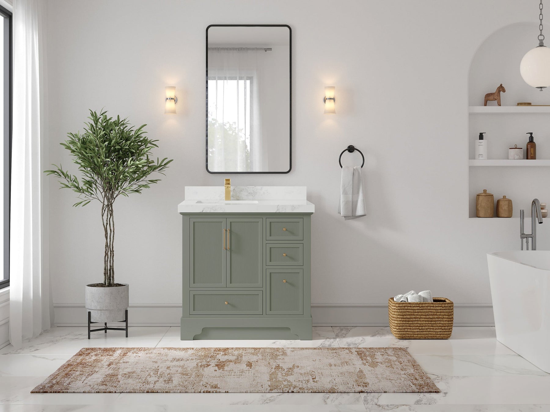 Alys 36 in. W x 22 in. D Left Offset Sink Bathroom Vanity | Evergreen