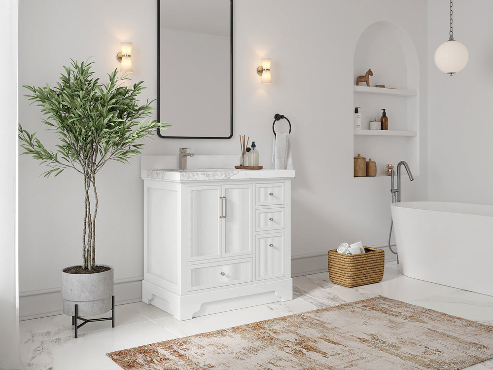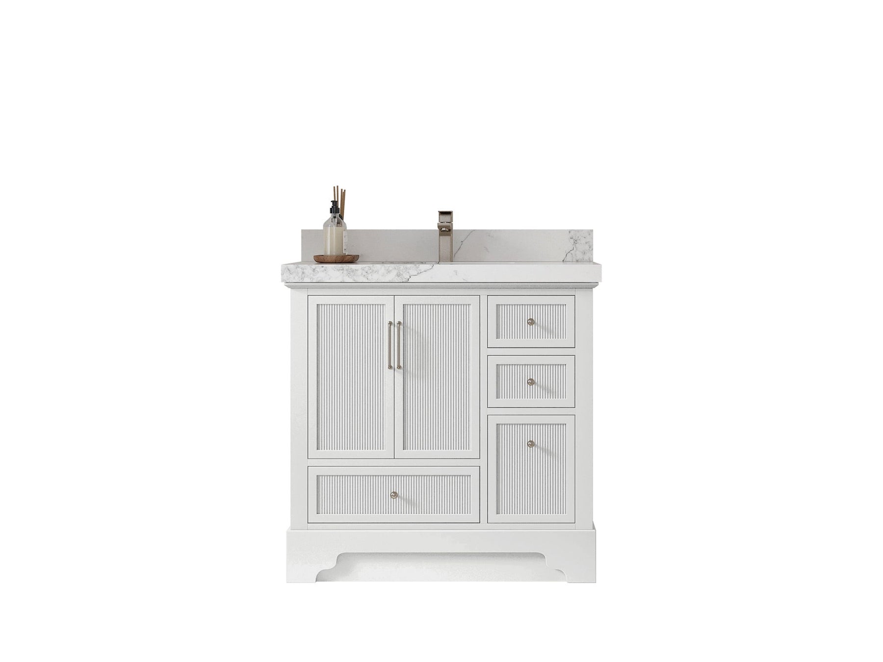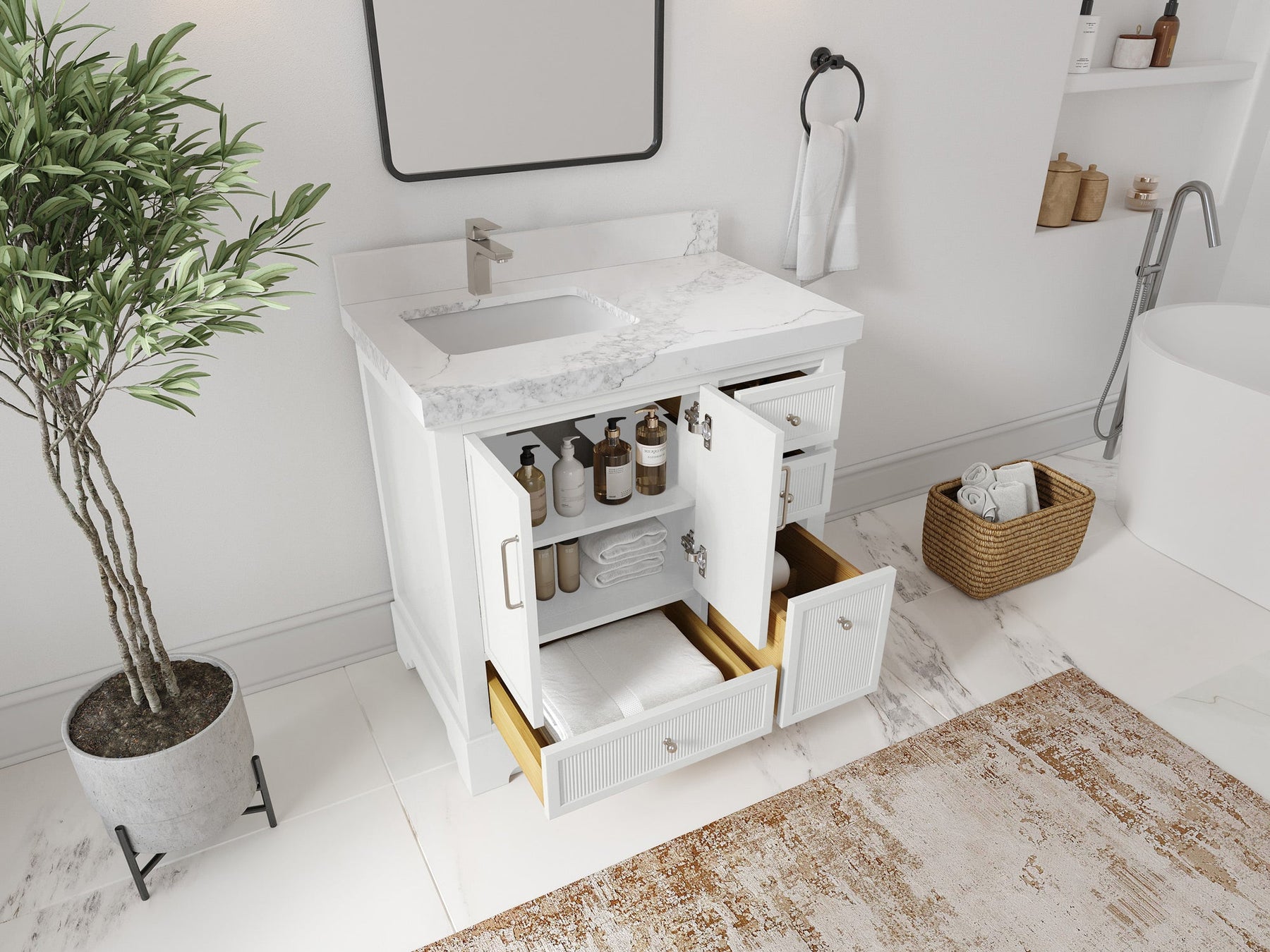 • 2. Durable Countertop Options - Choose from our range of bathroom vanities with quartz countertop to perfectly match your bathroom's style and color scheme. Our countertops are designed to withstand daily use and are resistant to scratches, stains, and heat.