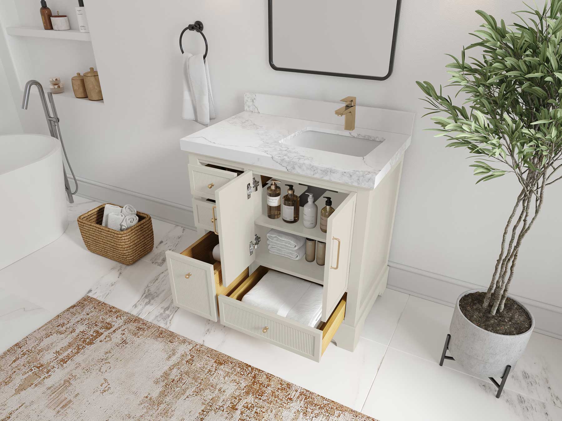 2. Durable Countertop Options - Choose from our range of bathroom vanities with quartz countertop to perfectly match your bathroom's style and color scheme. Our countertops are designed to withstand daily use and are resistant to scratches, stains, and heat.