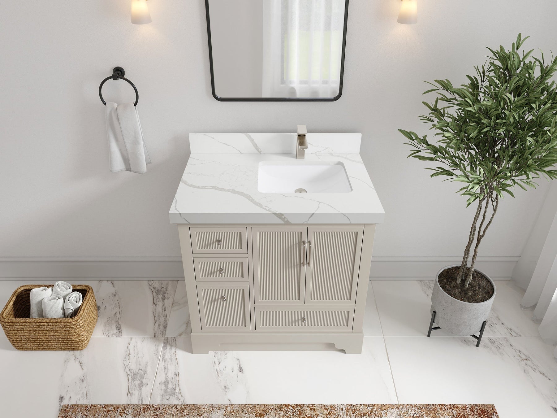 • 2. Durable Countertop Options - Choose from our range of bathroom vanities with quartz countertop to perfectly match your bathroom's style and color scheme. Our countertops are designed to withstand daily use and are resistant to scratches, stains, and heat.