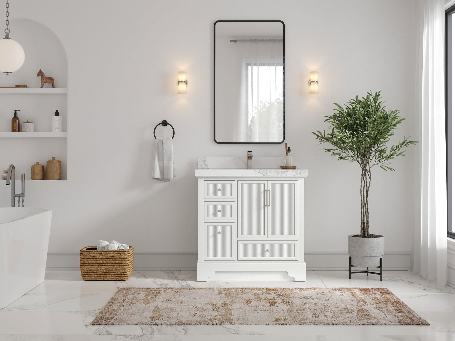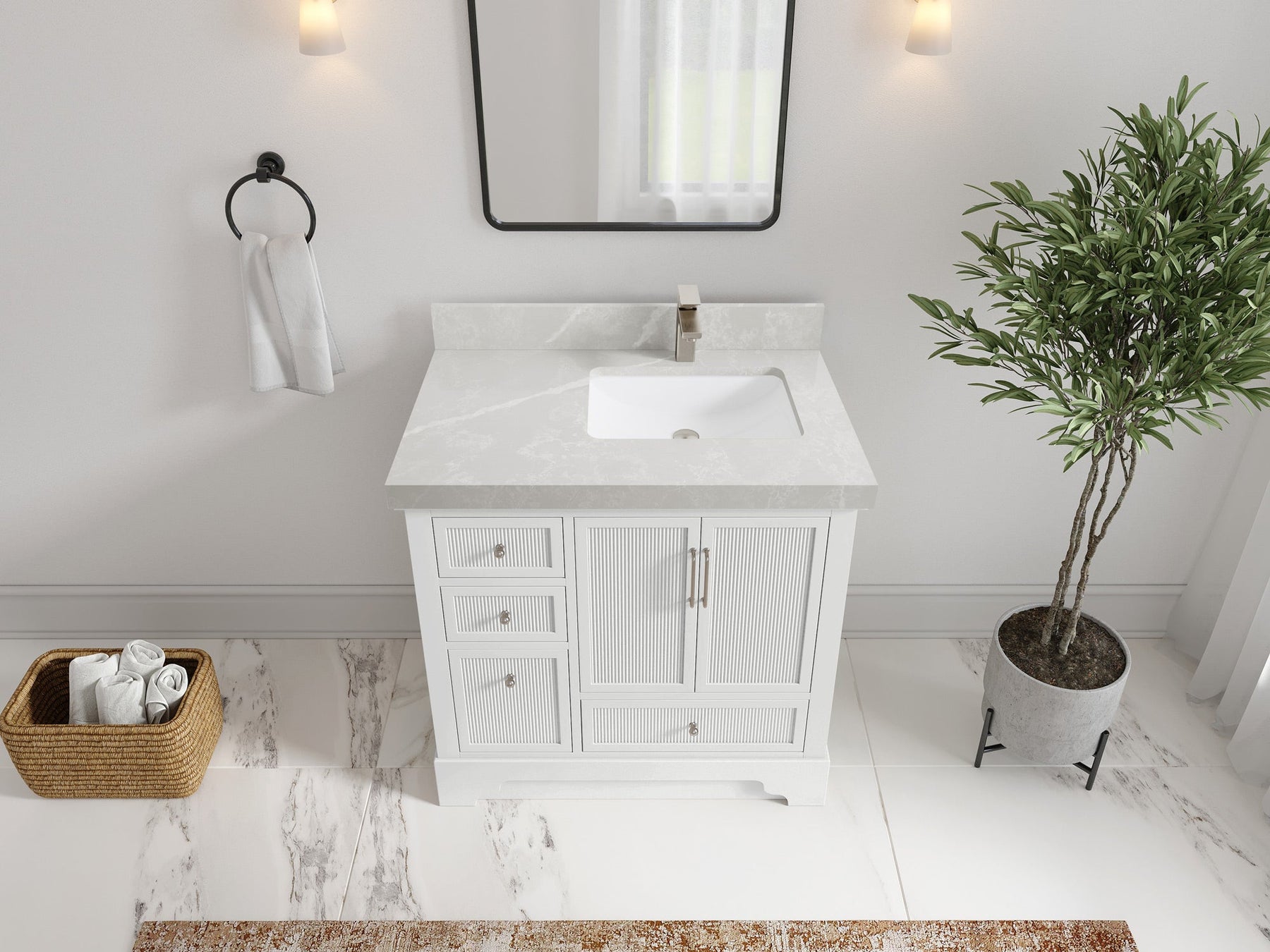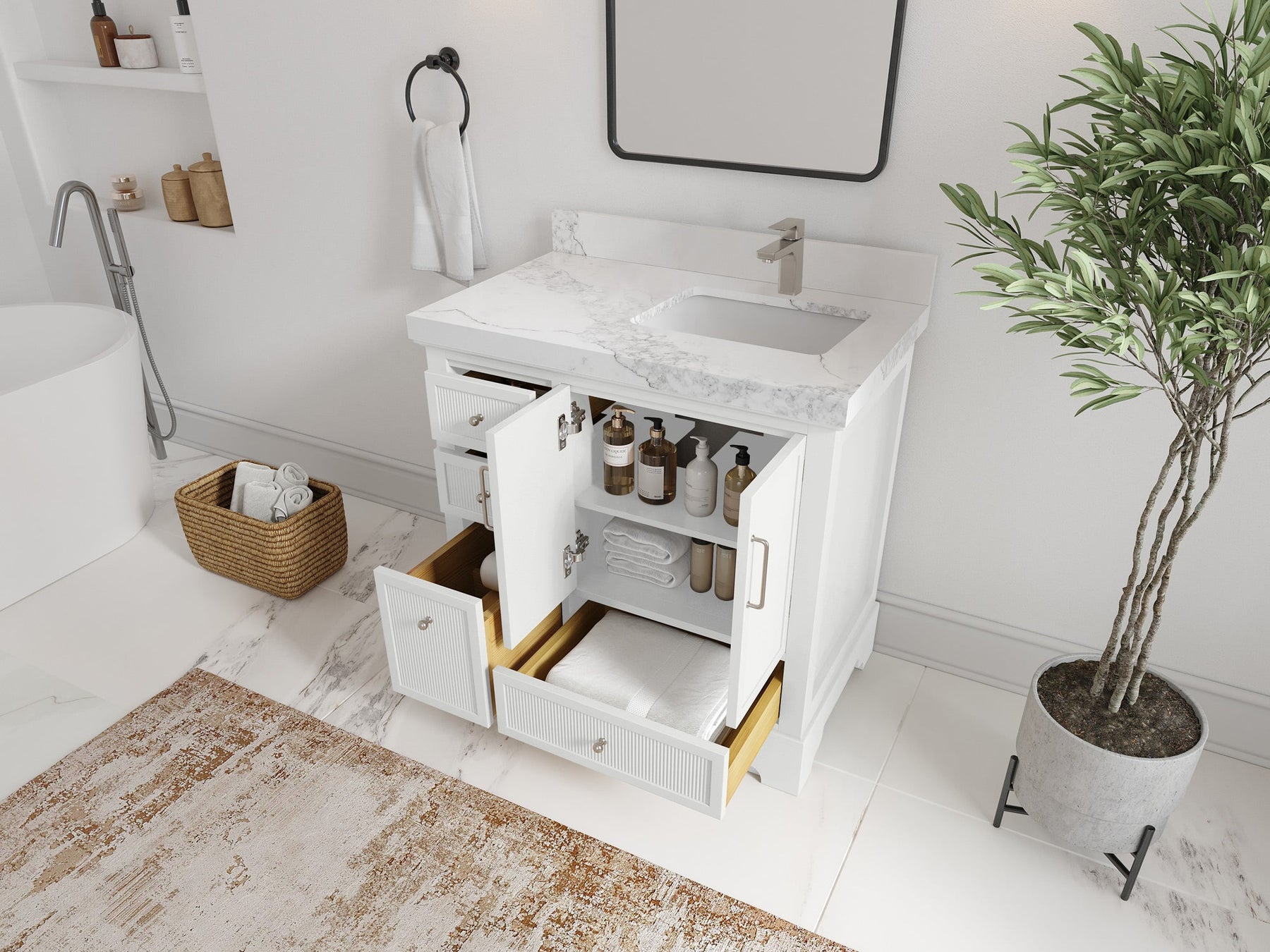 • 2. Durable Countertop Options - Choose from our range of bathroom vanities with quartz countertop to perfectly match your bathroom's style and color scheme. Our countertops are designed to withstand daily use and are resistant to scratches, stains, and heat.