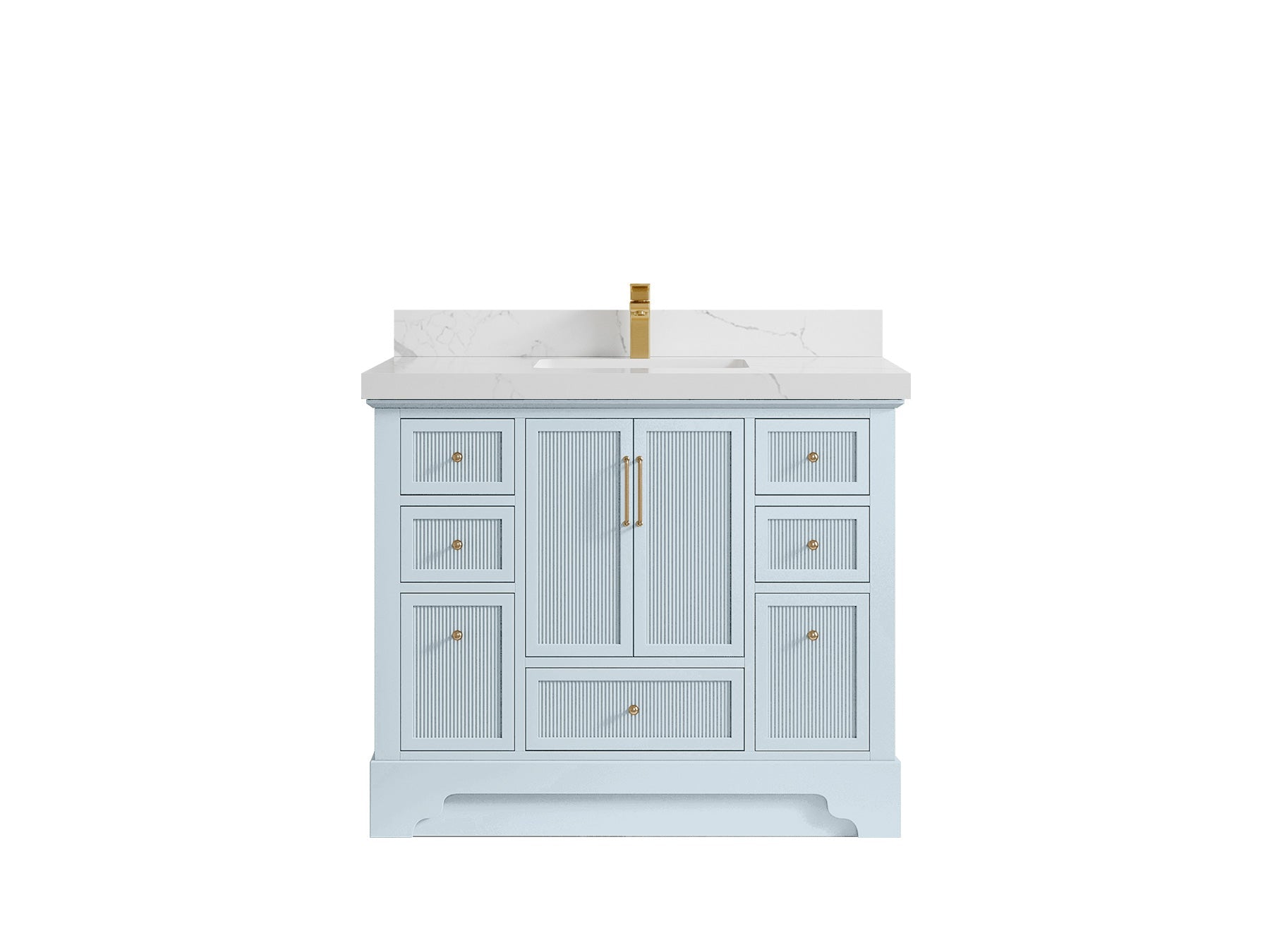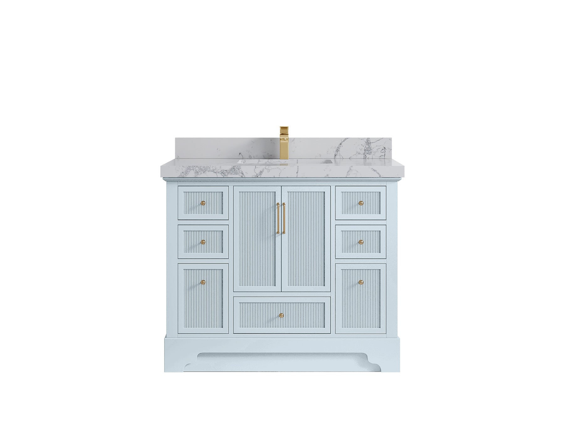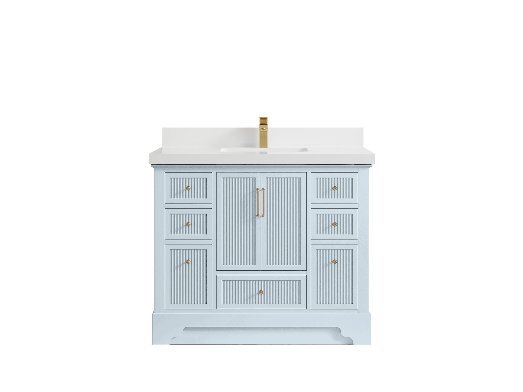 Faucet Hole(S): Comes with Single Faucet, 8 (in.) Widespread Faucet, Wall mount Faucets - Only Available for White Quartz and Carrara Quartz. (PLEASE ADD THIS CONFIGURATION UNDER COUNTERTOPS SECTION )