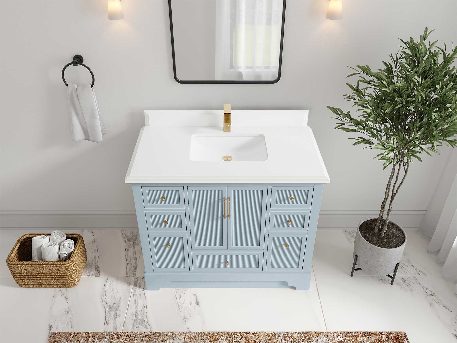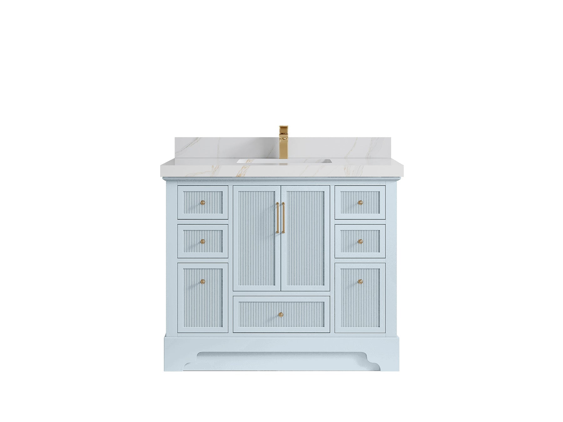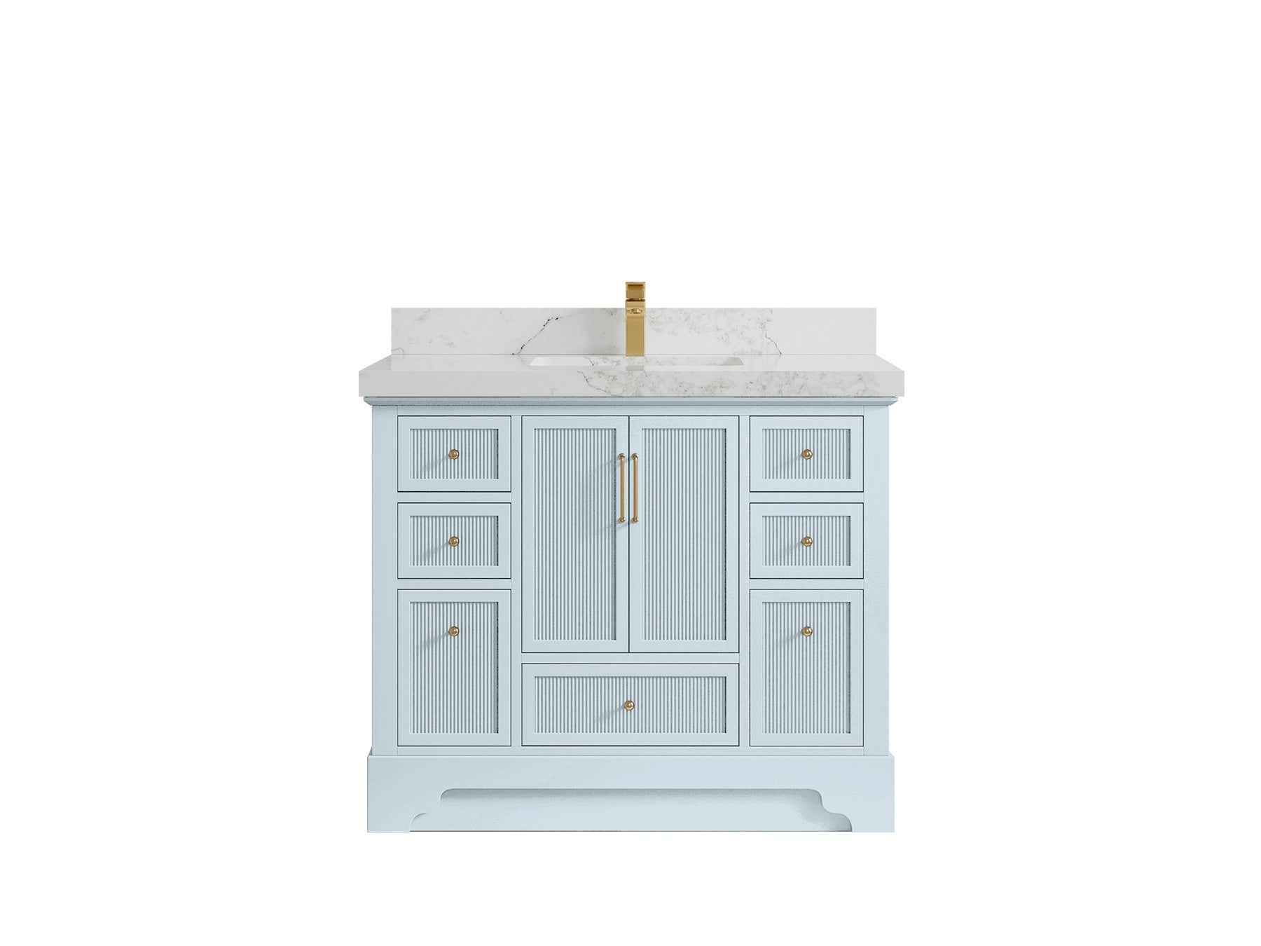 Faucet Hole(S): Comes with Single Faucet, 8 (in.) Widespread Faucet, Wall mount Faucets - Only Available for White Quartz and Carrara Quartz. (PLEASE ADD THIS CONFIGURATION UNDER COUNTERTOPS SECTION )