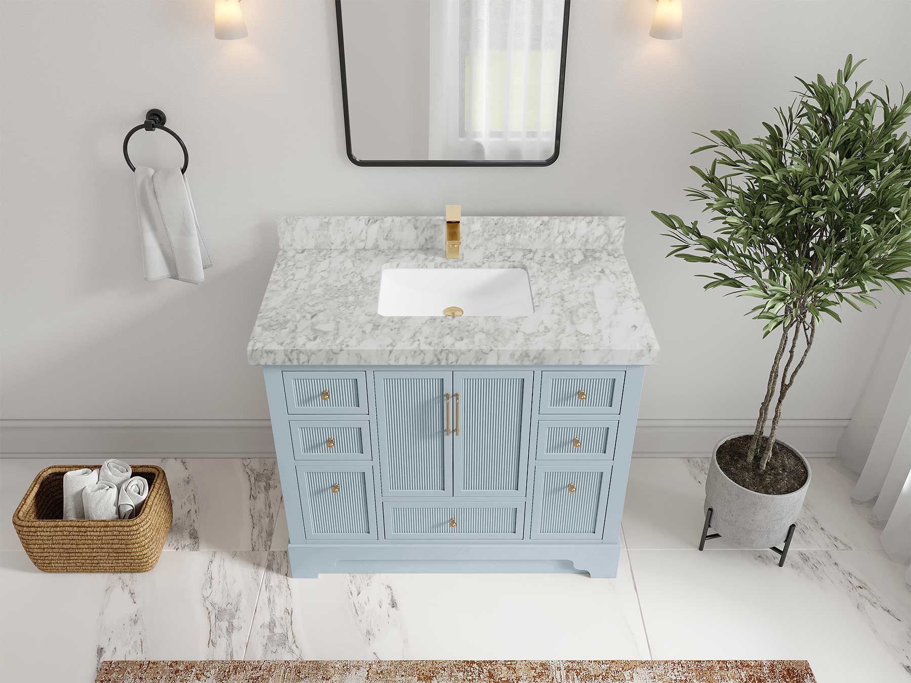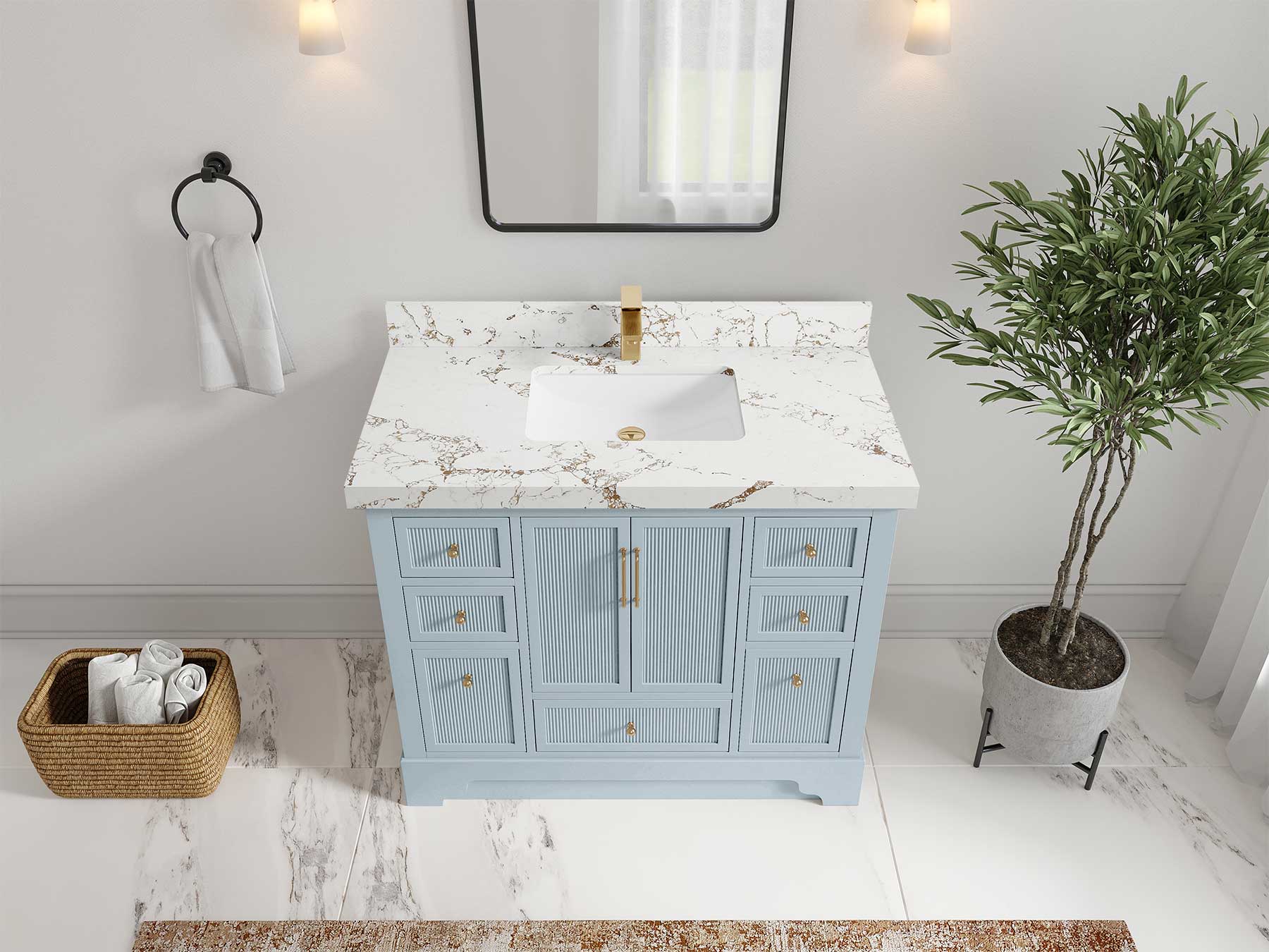 Vanity Countertops options: For Calacatta Laza Quartz, Empira White Quartz, Pure White Quartz, Palissandro Quartz we have 2 options Straight-Mitered Edge & Double Cove Edge; For Calacatta Nuvo Quartz, Carrara Marble, Carrara Quartz, Piatra Gray Quartz, Pearl Light Gray Quartz, Calacatta Black Quartz, Calacatta Gold Quartz, Calacatta Sienna Quartz, Calacatta Poanazzo Quartz, Venatino Quartz, Viola Brown Quartz, Viola Gold Quartz, Viola Night Quartz, Viola Biagio Quartz, Berkshire Brass Quartz, Frosty Carrara Quartz, Onyx Quartz we only have Straight - Mitered Edge option.