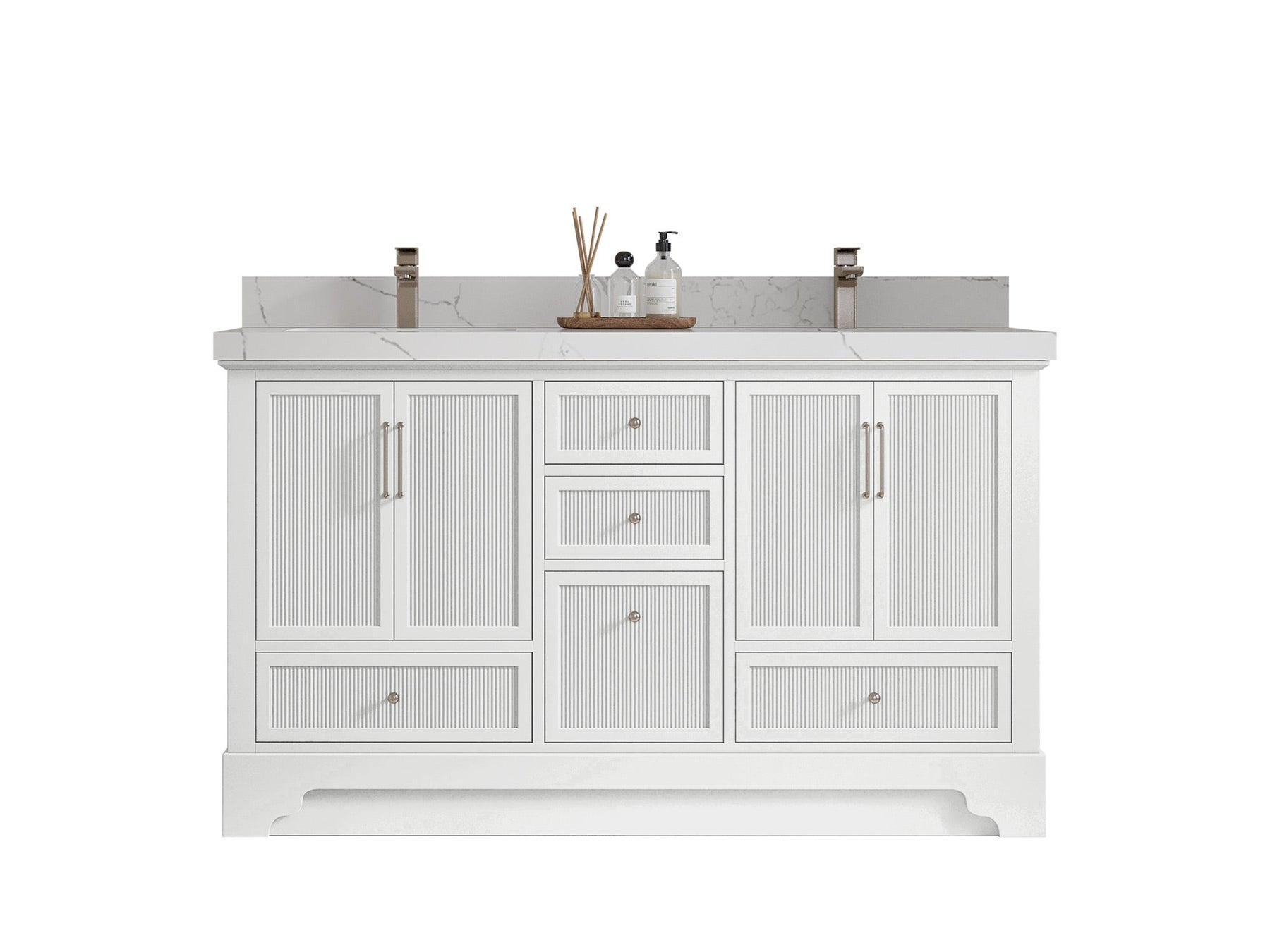 Faucet Hole(S): Comes with Single Faucet, 8 (in.) Widespread Faucet, Wall mount Faucets - Only Available for White Quartz and Carrara Quartz. (PLEASE ADD THIS CONFIGURATION UNDER COUNTERTOPS SECTION)