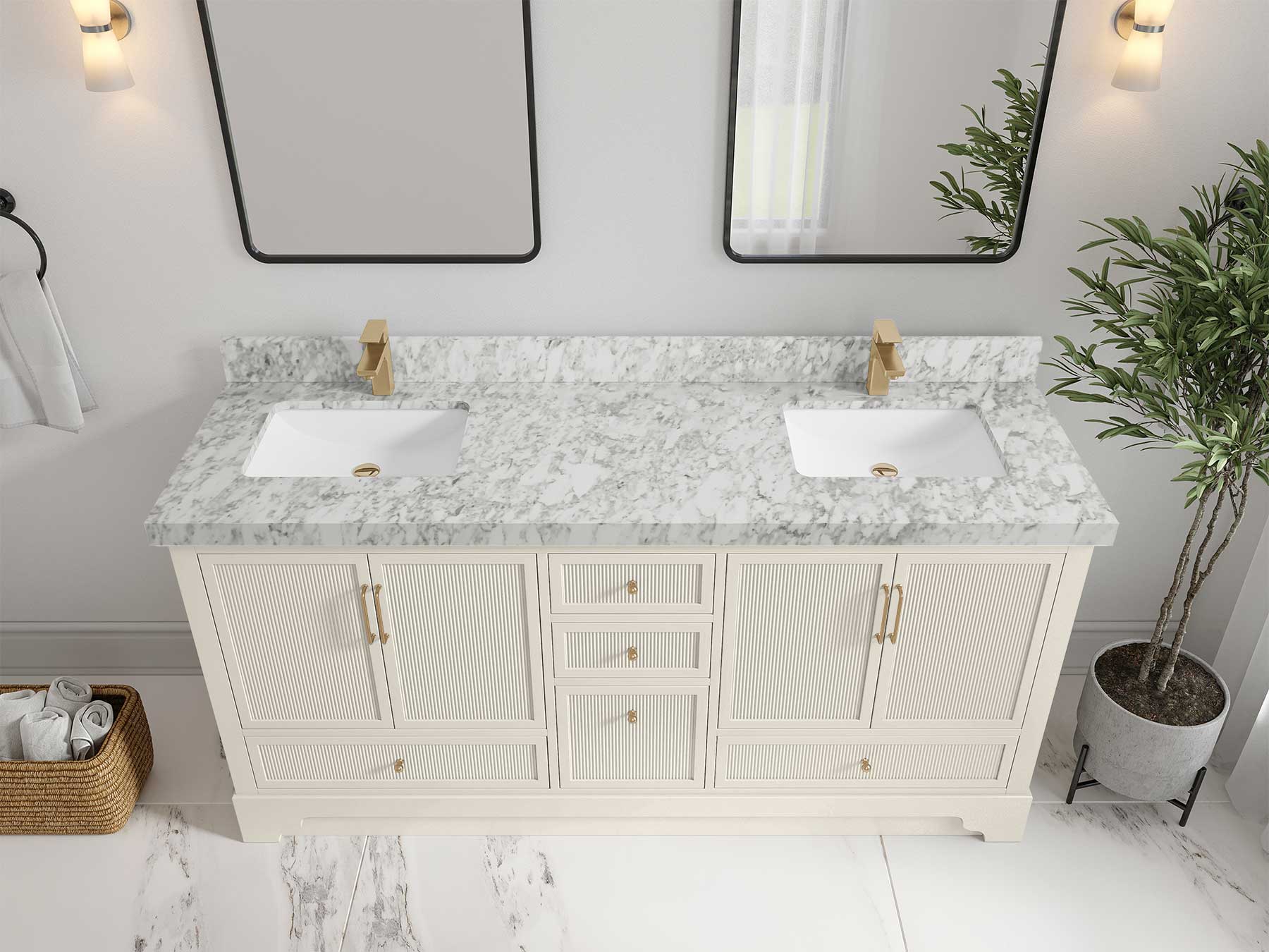 Vanity Countertops options: For Calacatta Laza Quartz, Empira White Quartz, Pure White Quartz, Palissandro Quartz we have 2 options Straight-Mitered Edge & Double Cove Edge; For Calacatta Nuvo Quartz, Carrara Marble, Carrara Quartz, Piatra Gray Quartz, Pearl Light Gray Quartz, Calacatta Black Quartz, Calacatta Gold Quartz, Calacatta Sienna Quartz, Calacatta Poanazzo Quartz, Venatino Quartz, Viola Brown Quartz, Viola Gold Quartz, Viola Night Quartz, Viola Biagio Quartz, Berkshire Brass Quartz, Frosty Carrara Quartz, Onyx Quartz we only have Straight - Mitered Edge option.