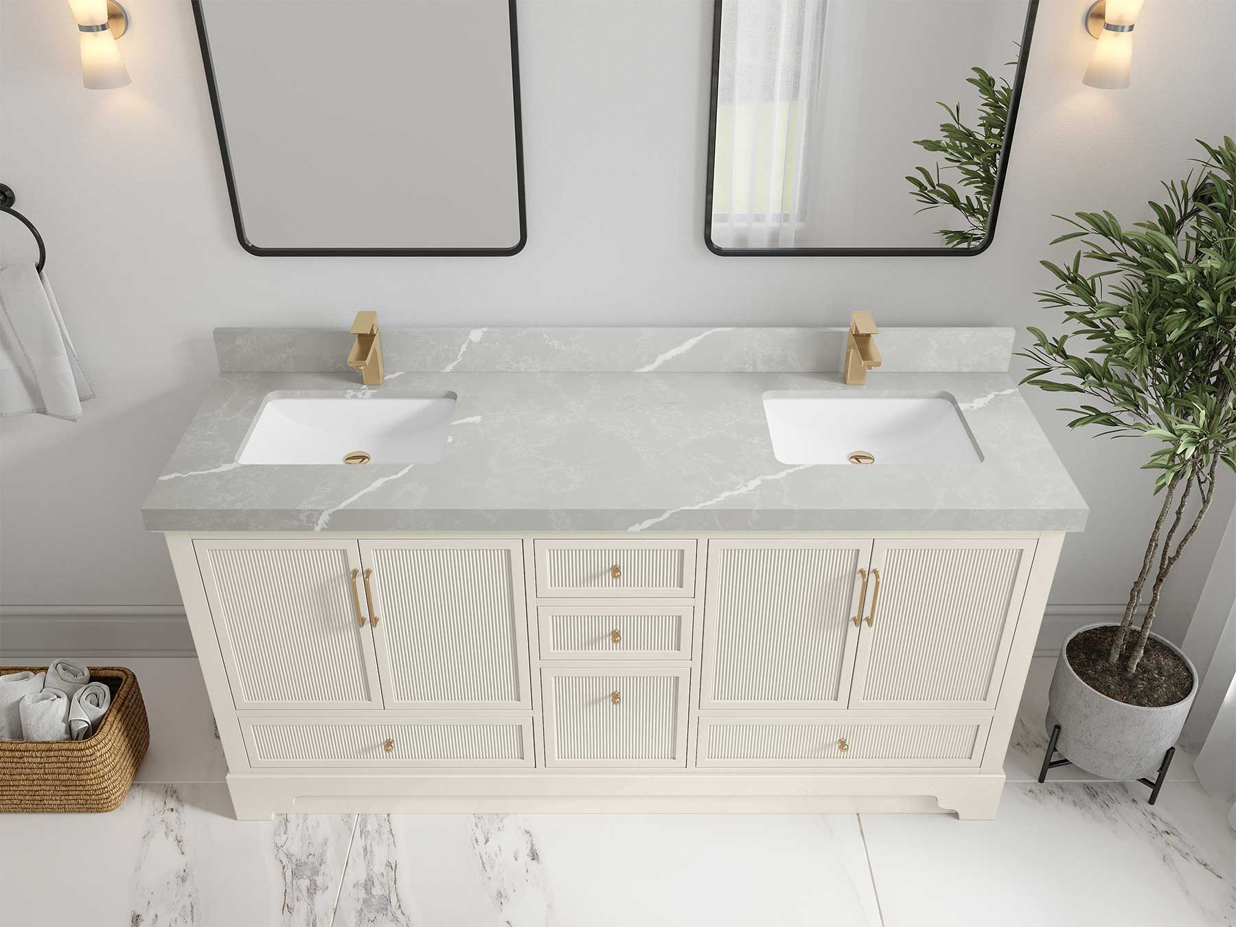Faucet Hole(S): Comes with Single Faucet, 8 (in.) Widespread Faucet, Wall mount Faucets - Only Available for White Quartz and Carrara Quartz. (PLEASE ADD THIS CONFIGURATION UNDER COUNTERTOPS SECTION )