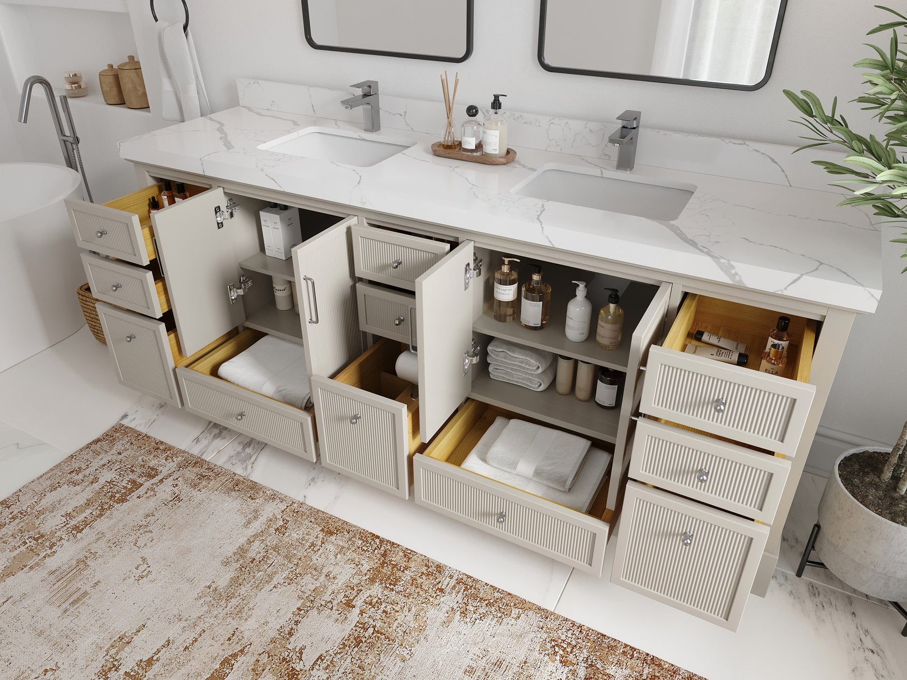4. Ample Storage Space - The Alys Vanity comes with spacious cabinet space to store all your bathroom essentials, including towels, toiletries, and more. The soft-close drawers and doors ensure that you can access your items easily and quietly.