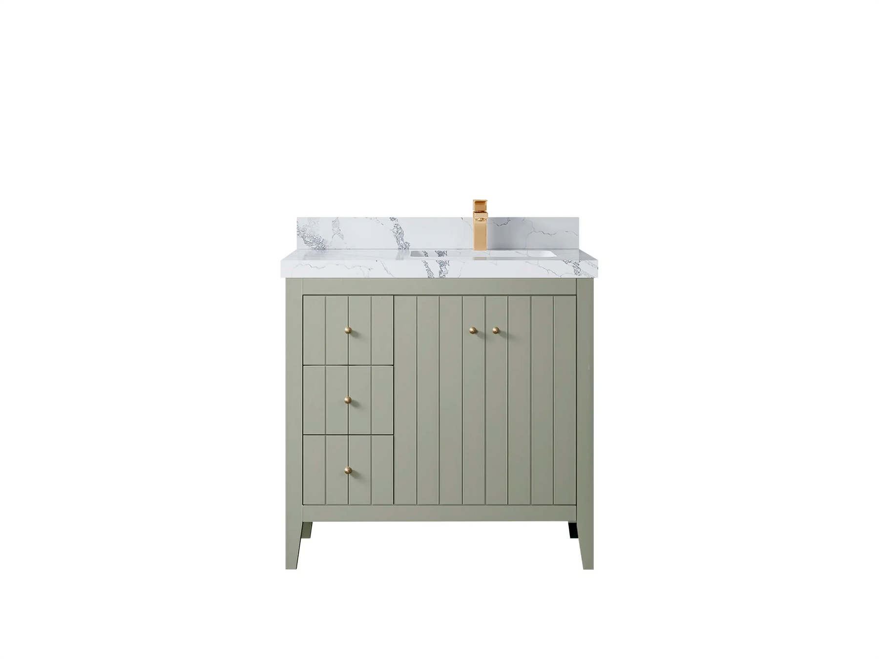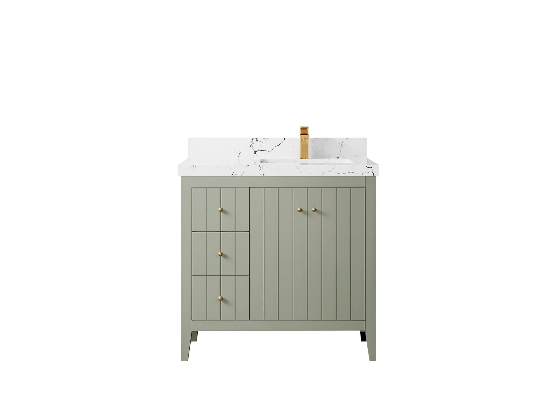 Atlanta 36 in. W x 22 in. D Right Offset Sink Bathroom Vanity | Evergreen