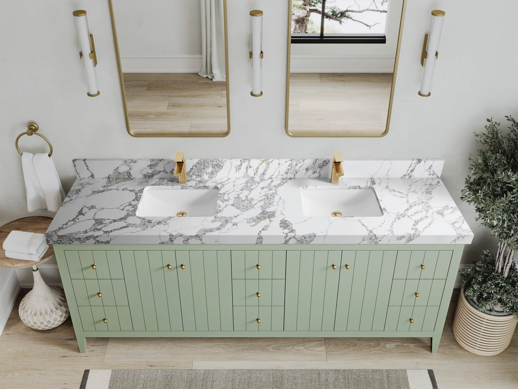 Vanity Countertops options: For Calacatta Laza Quartz, Empira White Quartz, Pure White Quartz, Palissandro Quartz we have 2 options Straight-Mitered Edge and Double Cove Edge; For Calacatta Nuvo Quartz, Carrara Marble, Carrara Quartz, Piatra Gray Quartz, Pearl Light Gray Quartz, Calacatta Black Quartz, Calacatta Gold Quartz, Calacatta Sienna Quartz, Calacatta Poanazzo Quartz, Venatino Quartz, Viola Brown Quartz, Viola Gold Quartz, Viola Night Quartz, Viola Biagio Quartz, Berkshire Brass Quartz, Frosty Carrara Quartz, Onyx Quartz, Terrazzo Golden Dusk we have Straight - Mitered Edge option.