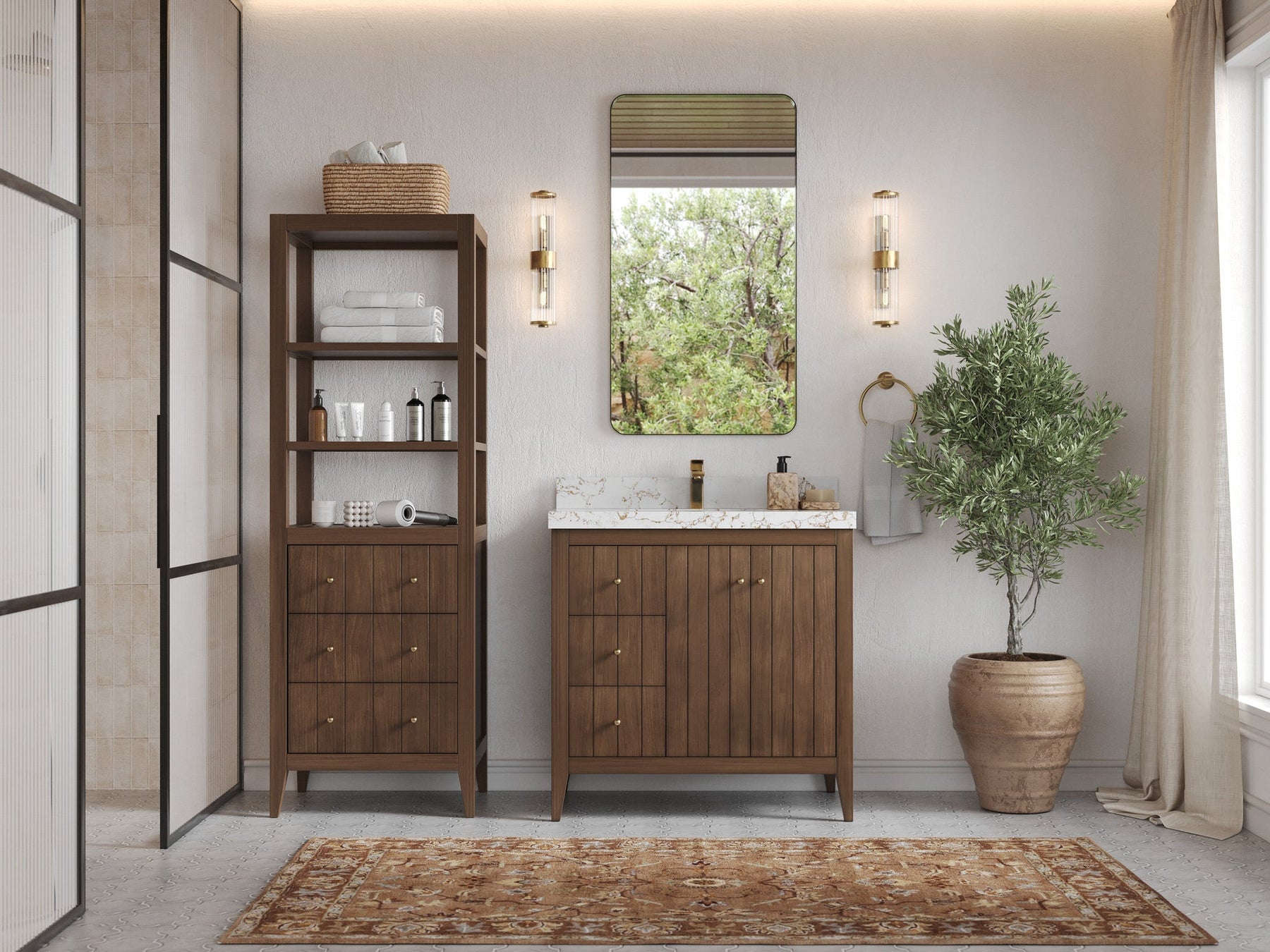 Complemented by sleek brass hardware, the fluted design elevates the Atlanta vanity from a mere functional piece to a work of art. The clean lines and precise craftsmanship ensure that this vanity not only stands out aesthetically but also provides durability and lasting appeal. With its combination of ample storage and stylish design, the Atlanta vanity is the perfect choice for those seeking to add a touch of luxury and elegance to their bathroom.