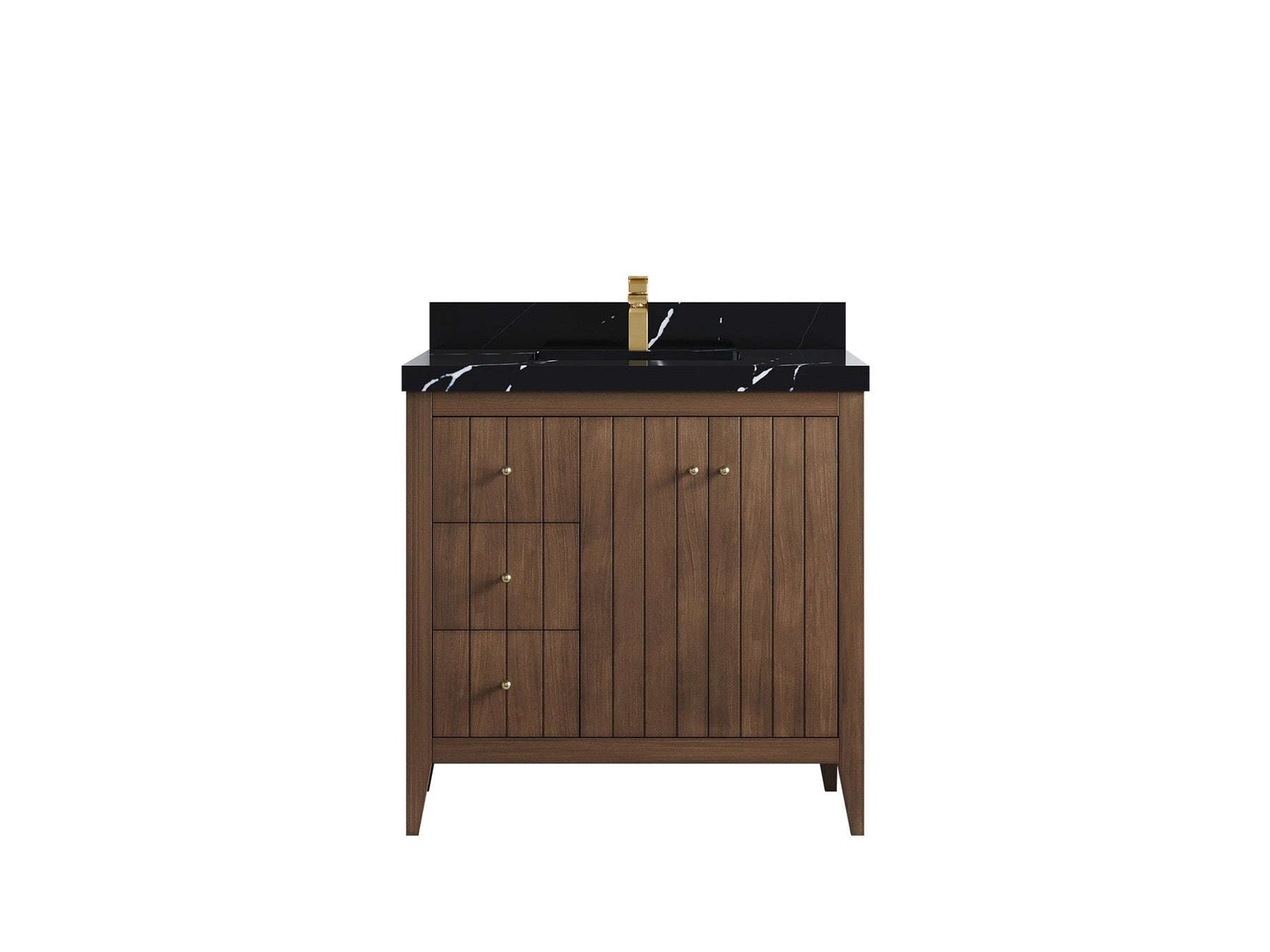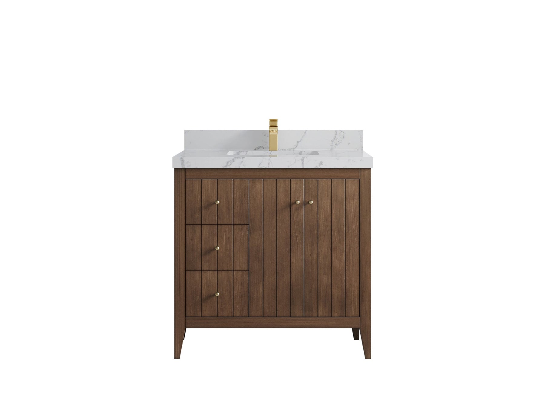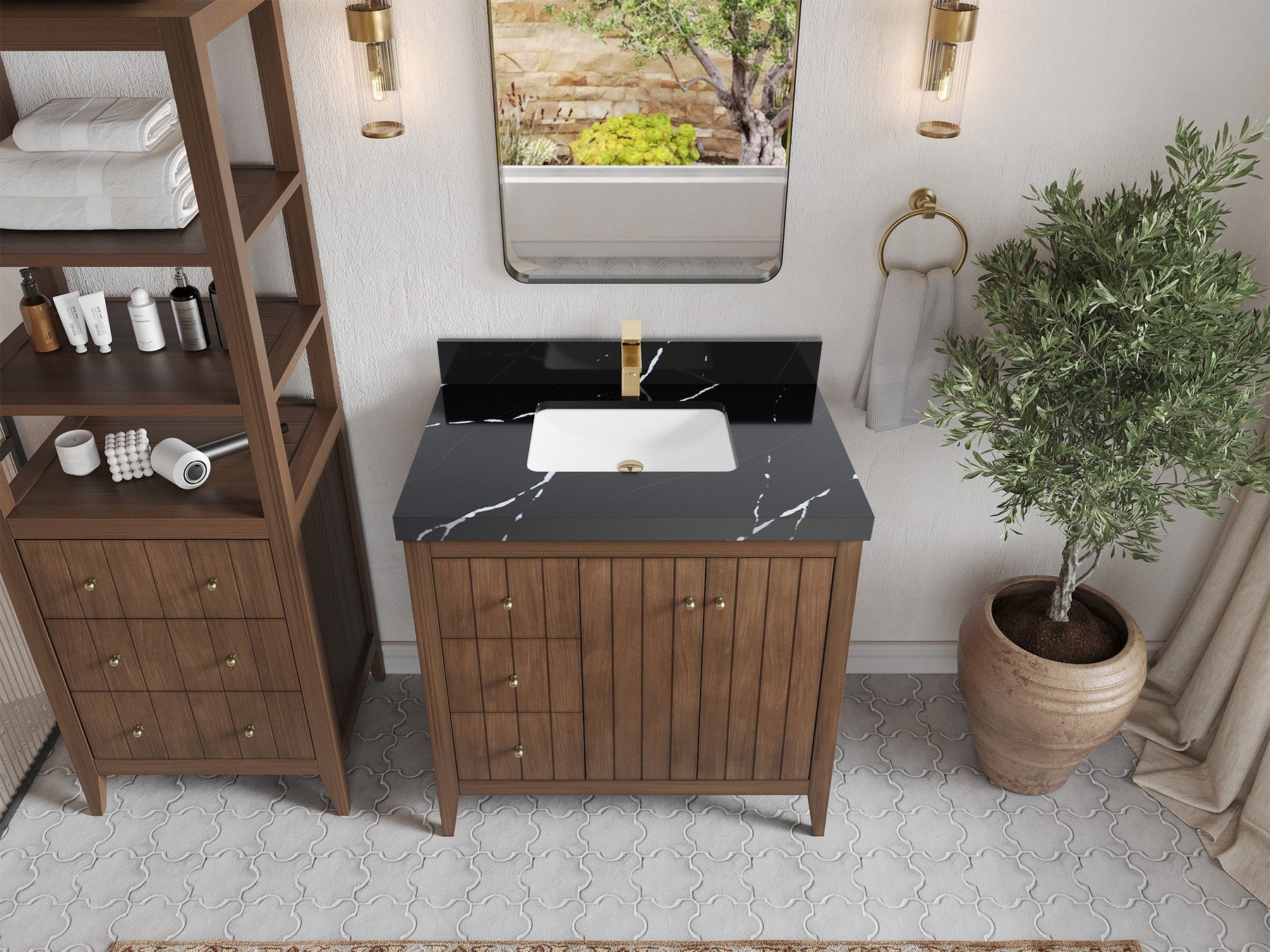 2. Fluted Panel Design: The vertical fluted design adds texture and depth to the vanity, offering a modern yet timeless aesthetic that enhances the visual appeal of any bathroom space.