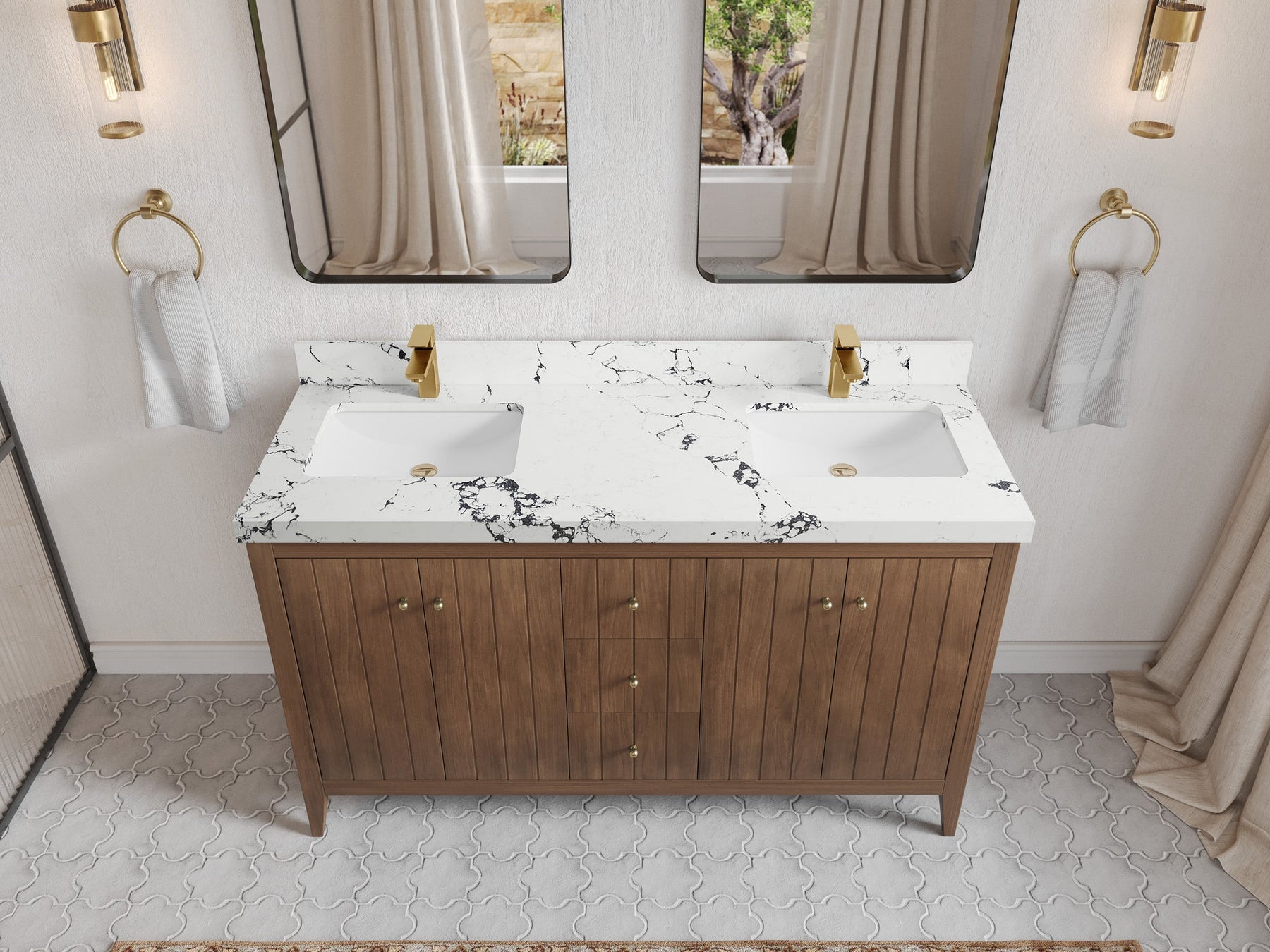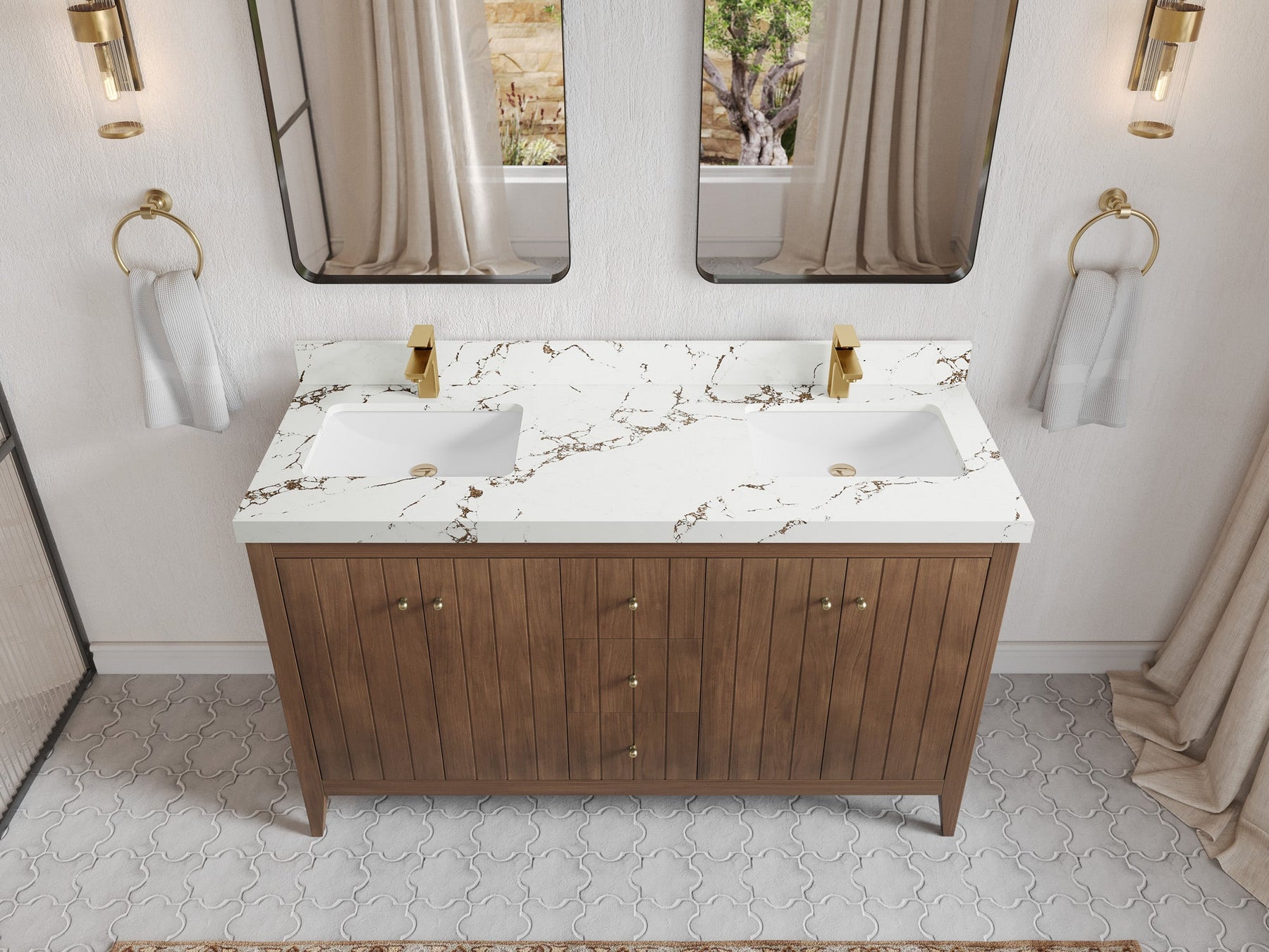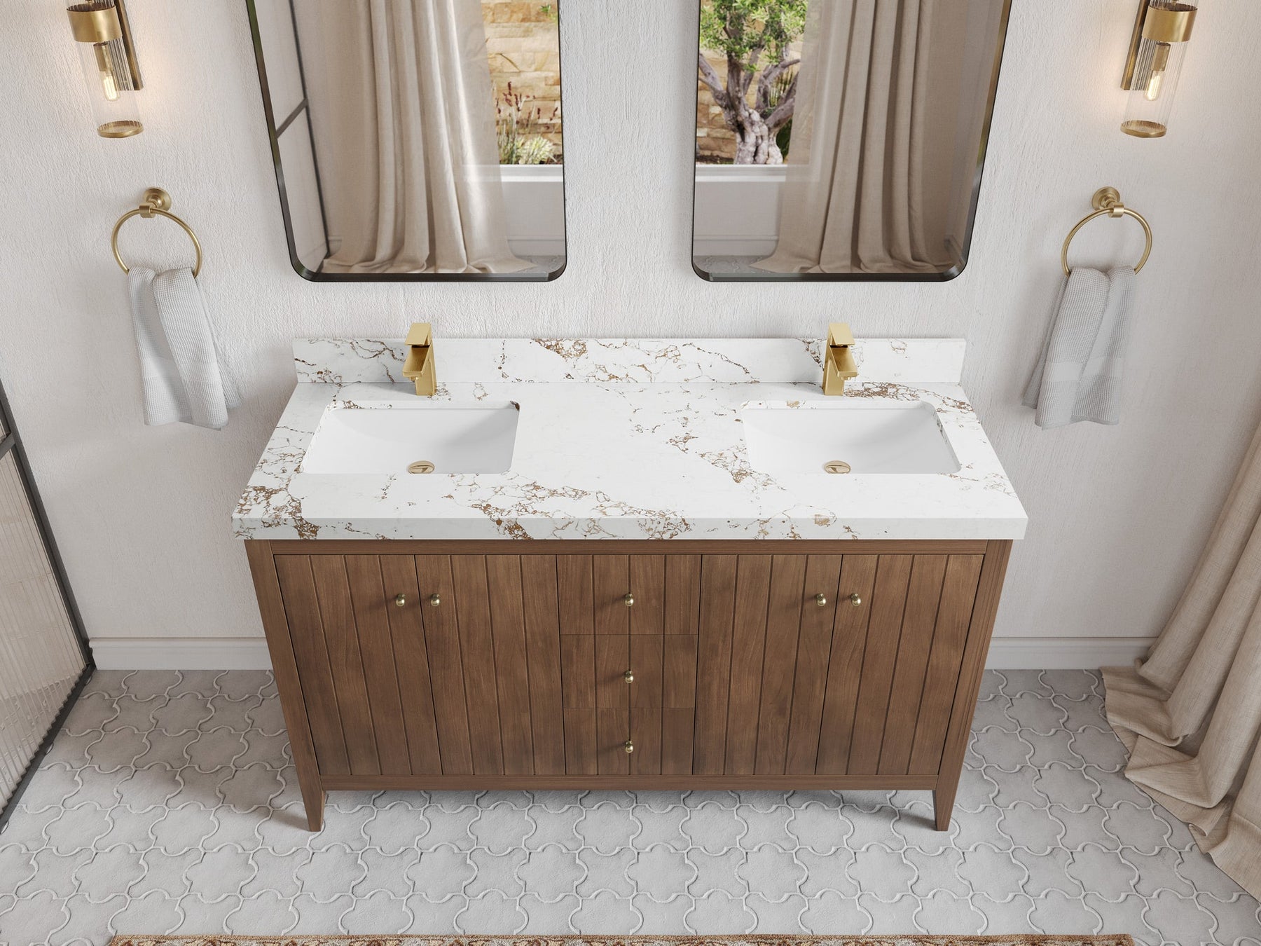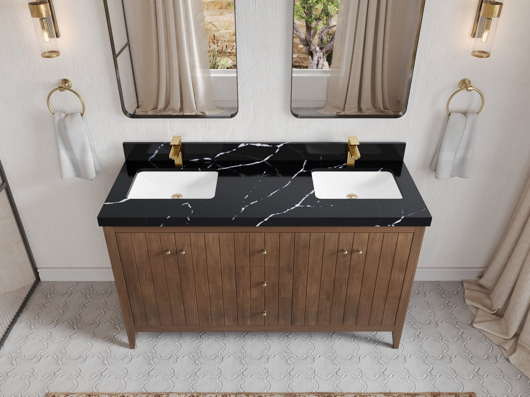 Vanity Countertops options: For Calacatta Laza Quartz, Empira White Quartz, Pure White Quartz, Palissandro Quartz, Calacatta Nuvo Quartz, Carrara Marble, Carrara Quartz, Piatra Gray Quartz, Pearl Light Gray Quartz, Calacatta Black Quartz, Calacatta Gold Quartz, Calacatta Sienna Quartz, Calacatta Poanazzo Quartz, Venatino Quartz, Viola Brown Quartz, Viola Gold Quartz, Viola Night Quartz, Viola Biagio Quartz, Berkshire Brass Quartz, Frosty Carrara Quartz, Onyx Quartz we have Straight - Mitered Edge option.