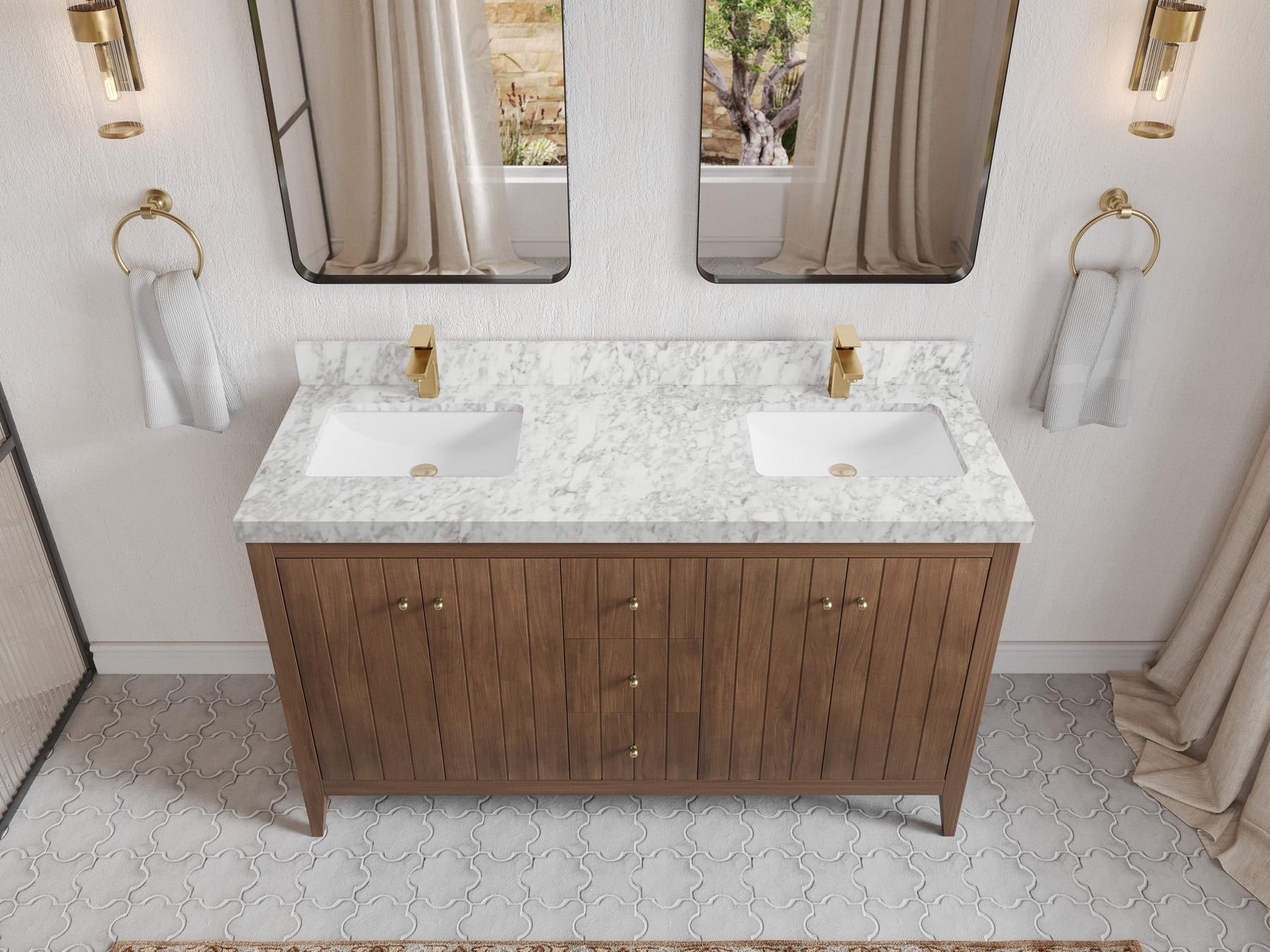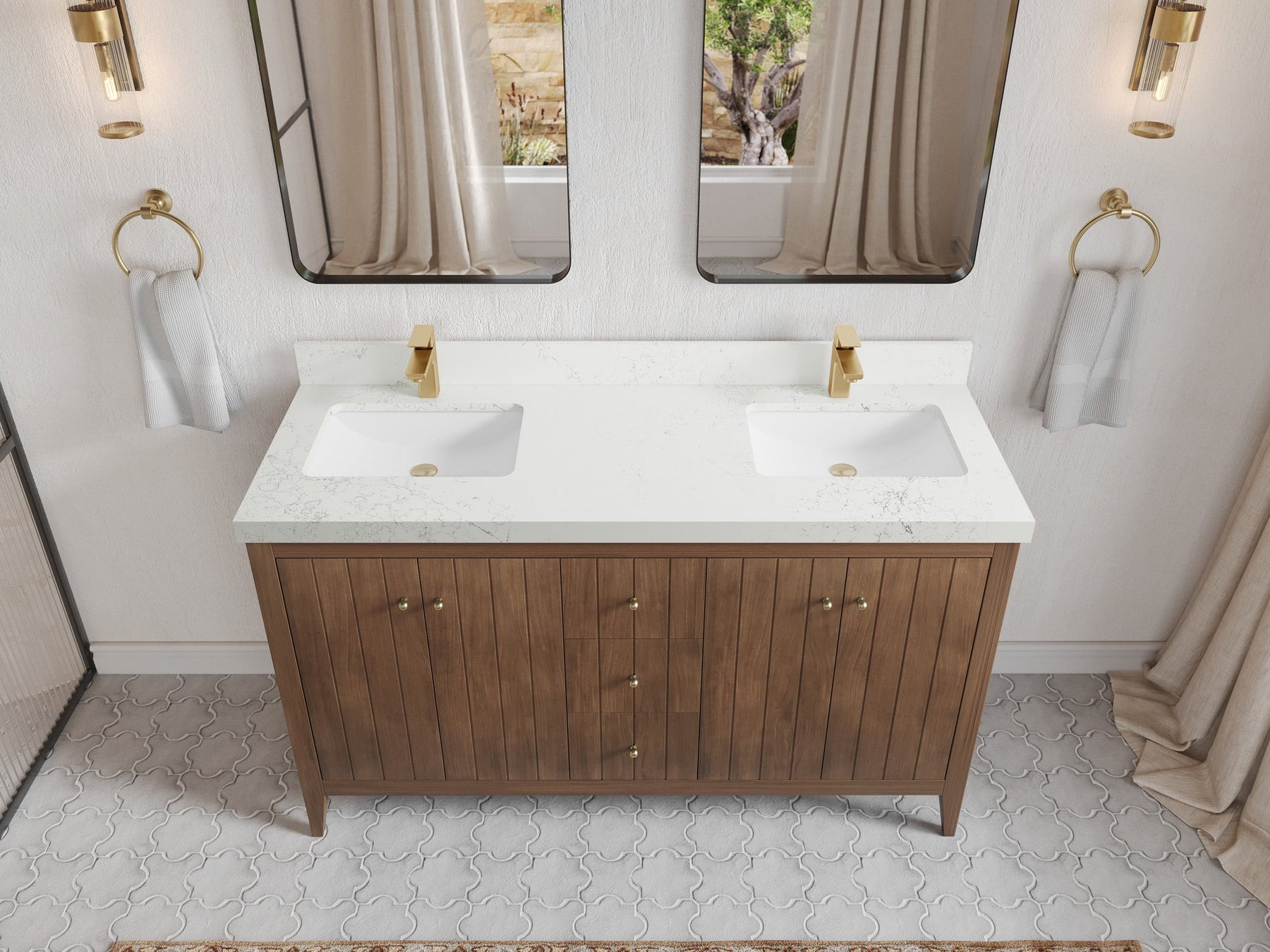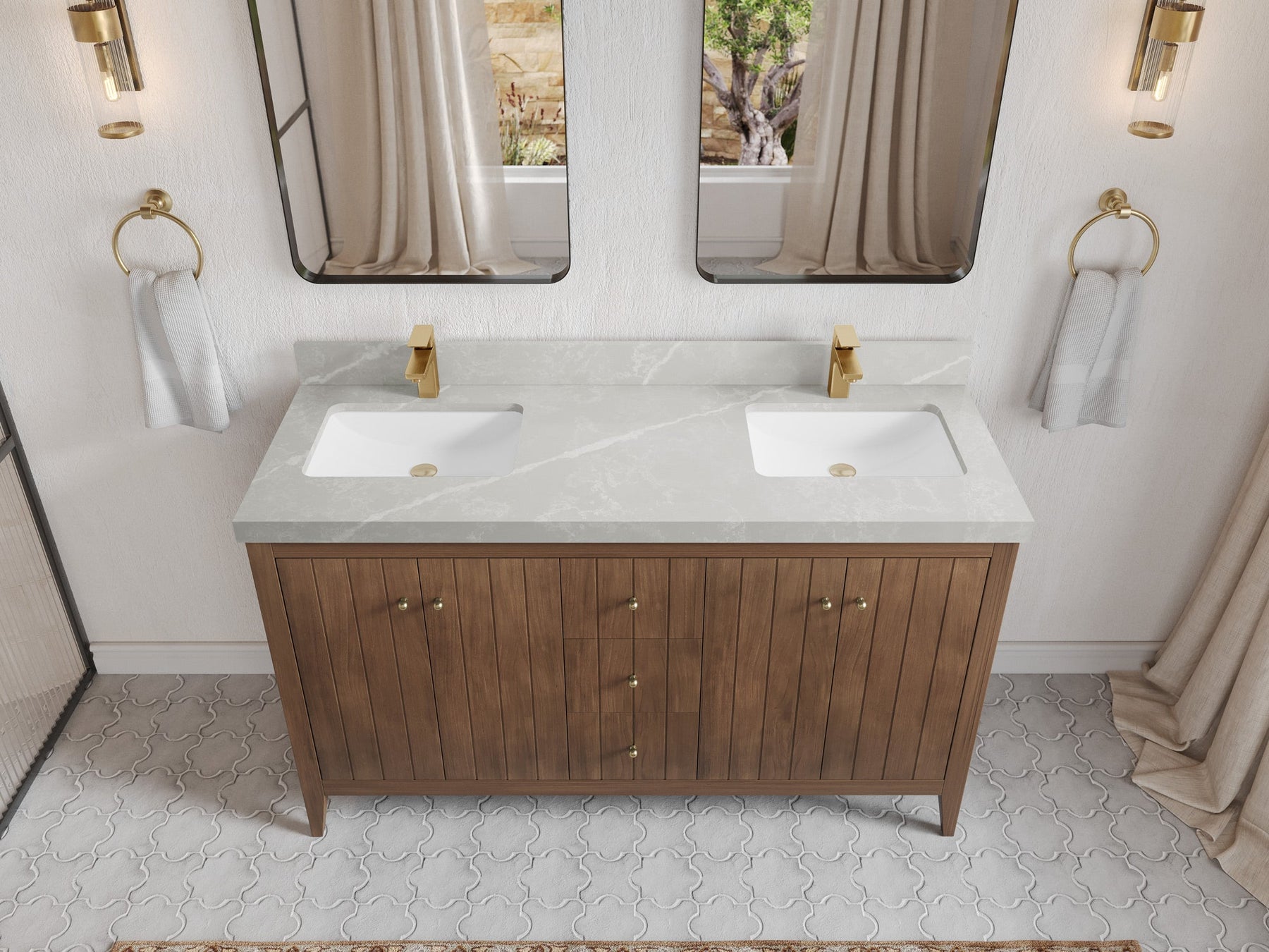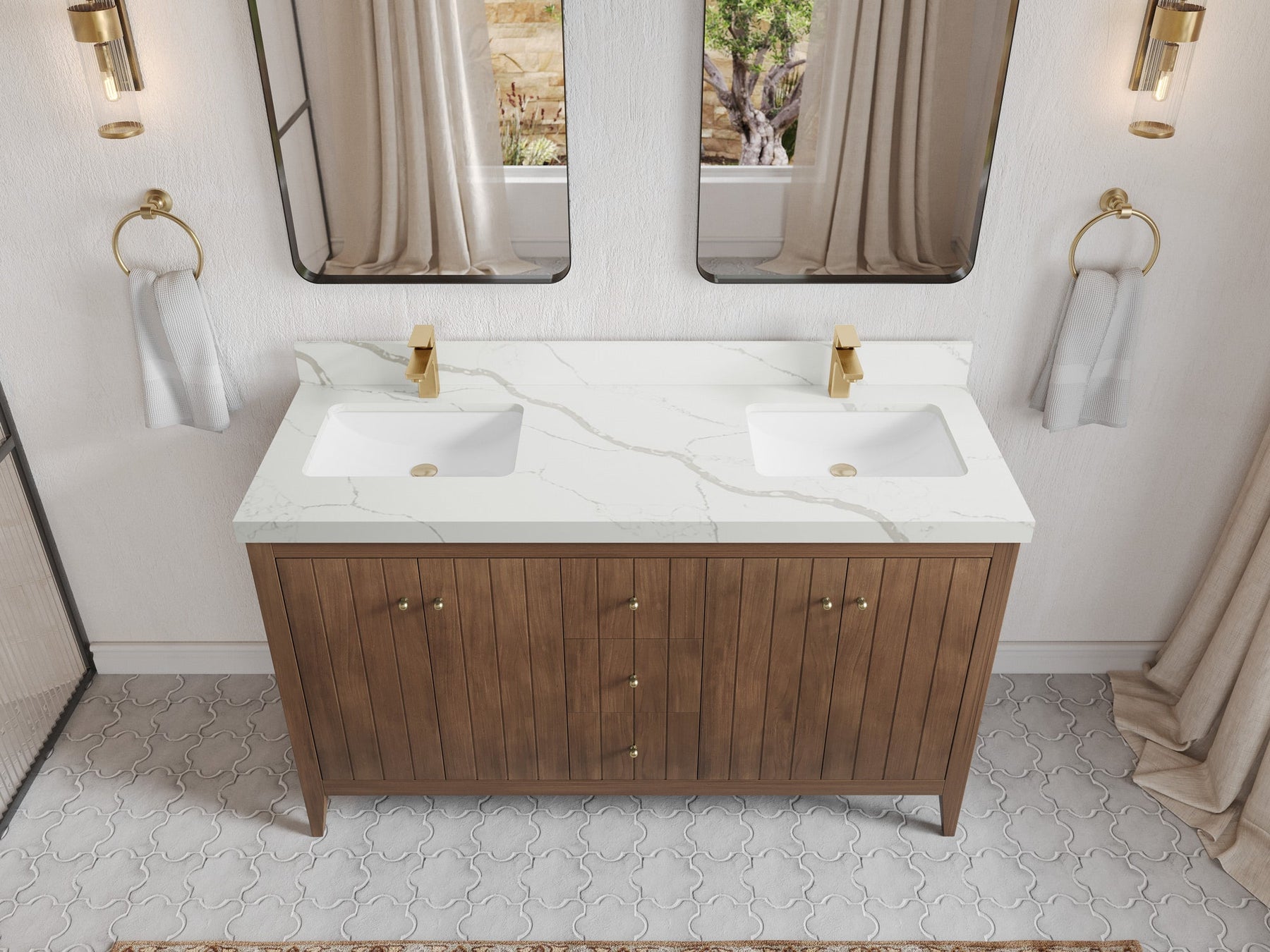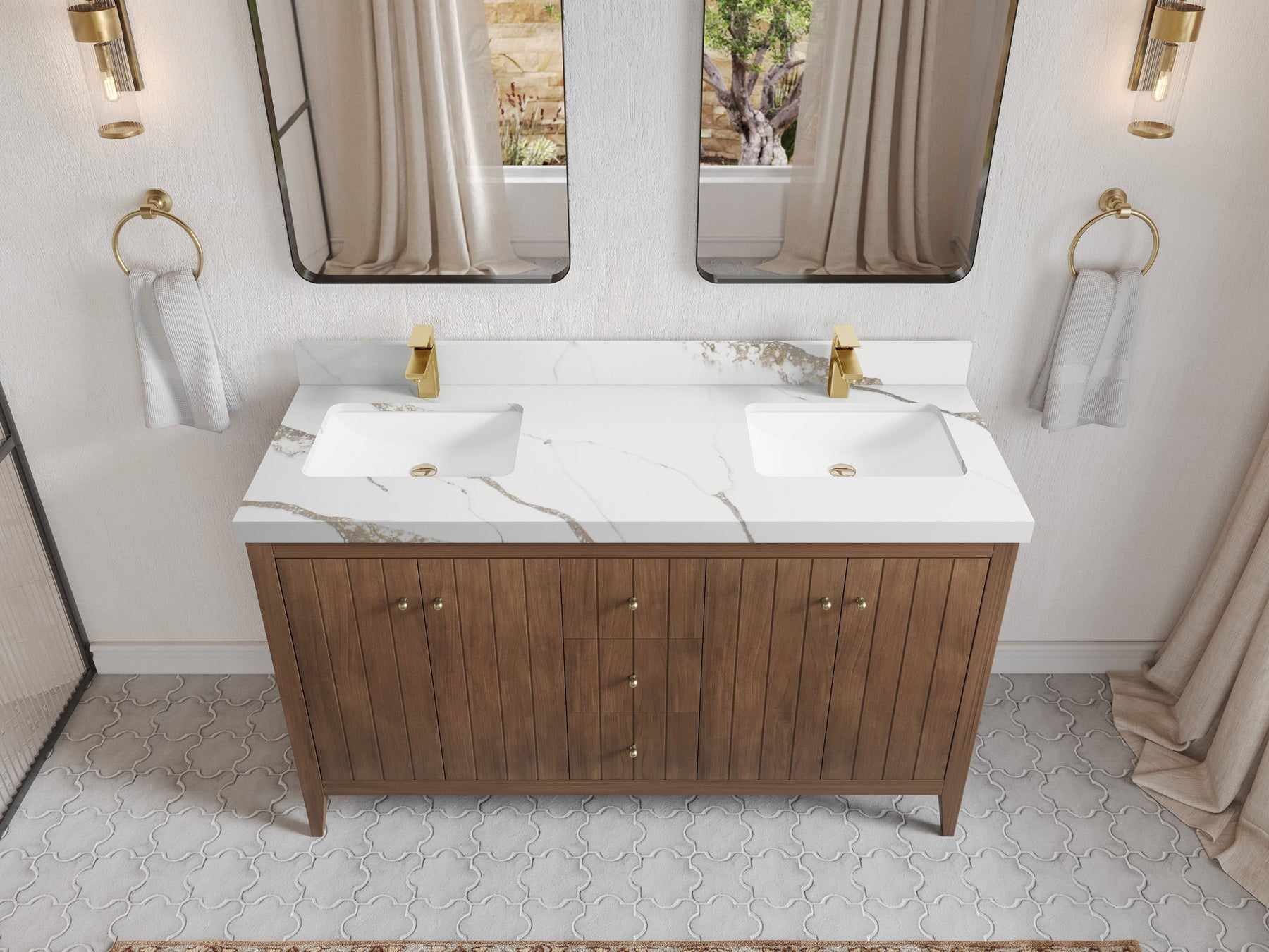 Vanity Countertops options: For Calacatta Laza Quartz, Empira White Quartz, Pure White Quartz, Palissandro Quartz, Calacatta Nuvo Quartz, Carrara Marble, Carrara Quartz, Piatra Gray Quartz, Pearl Light Gray Quartz, Calacatta Black Quartz, Calacatta Gold Quartz, Calacatta Sienna Quartz, Calacatta Poanazzo Quartz, Venatino Quartz, Viola Brown Quartz, Viola Gold Quartz, Viola Night Quartz, Viola Biagio Quartz, Berkshire Brass Quartz, Frosty Carrara Quartz, Onyx Quartz we have Straight - Mitered Edge option.