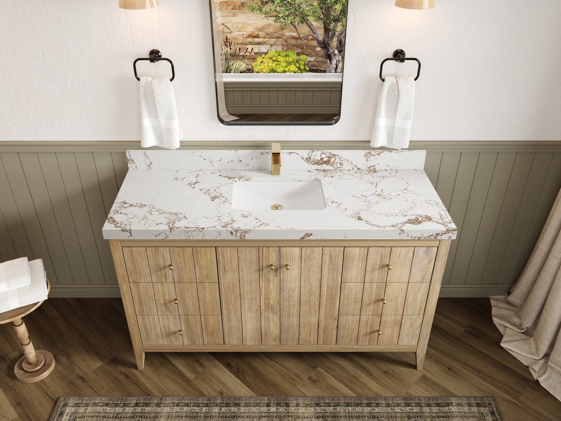 Vanity Countertops options: For Calacatta Laza Quartz, Empira White Quartz, Pure White Quartz, Palissandro Quartz, Calacatta Nuvo Quartz, Carrara Marble, Carrara Quartz, Piatra Gray Quartz, Pearl Light Gray Quartz, Calacatta Black Quartz, Calacatta Gold Quartz, Calacatta Sienna Quartz, Calacatta Poanazzo Quartz, Venatino Quartz, Viola Brown Quartz, Viola Gold Quartz, Viola Night Quartz, Viola Biagio Quartz, Berkshire Brass Quartz, Frosty Carrara Quartz, Onyx Quartz we have Straight - Mitered Edge option.