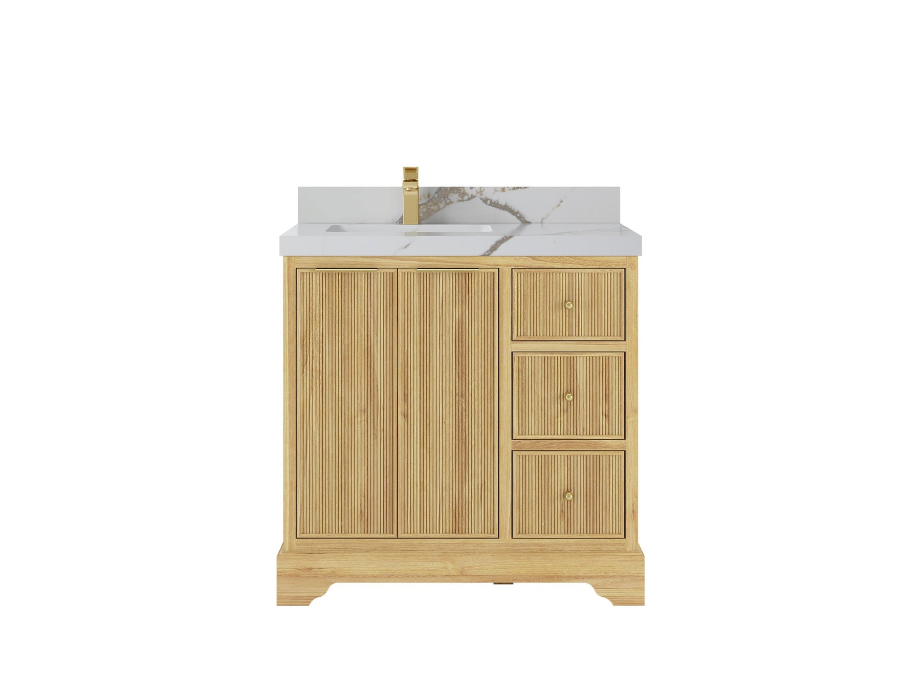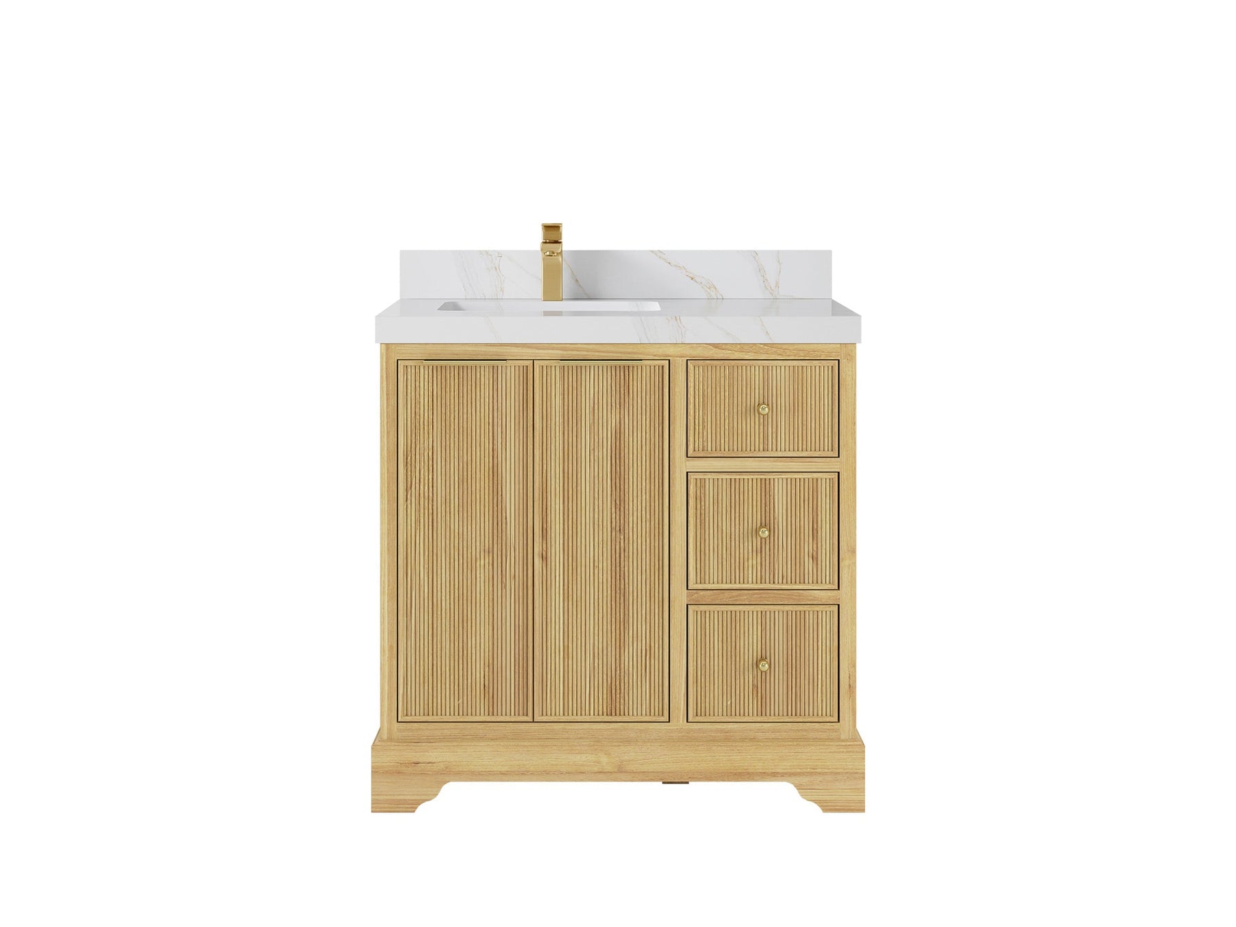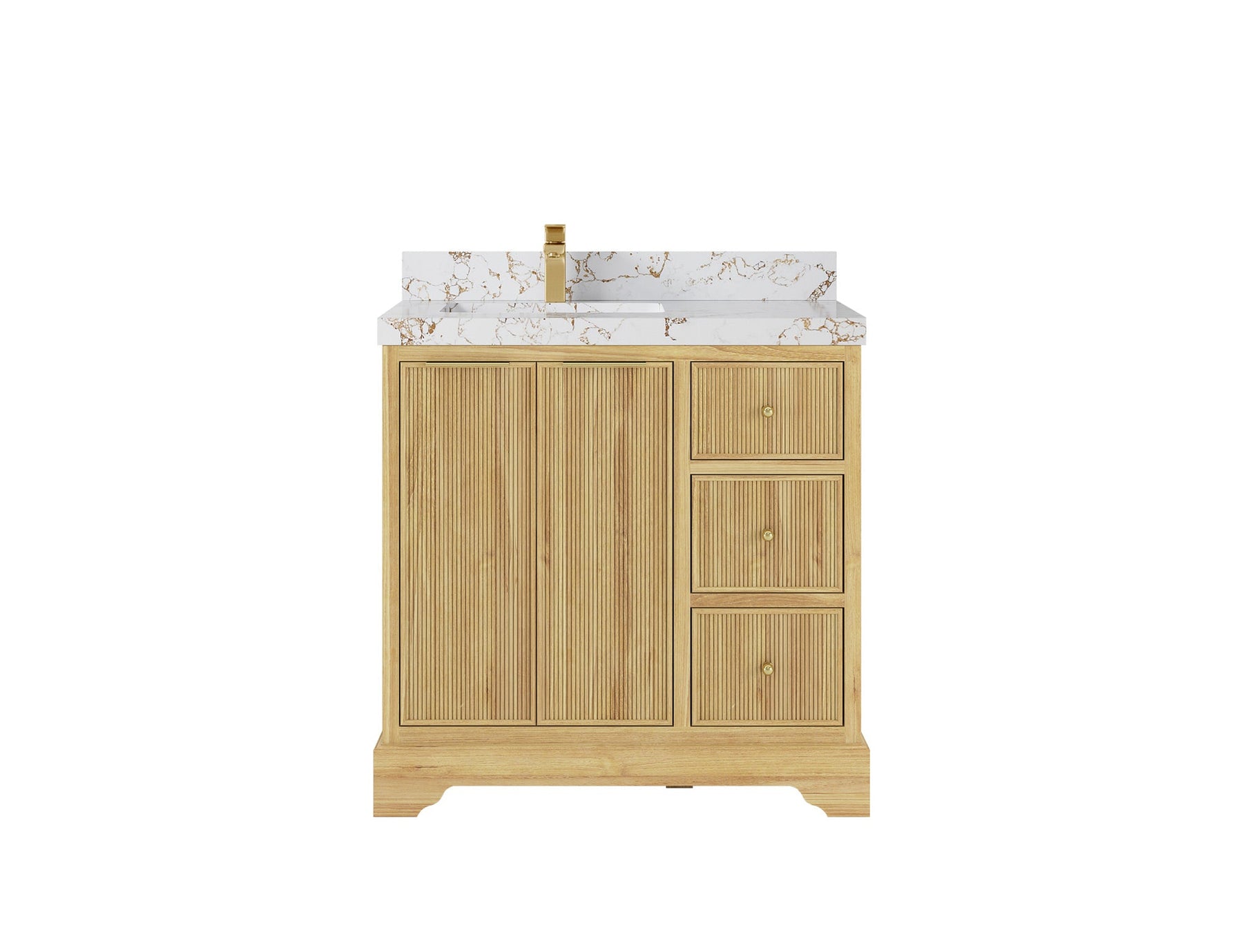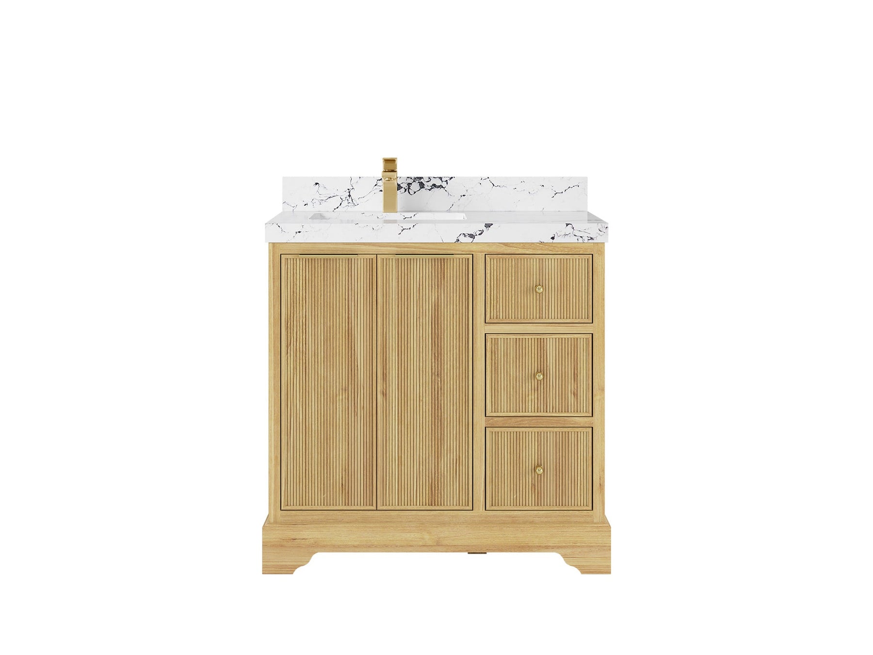 Vanity Countertops options: For Calacatta Laza Quartz, Empira White Quartz, Pure White Quartz we have 2 options Straight-Mitered Edge & Double Cove Edge, For Calacatta Nuvo, Carrara Marble, Carrara Quartz, Pearl Light Gray Quartz, Piatra Gray Quartz, and Light Concrete Gray Quartz we only have Straight - Mitered Edge option.