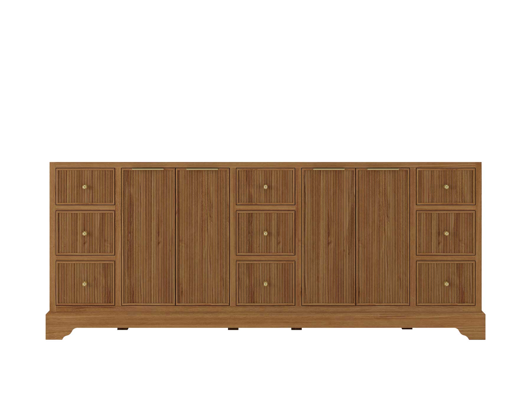Embodying timeless design and enduring elegance, the Austin vanity from the renowned Austin collection is a testament to classic sophistication. With its distinguished reeded design, this double sink bathroom vanity with countertop exudes an air of refinement, making it the ideal addition to any interior. Crafted with meticulous attention to detail, the Austin 84 inch bathroom vanity boasts a construction of premium hardwood adorned with dovetail joints. This level of craftsmanship not only enhances its visual appeal but also guarantees inherent durability, ensuring it stands the test of time. The teak wood construction makes it not only a stylish choice but also a robust one, capable of withstanding the rigors of daily use.
